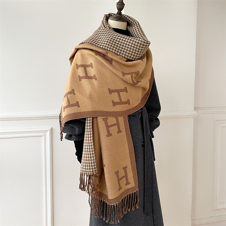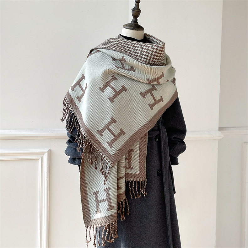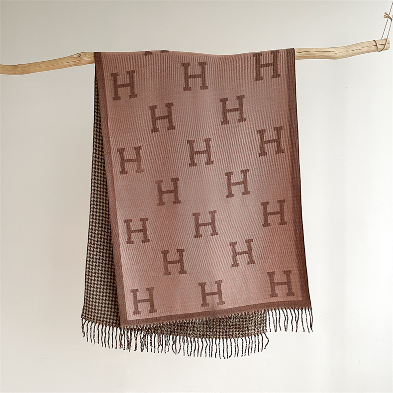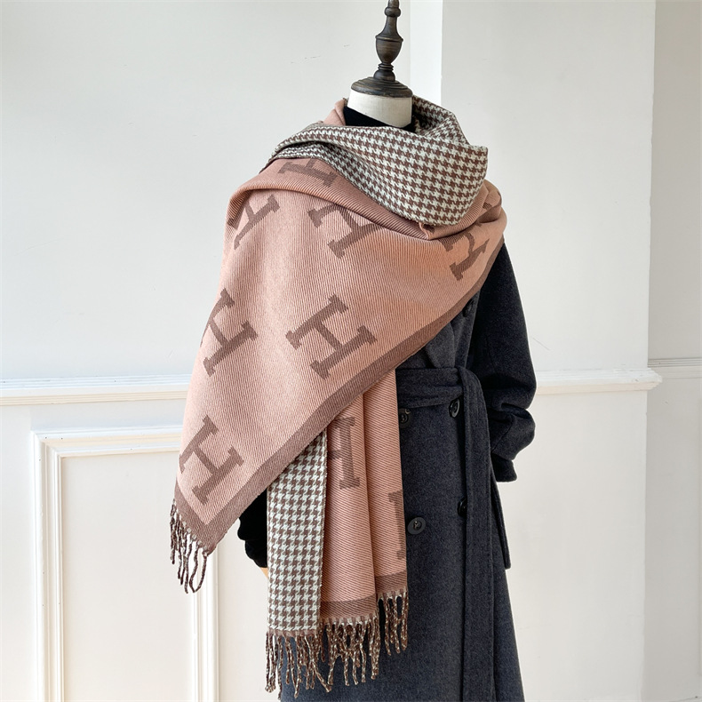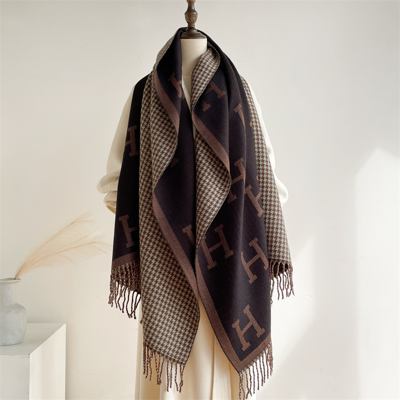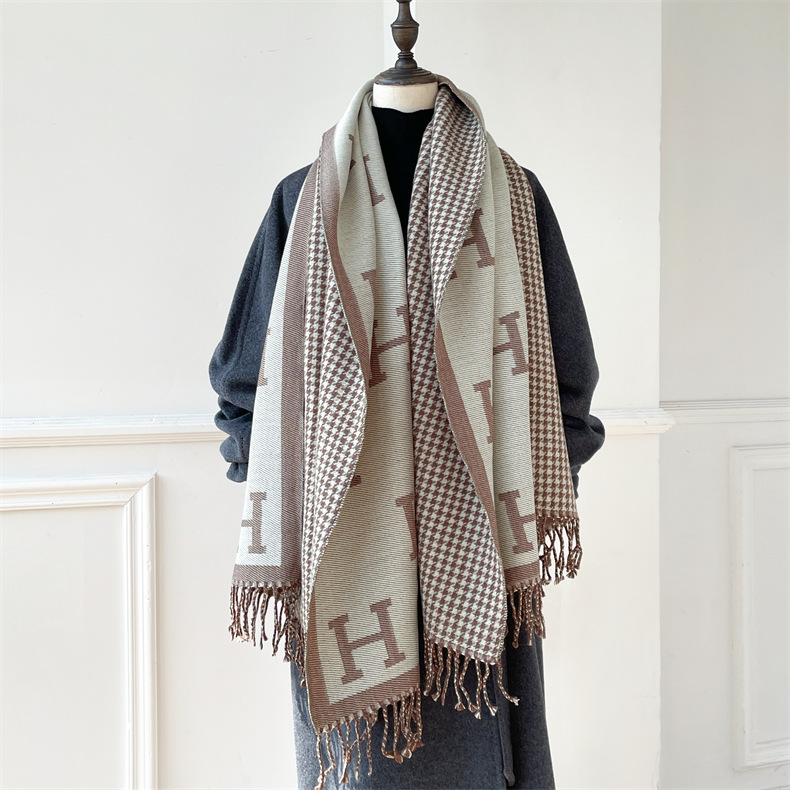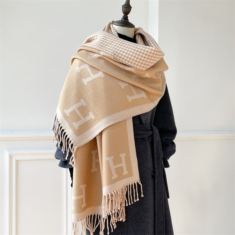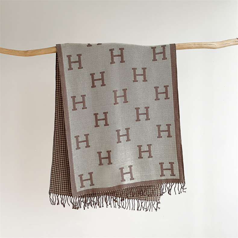 秋冬字母仿羊绒围巾女简约新款百搭加厚流苏披肩时尚保暖围脖