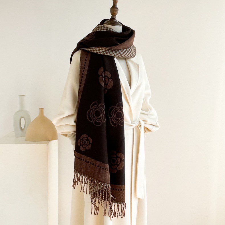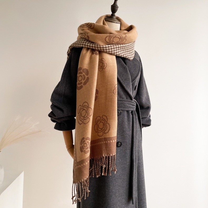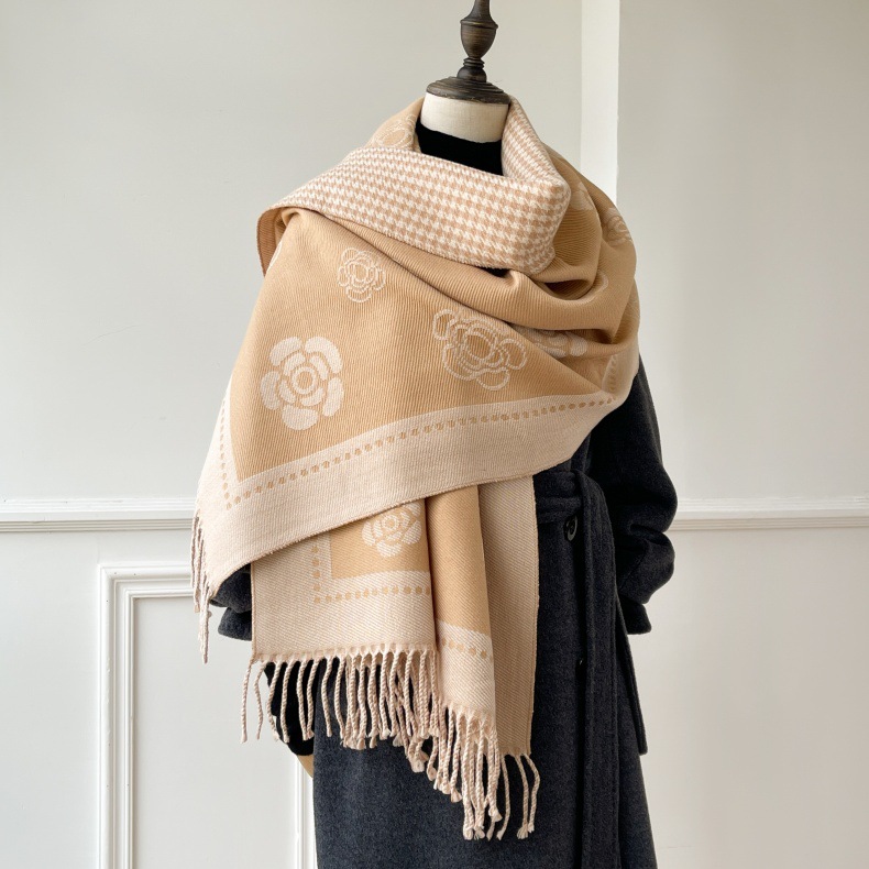 2024秋冬季新款大围巾 仿羊绒保暖 提花短须流苏围巾女士 几何空调披肩 百搭围脖