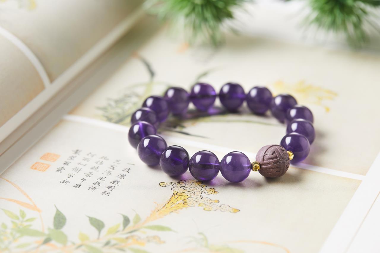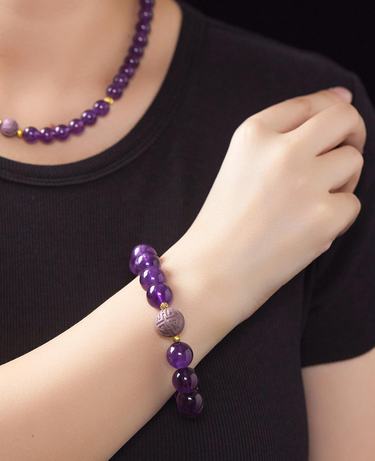 我们这款同样是搭配12mm直径的香珠紫水晶串,男女都能佩戴,