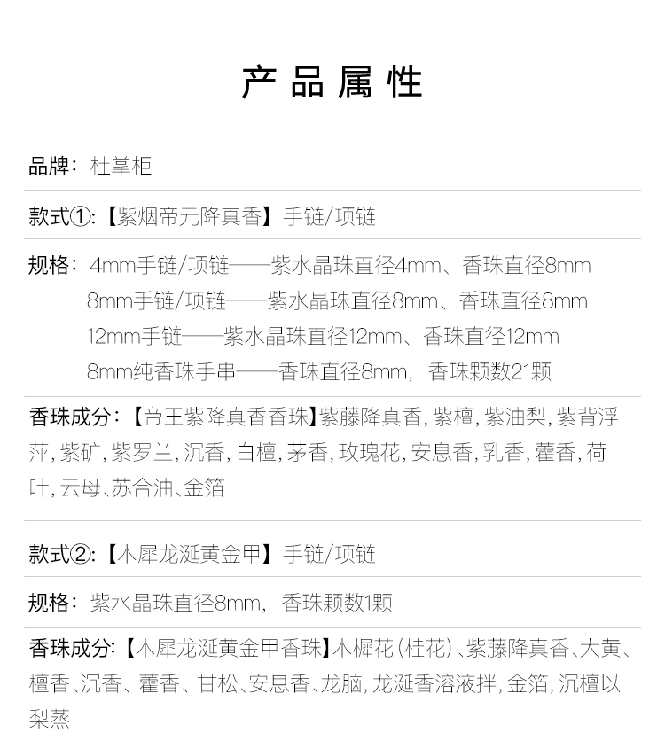 有手链和项链两款可选,香珠和紫水晶珠皆为直径8mm。
