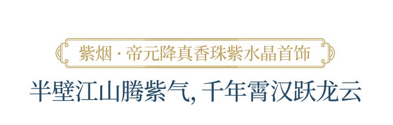 紫水晶与紫烟·帝元降真香珠设计的一系列首饰,浅浅带着光泽的暮山紫与神秘的葡萄紫碰撞出中国传统贵气之色。