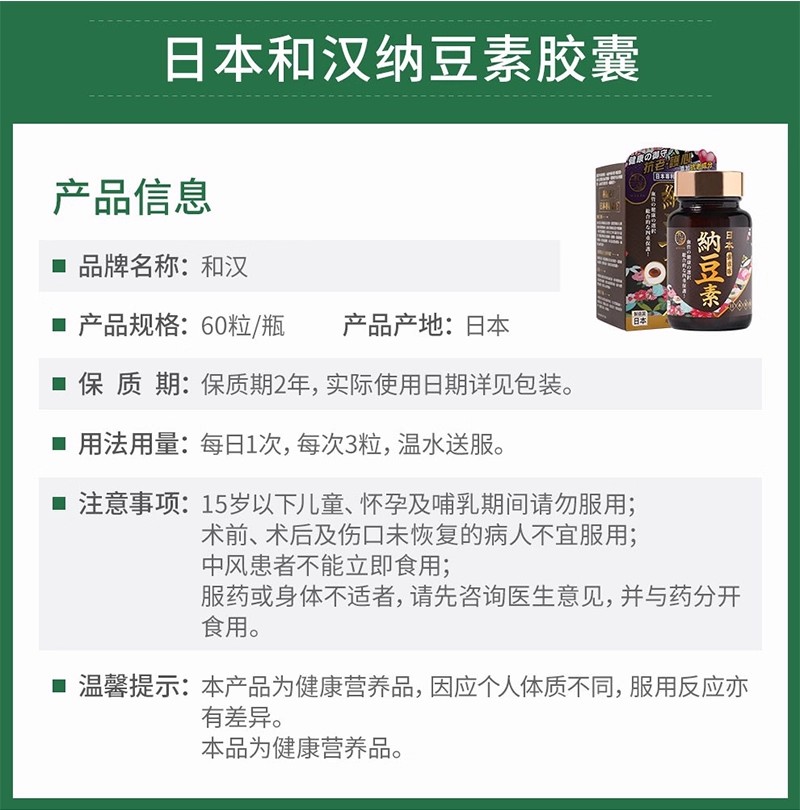 和汉匠心Craft by Wakan日本纳豆素(强效版)60粒 护心降三高