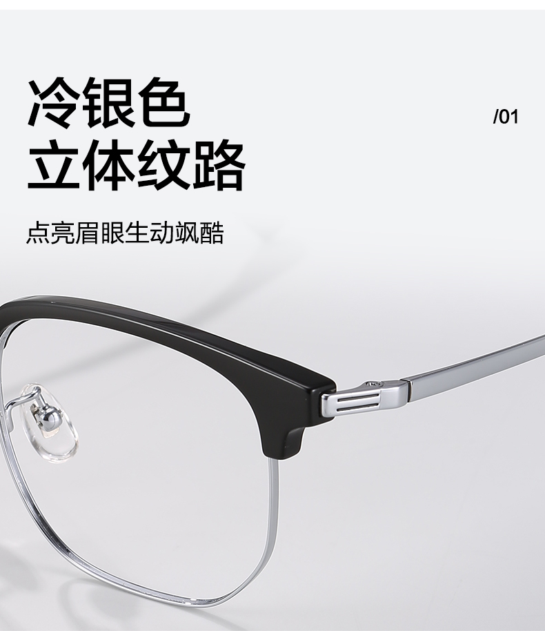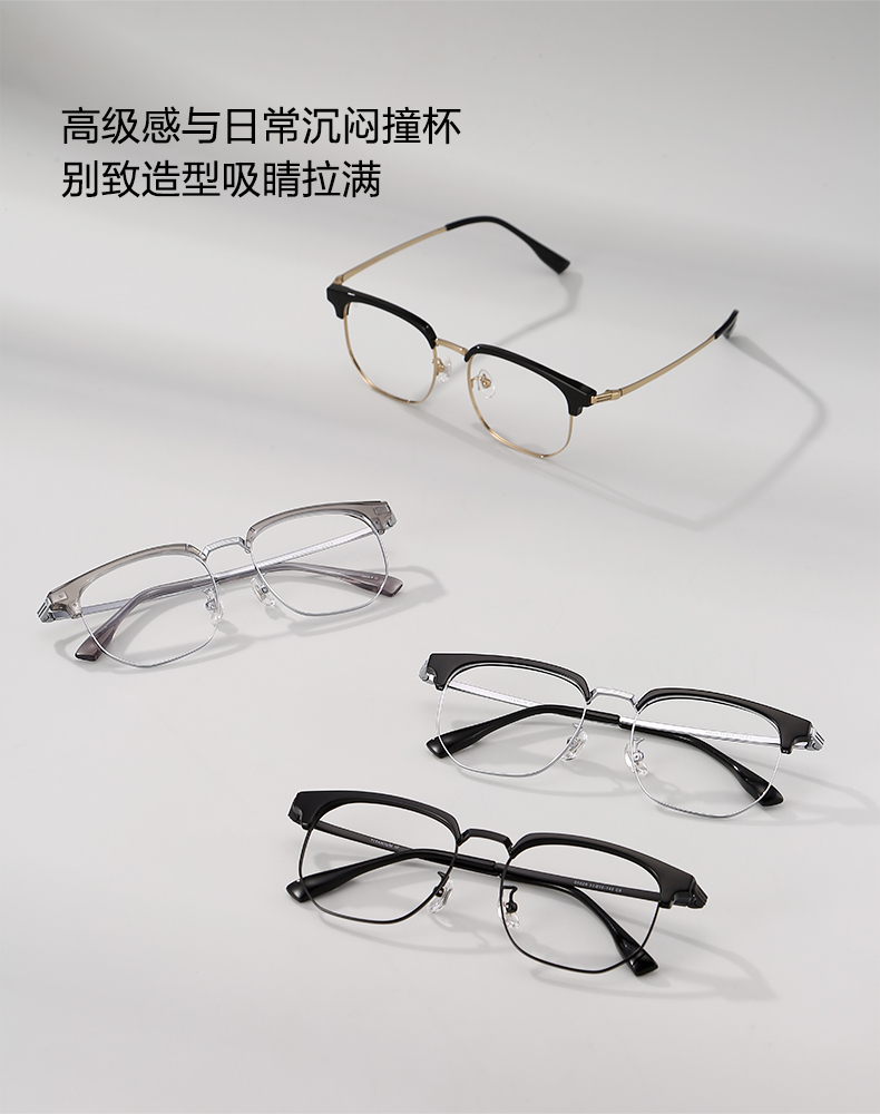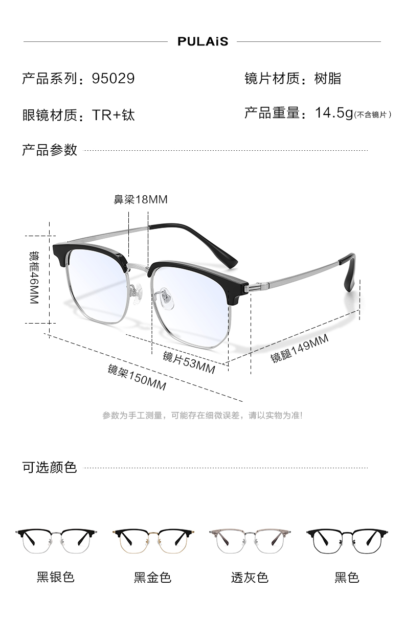 普莱斯光学镜框95029 经典眉线框 一体式舒适鼻托 男女同款 四色可选