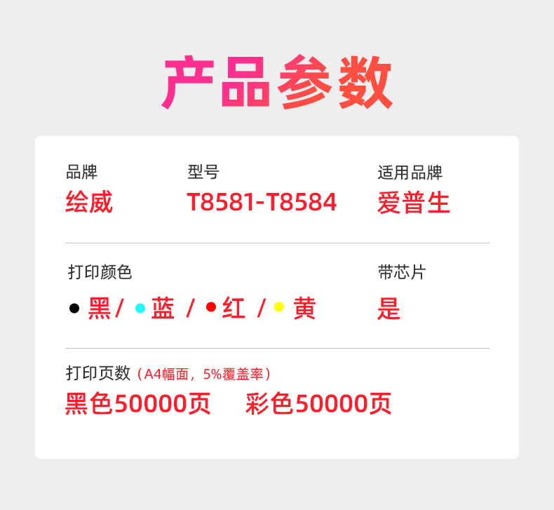 绘威T8581-T8584四色墨盒套装 适用爱普生Epson WorkForce WF-C20590a打印机颜料墨水