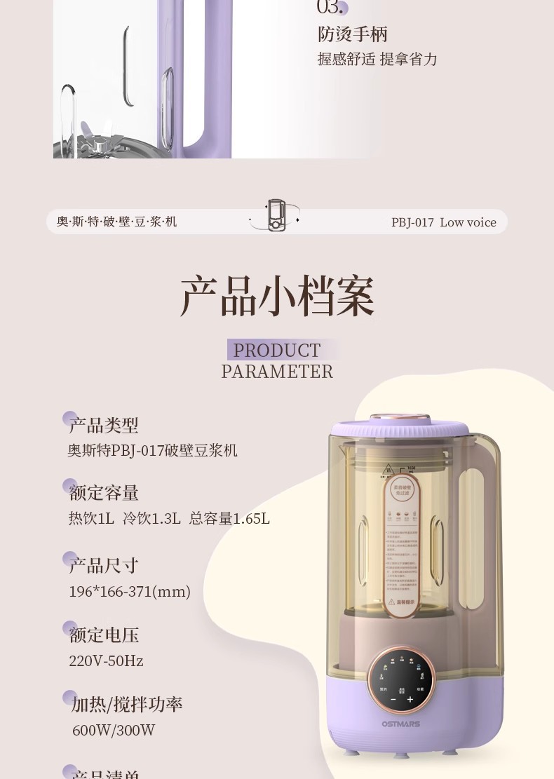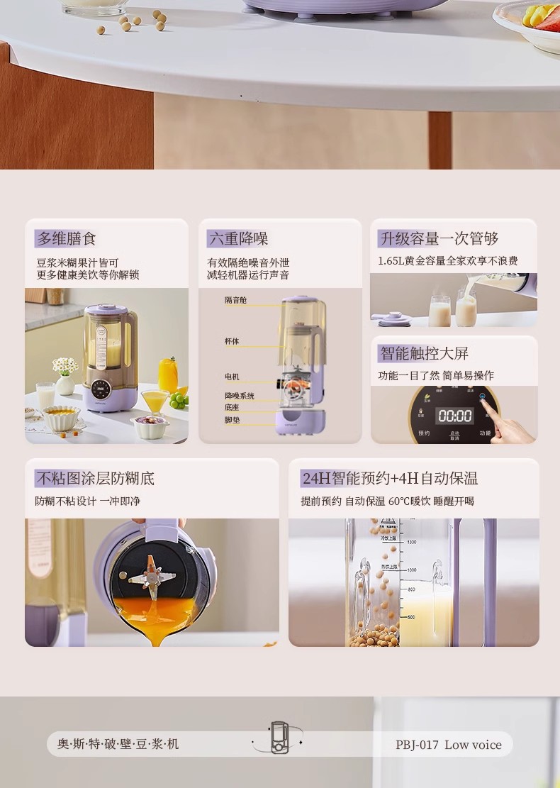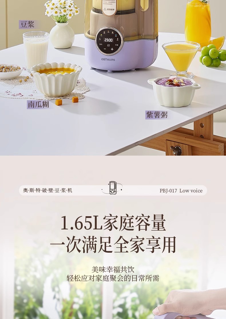 「高颜值」德国OSTMARS新款破壁机 家用3-4人免滤低音豆浆大容量多功能料理机厨房电器