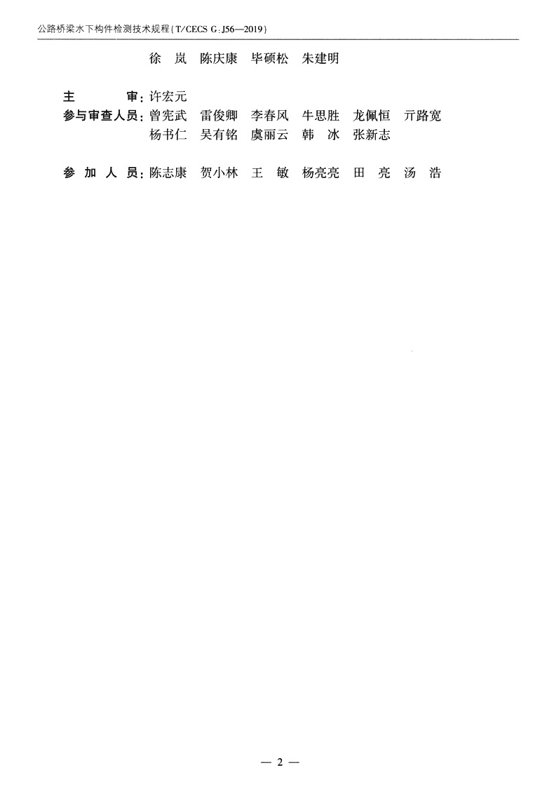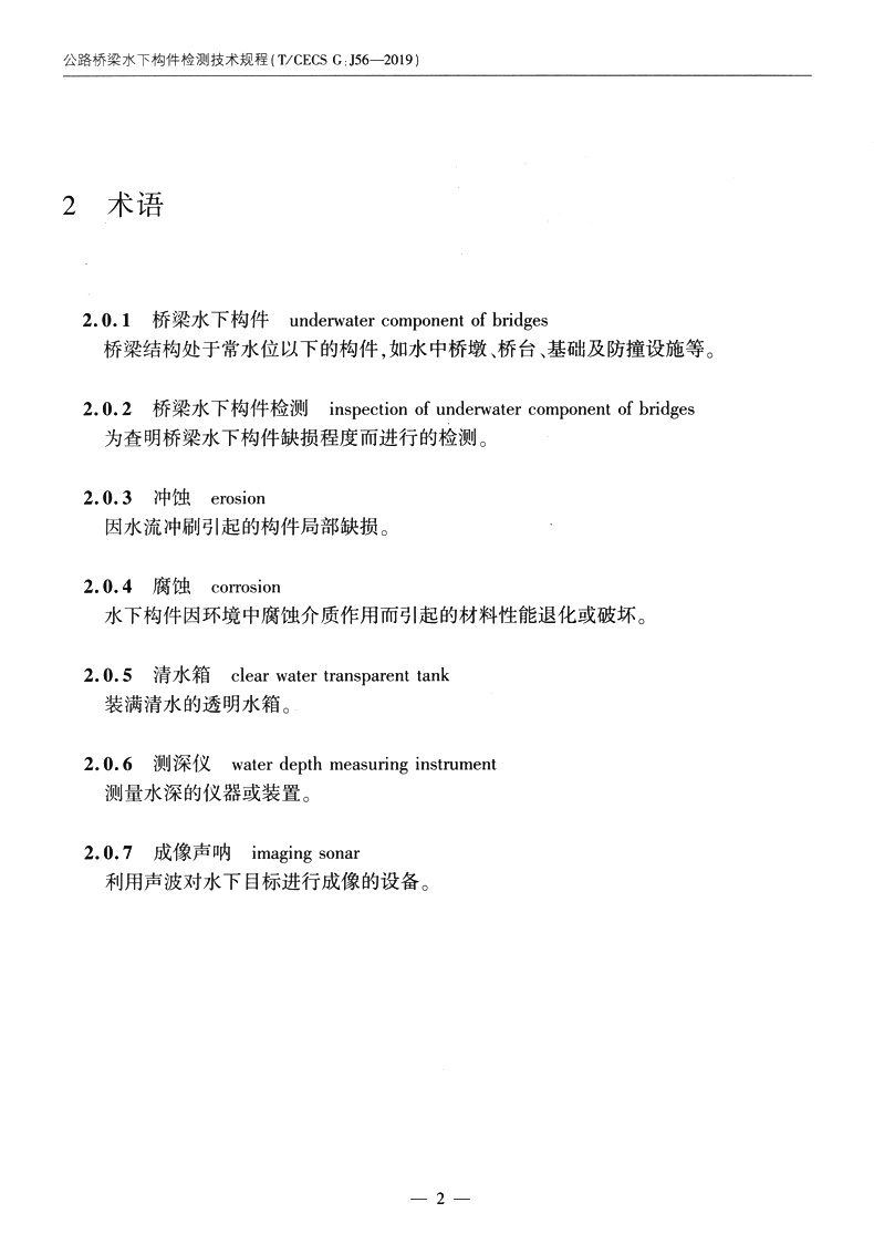 | 公路桥梁水下构件检测技术规程(T/CECS G:J56—2019) | ||