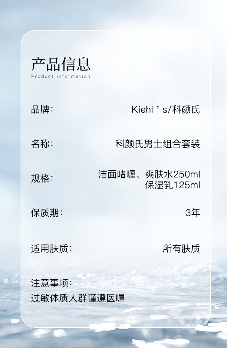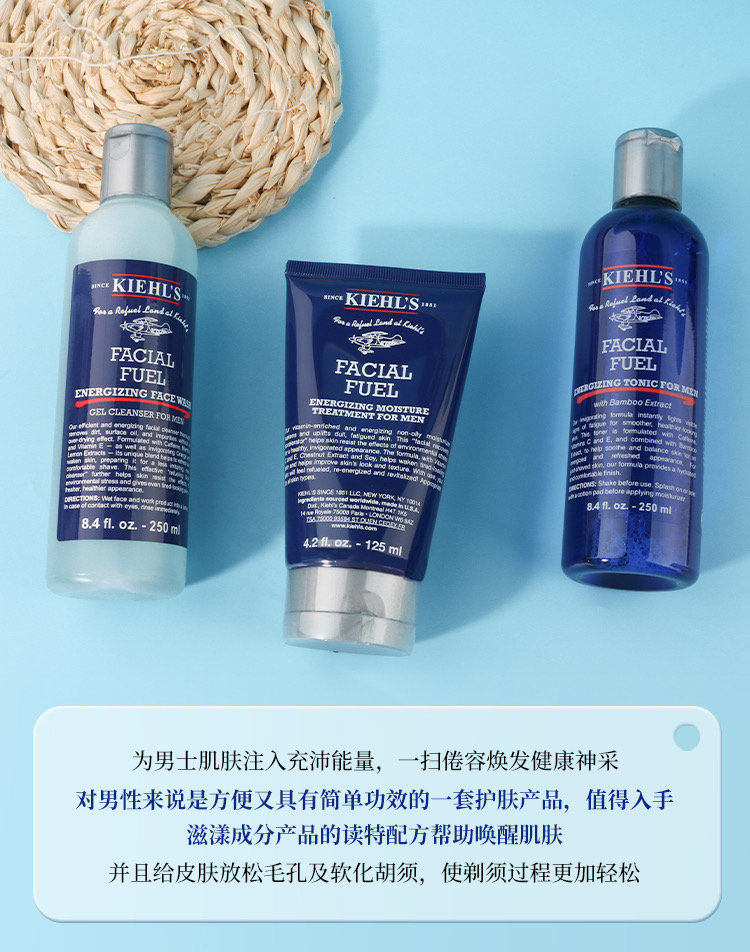 科颜氏男士活力三件套保湿补水清爽控油洗面奶爽肤水乳液护肤套装