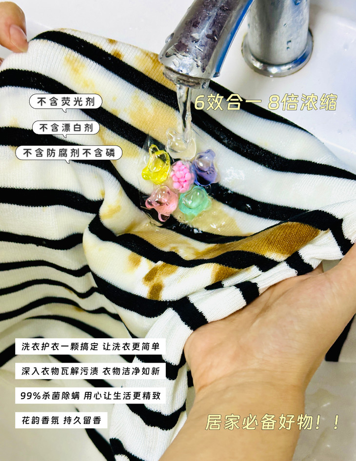 ✅遇水即溶,抑菌除螨高达99.9%+,六腔高浓缩,8倍洁净力,守护穿衣健康