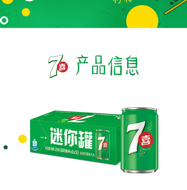 mini迷你罐七喜柠檬200ml*10罐(塑料包装)