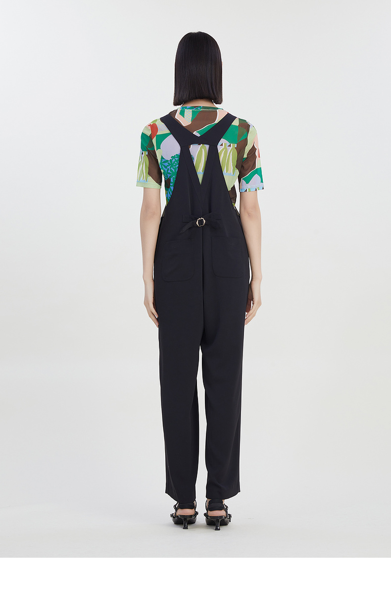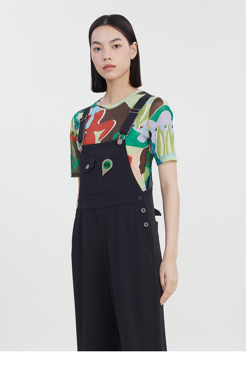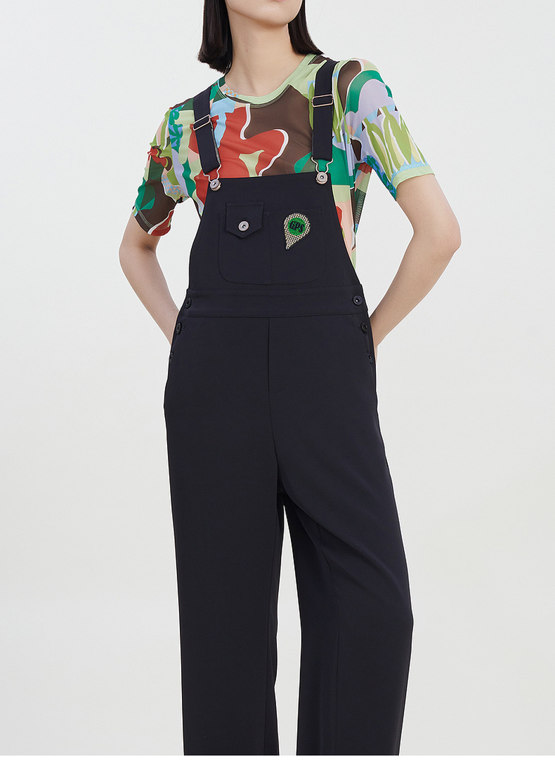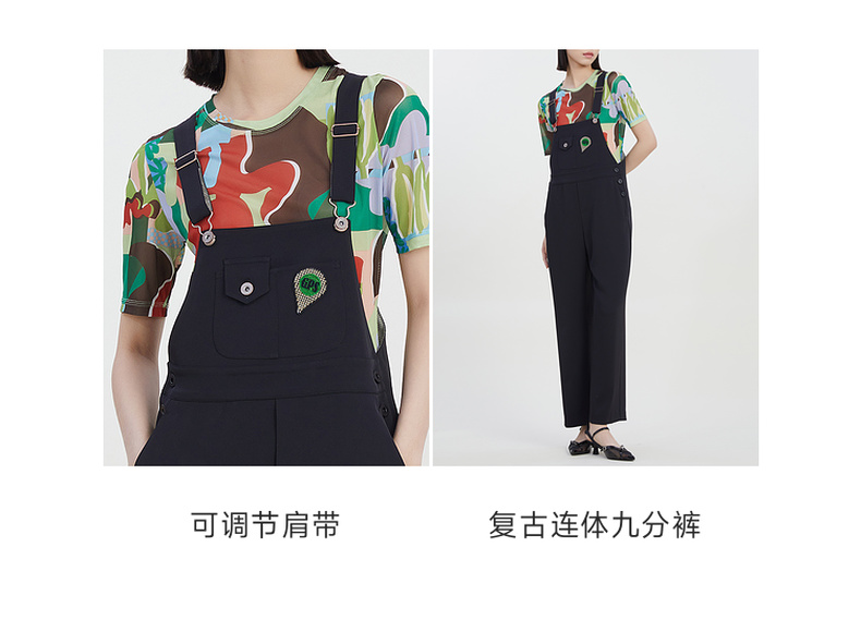 谜底时尚背带裤女2023夏新款宽松高腰直筒裤连体九分裤232MK0586