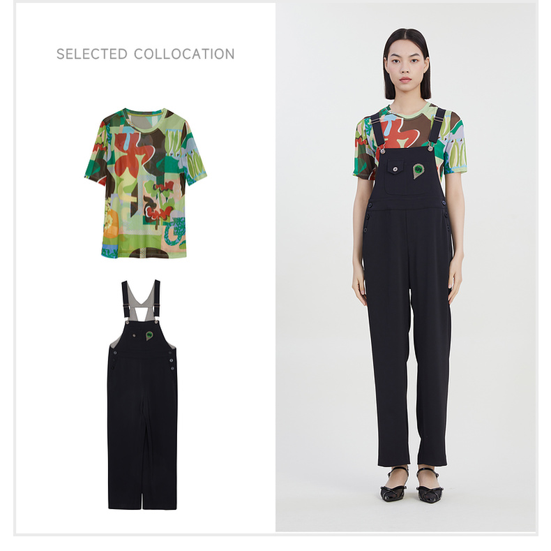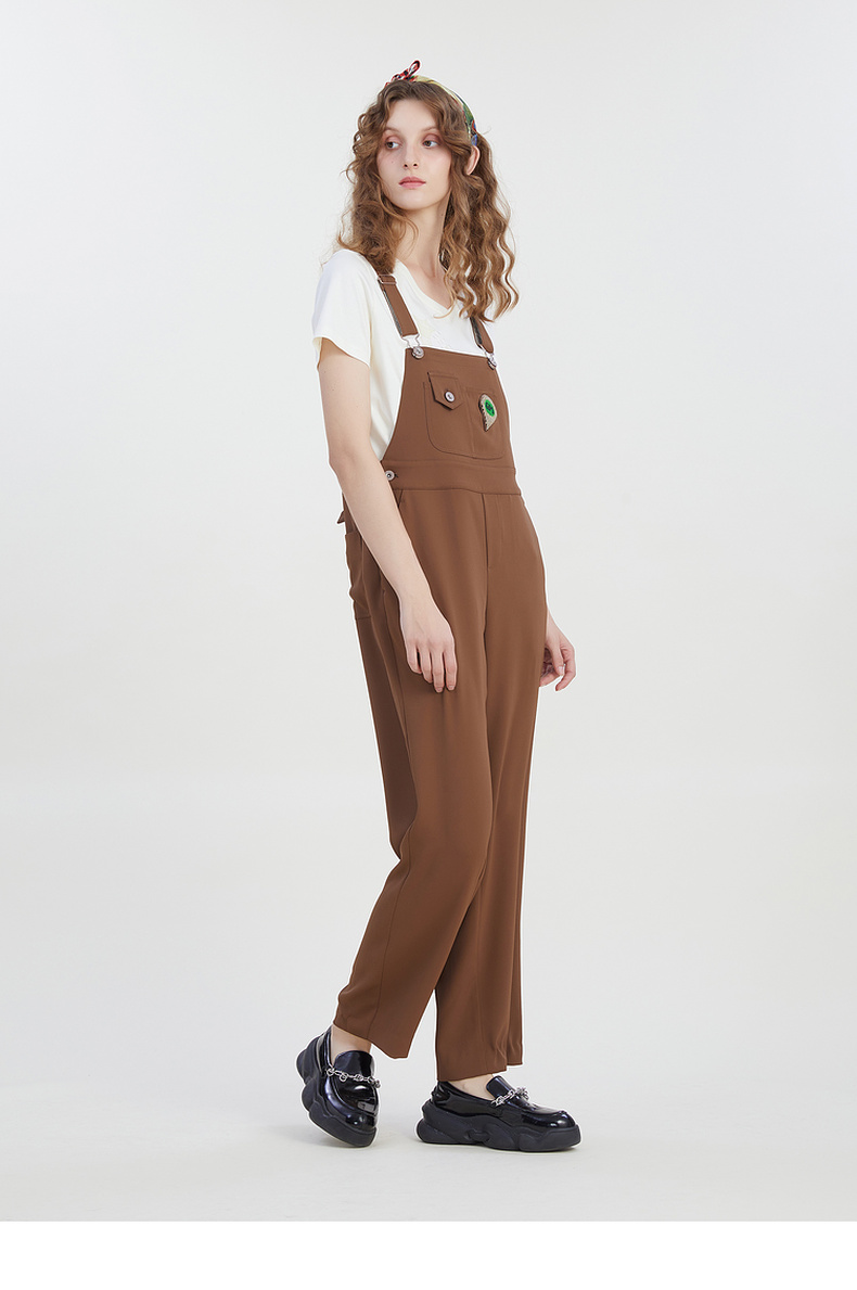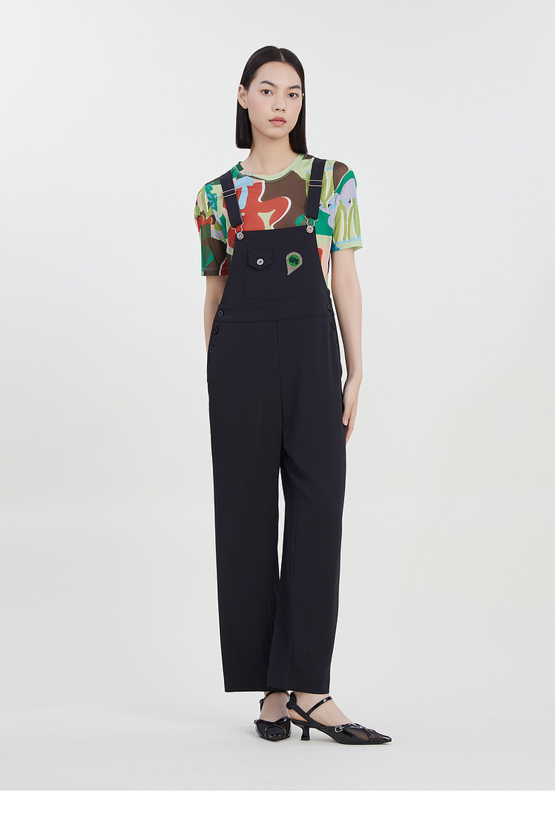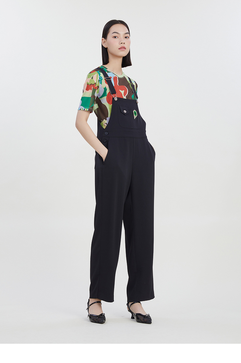 谜底时尚背带裤女2023夏新款宽松高腰直筒裤连体九分裤232MK0586
