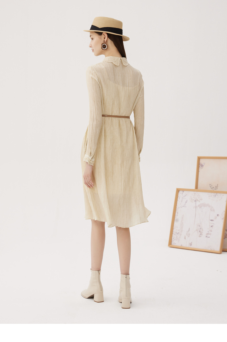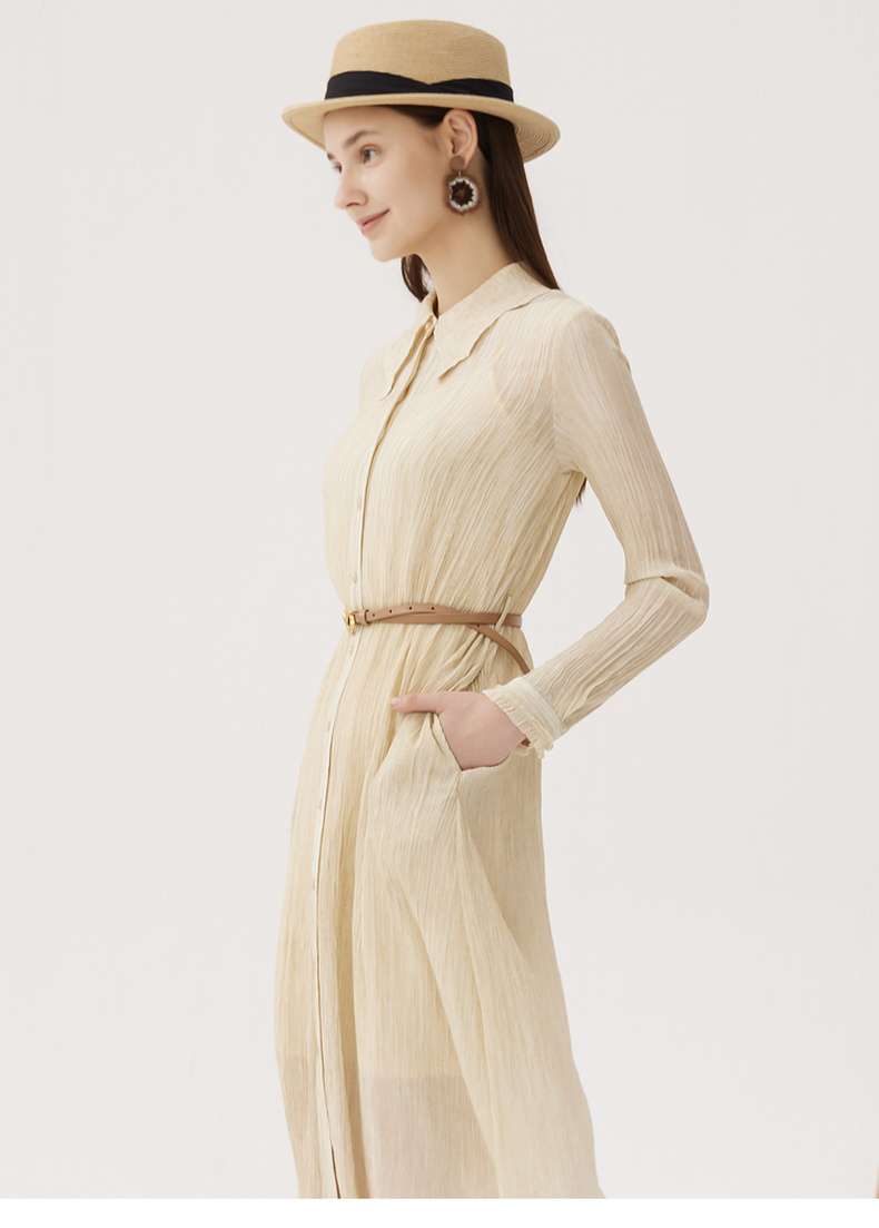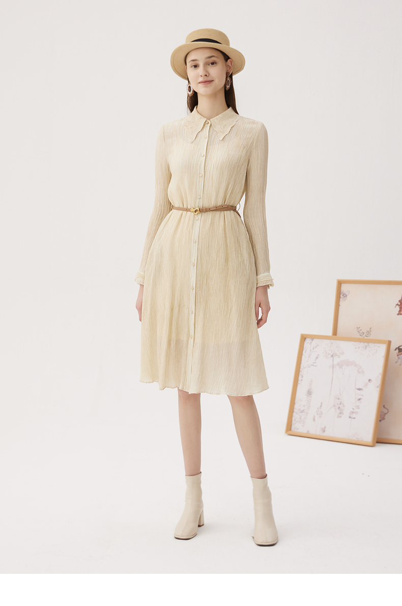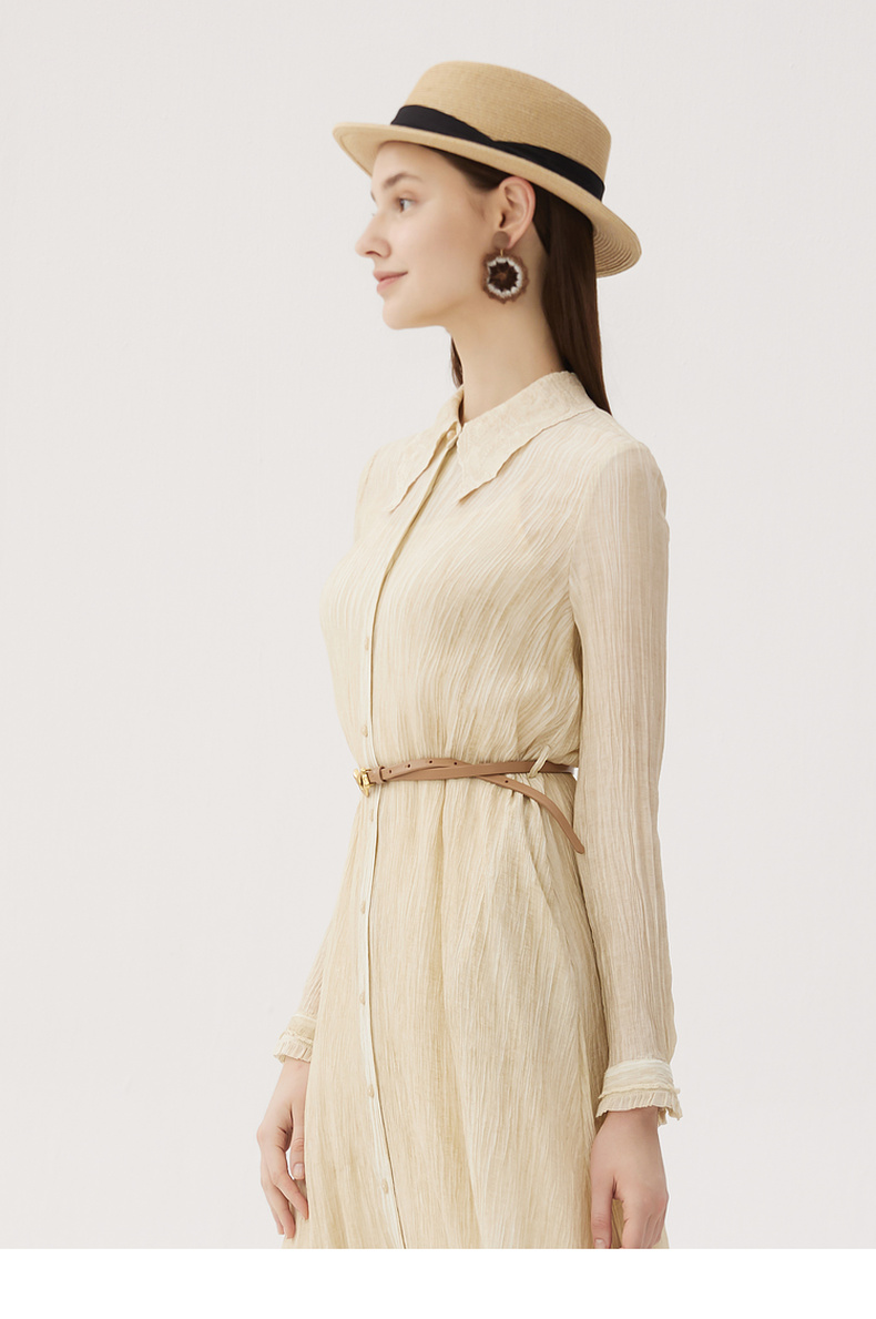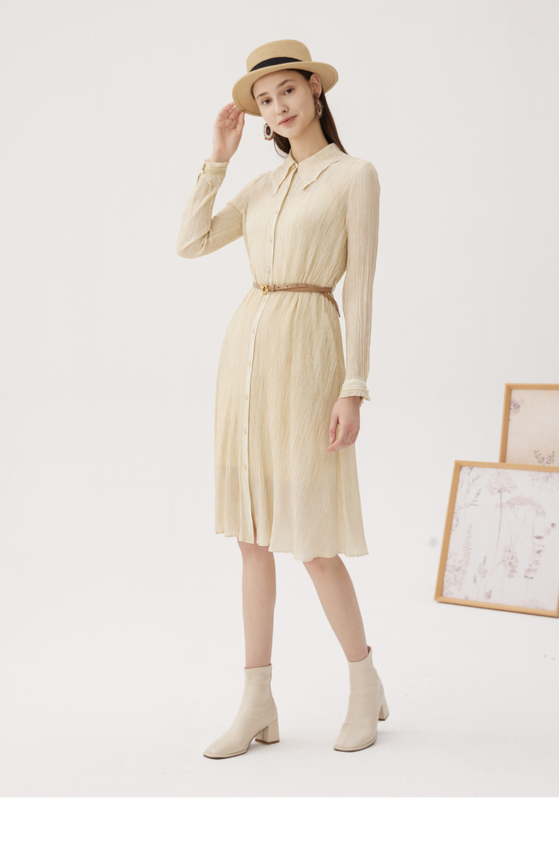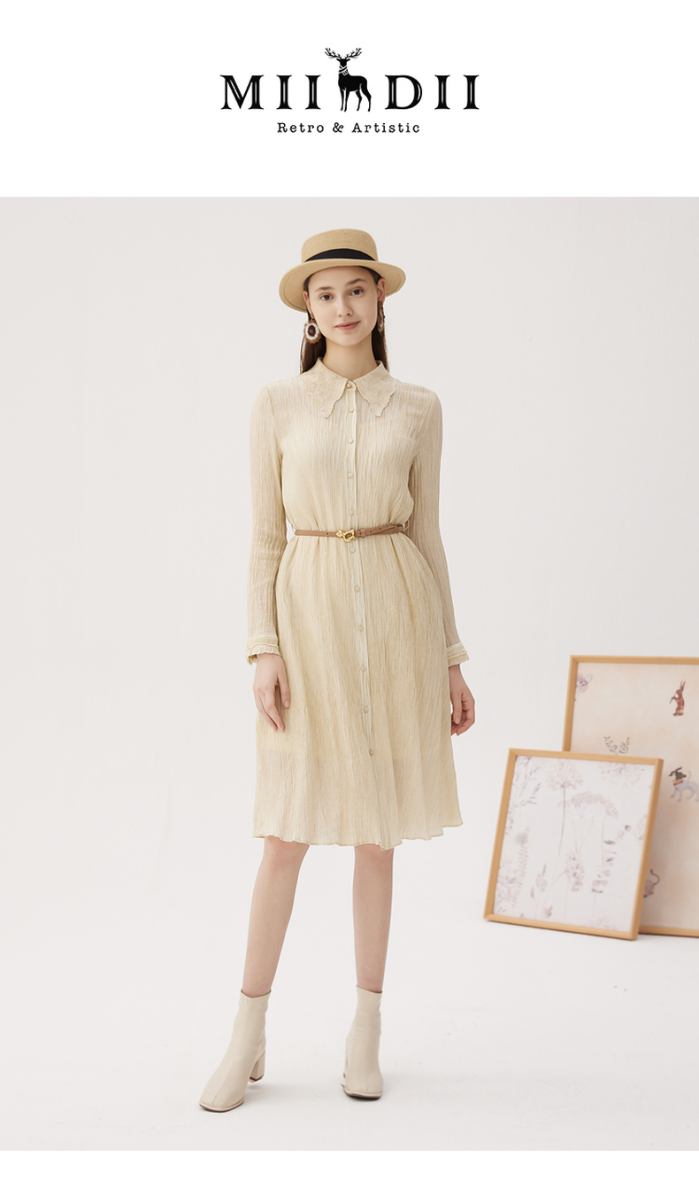 谜底两件套连衣裙长袖2024秋新品气质宽松褶皱感直筒裙243ML1192