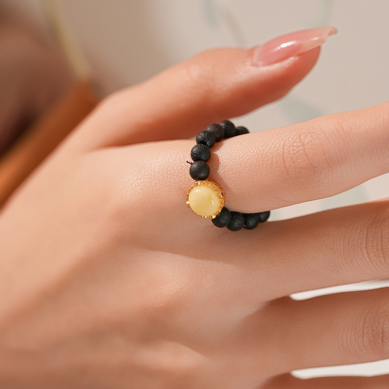 【锦心·降真香蜜蜡戒指】中式国风手串配饰 敦煌福泽小众轻奢戒指