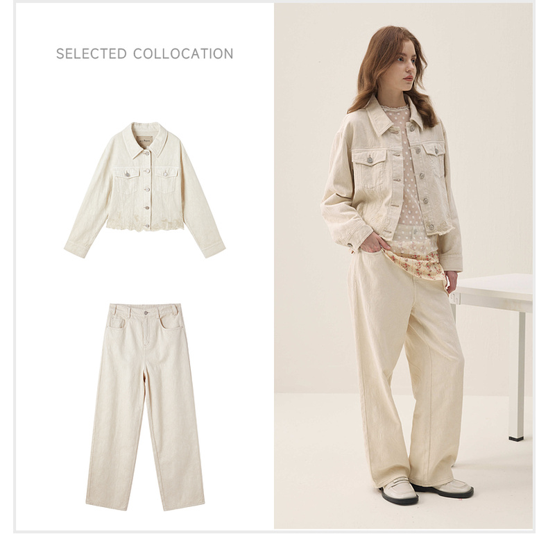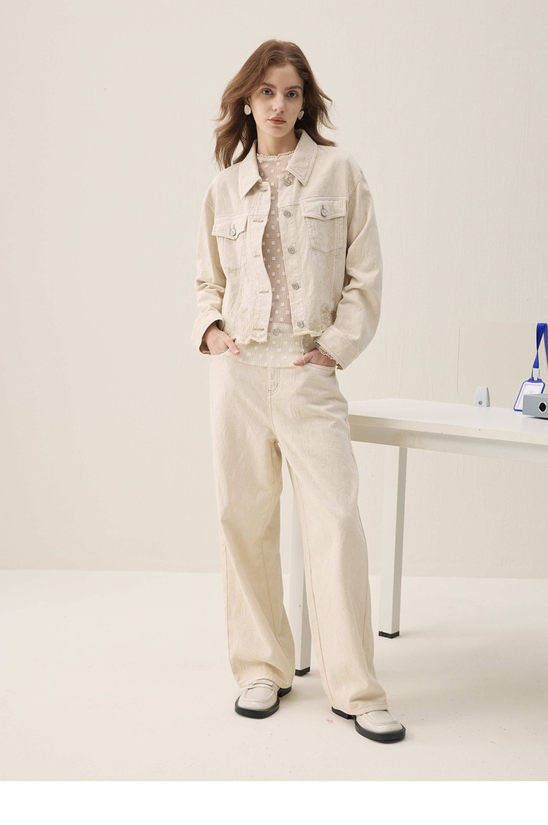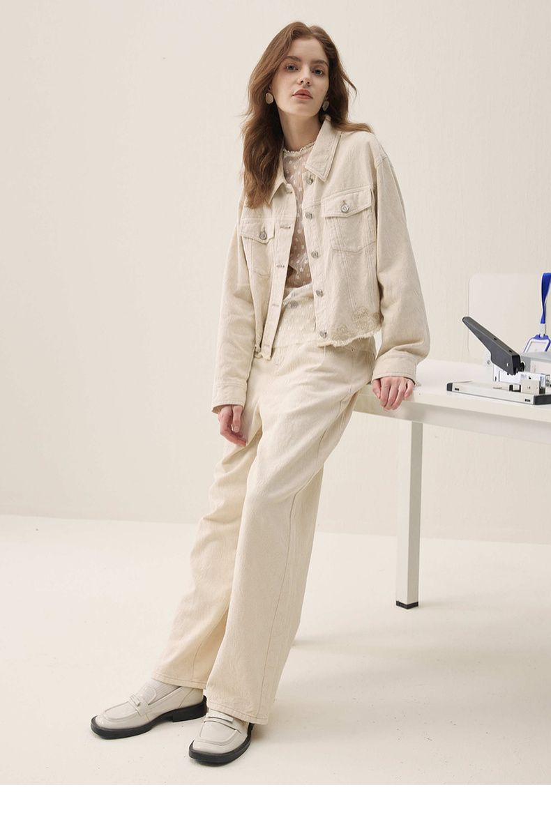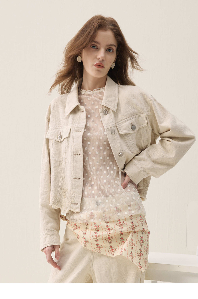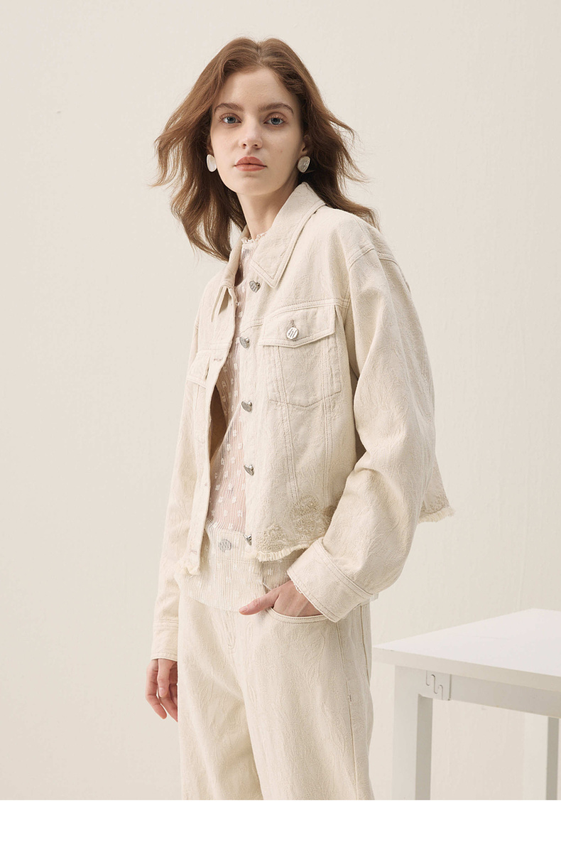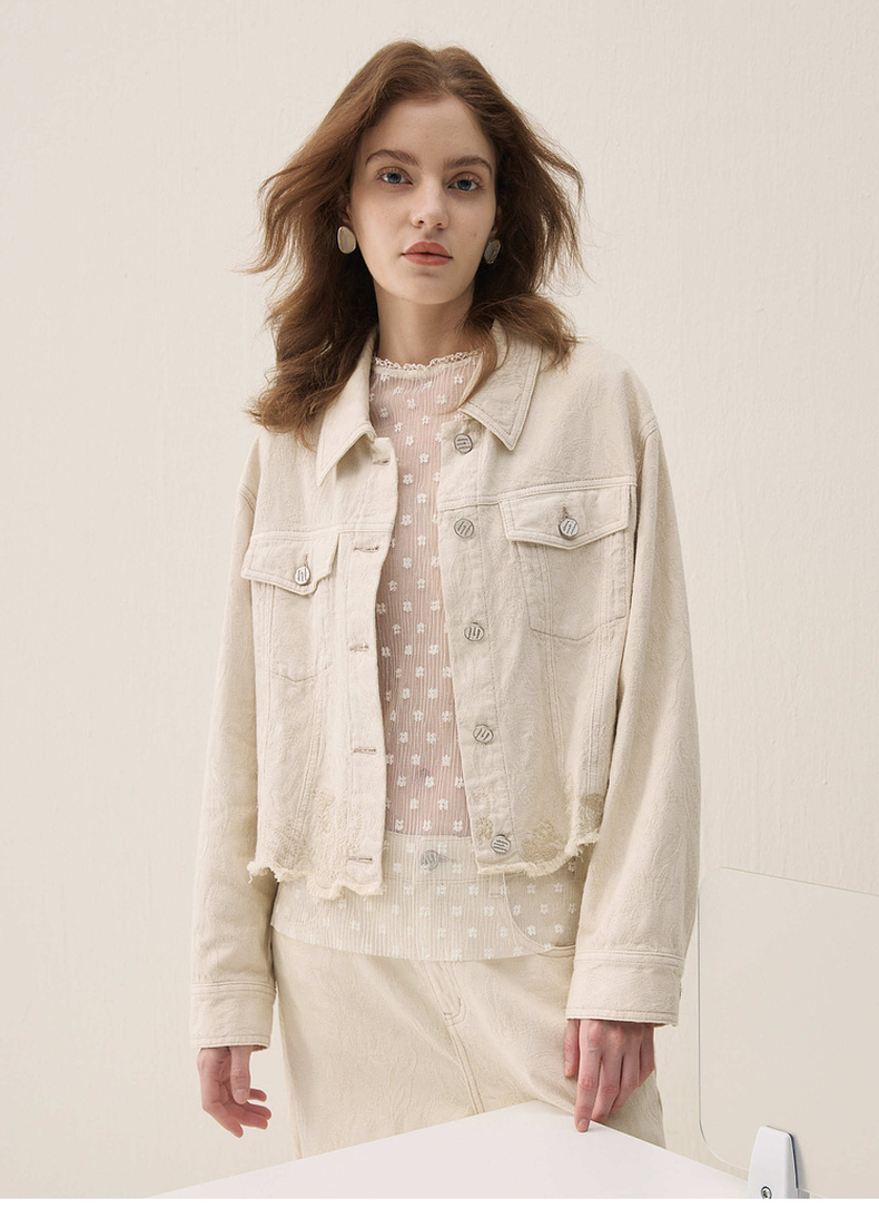 谜底牛仔外套长袖2026春季新品浮雕提花刺绣毛感流苏女261MW0200