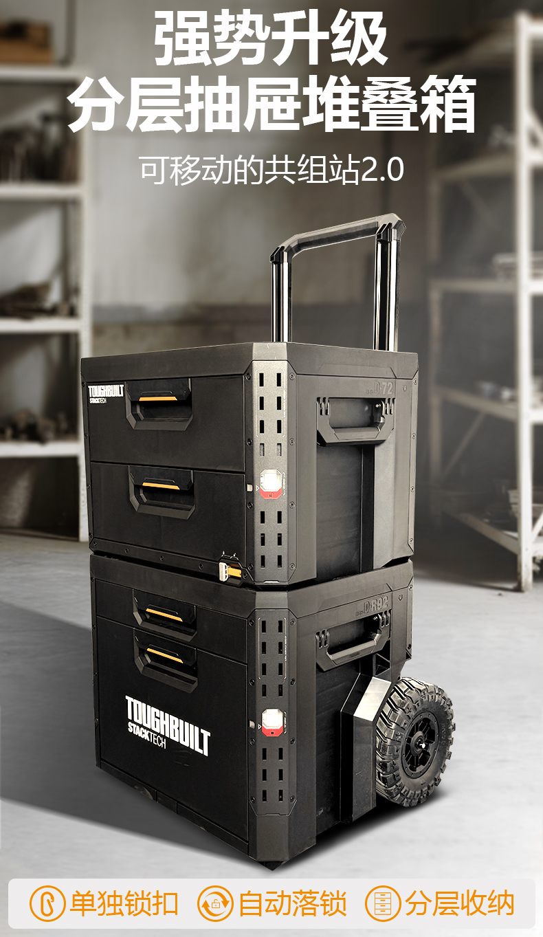 双抽屉拉杆拖轮堆叠工具箱-TB-B1-D-R92