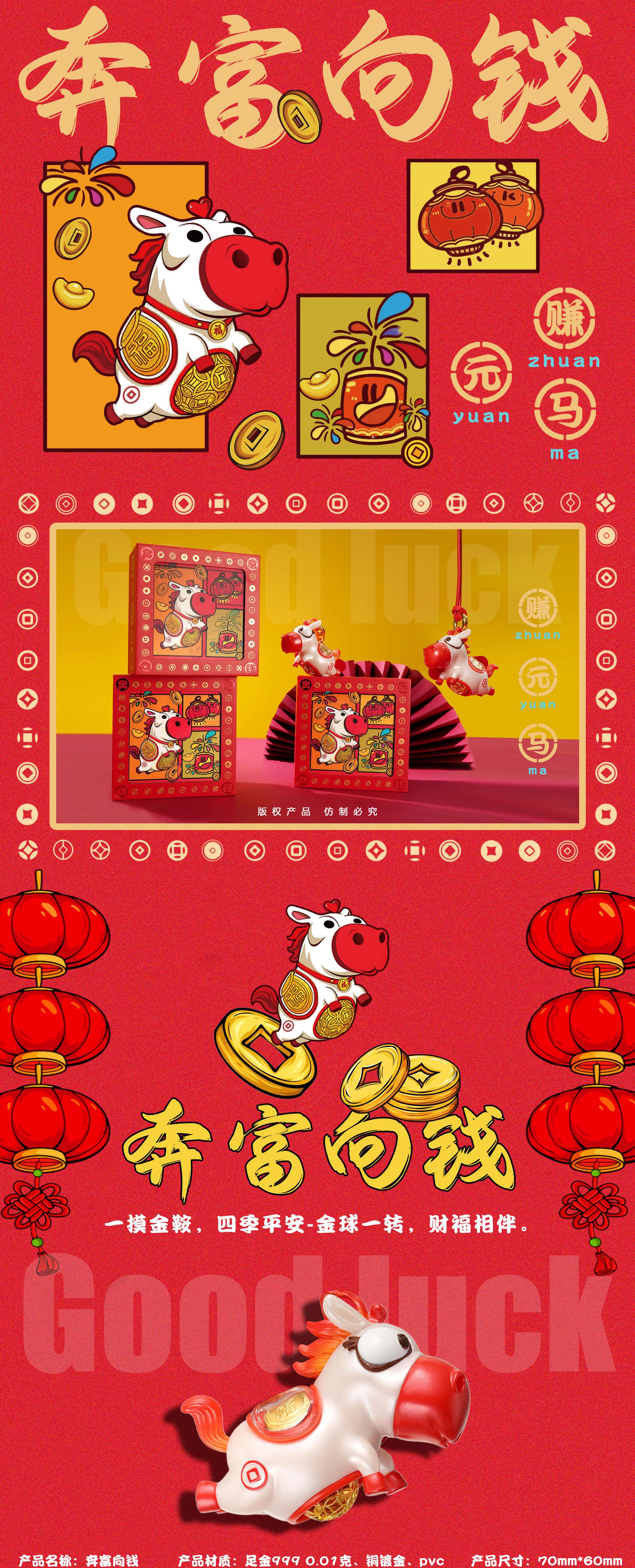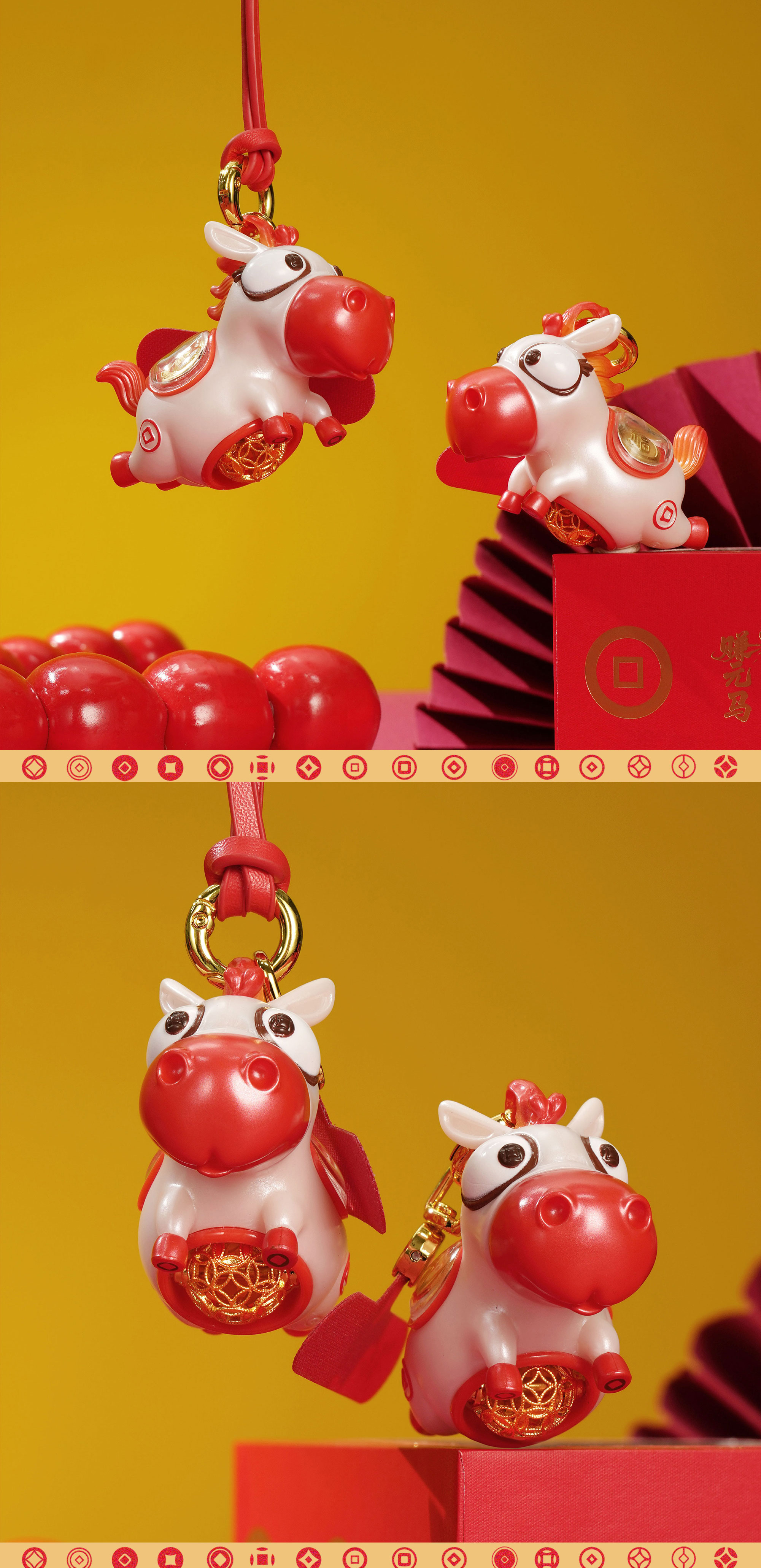 赚元马新年系列礼品 26年新春马年999足金挂饰红手绳 车挂包挂钥匙挂饰品