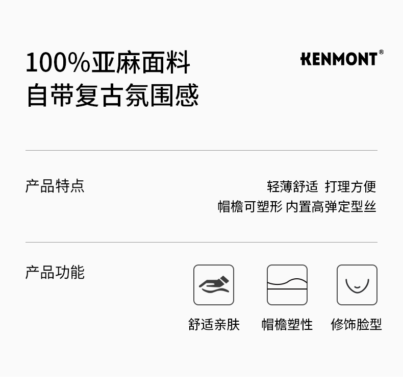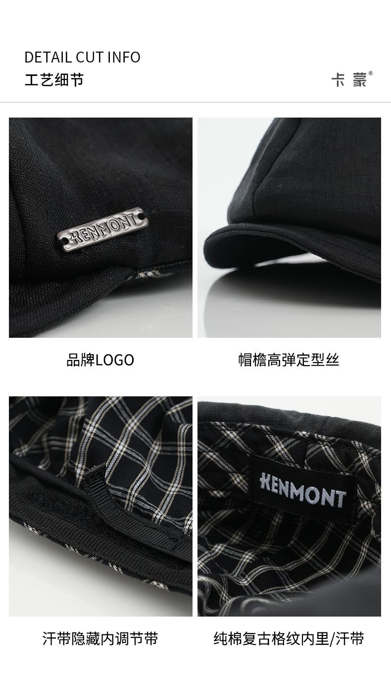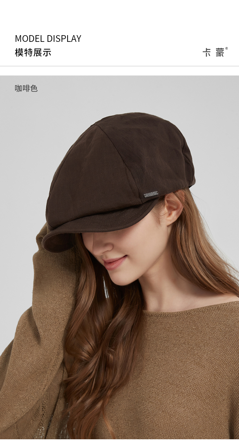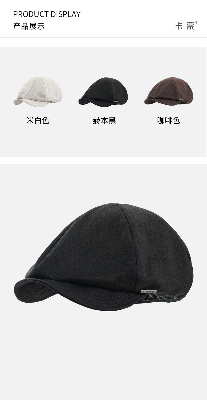 卡蒙100%亚麻贝雷帽复古画家帽大头围简约百搭前进帽KM-5300