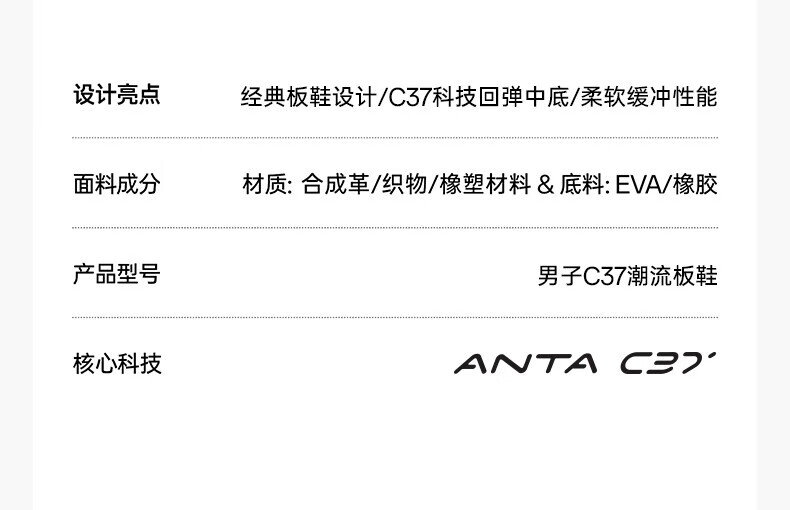 超级安踏C37板鞋丨运动鞋男鞋安踏夏季厚底增高休闲鞋滑板鞋子112538024U
