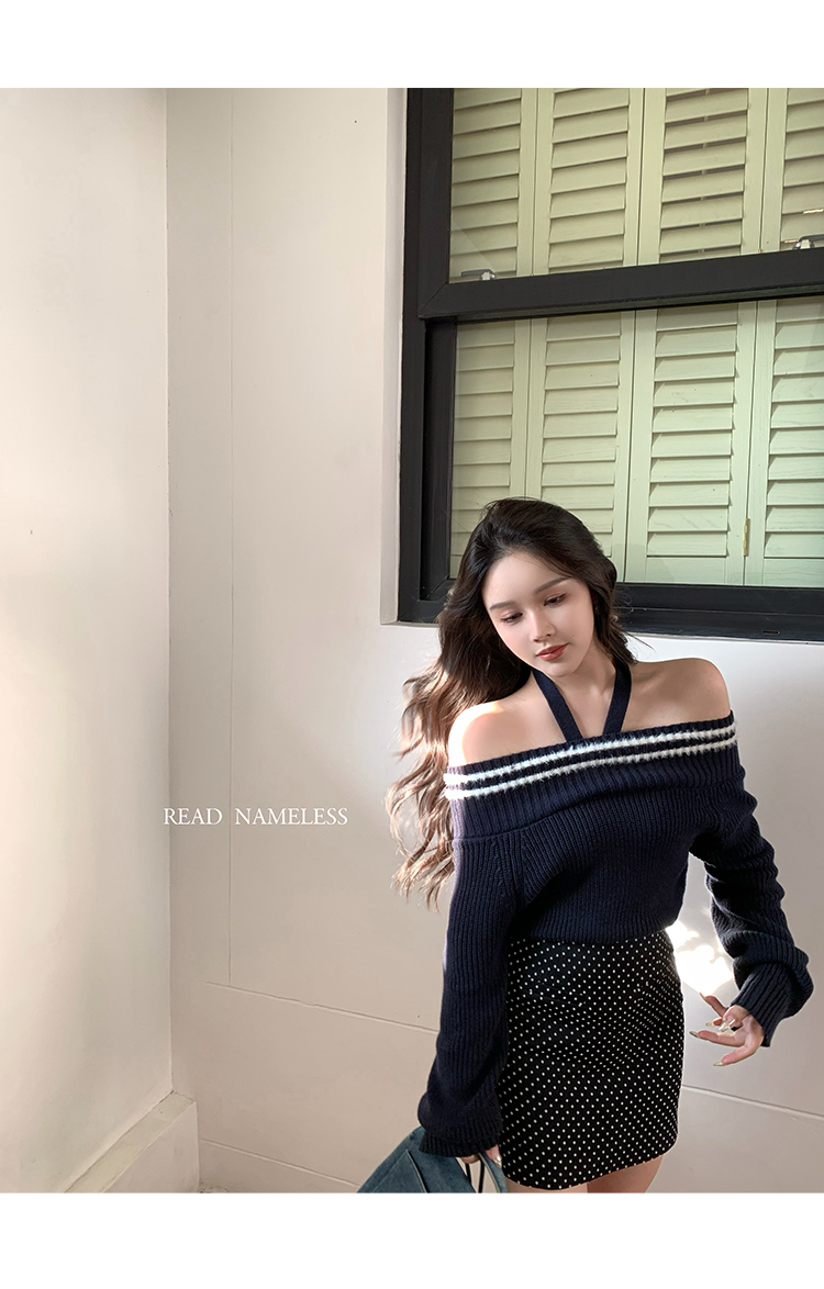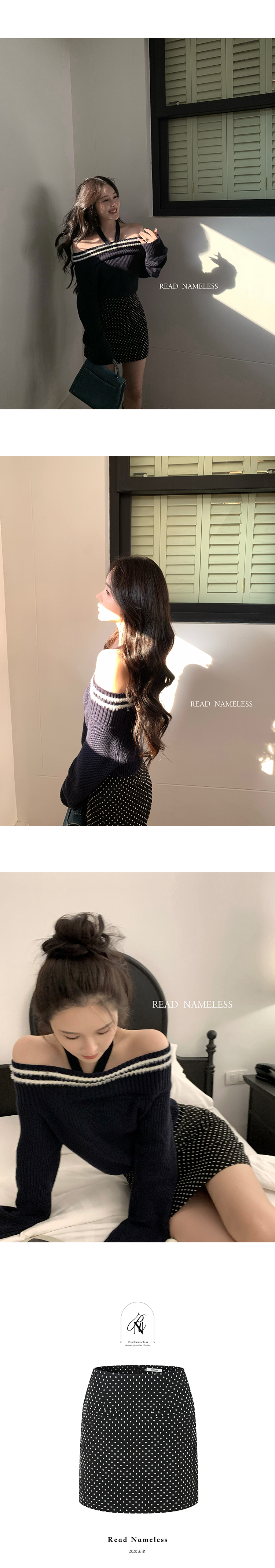 Read Nameless /藏青色纯欲露肩挂脖毛衣+黑色波点包臀裙 2025/3/3