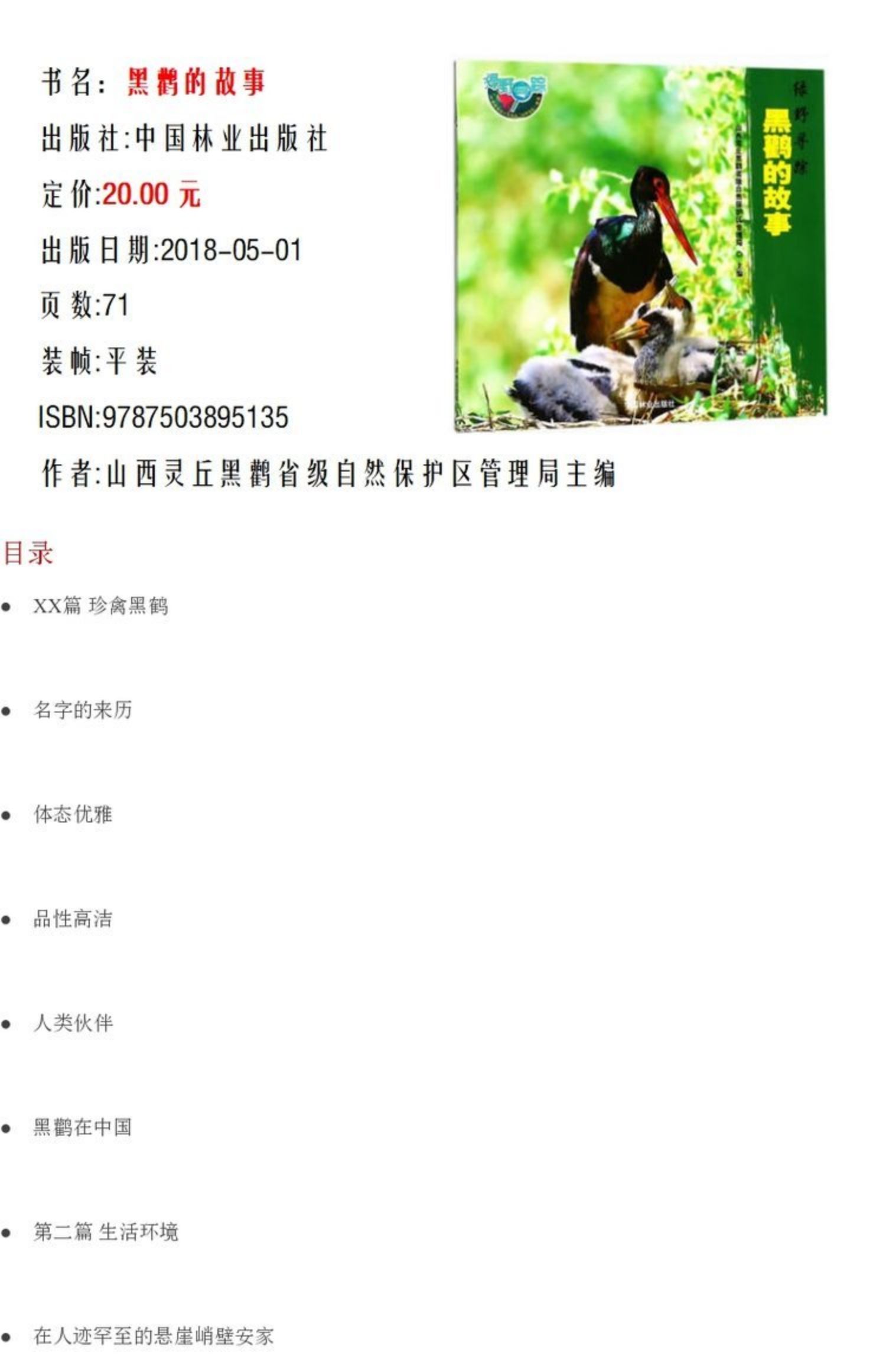 绿野寻踪 黑鹳的故事9513 山西灵丘黑鹳省级自然保护区管理局 主编 中国林业出版社