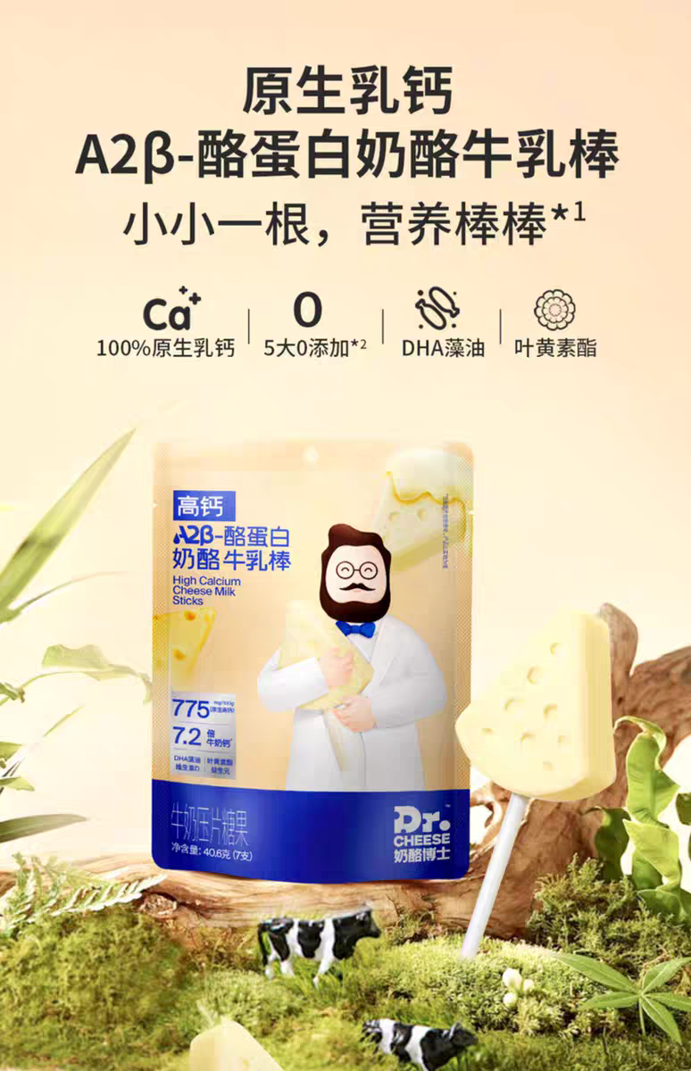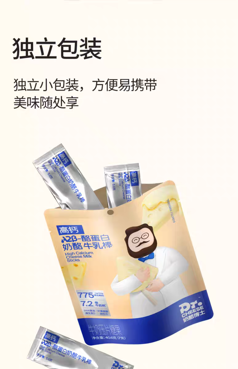高钙A2β-酪蛋白牛乳棒袋装40.6g/袋(7支)*3
