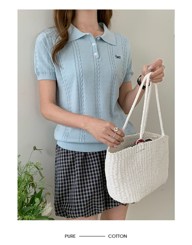 优选丨纤束马纯棉蝴蝶结刺绣短袖 YRT-754