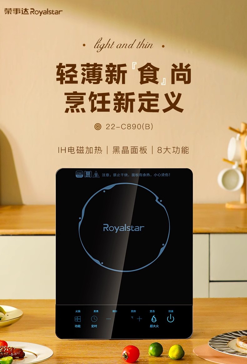 荣事达电磁炉2200W大功率家用触控耐用八档纤薄定时火锅炉22-C890