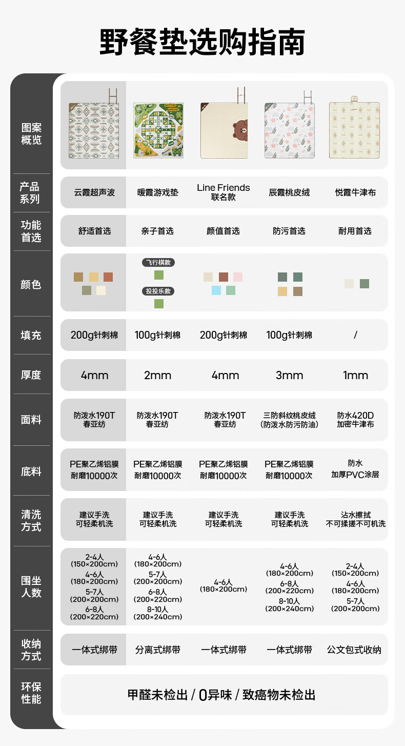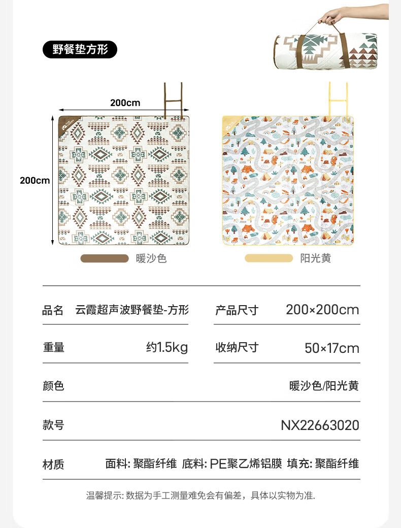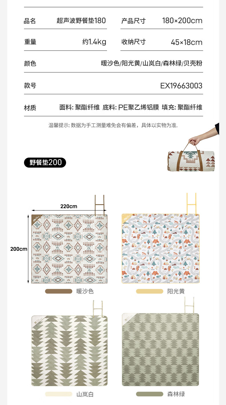 牧高笛 超声波野餐垫180*200cm EX19663003