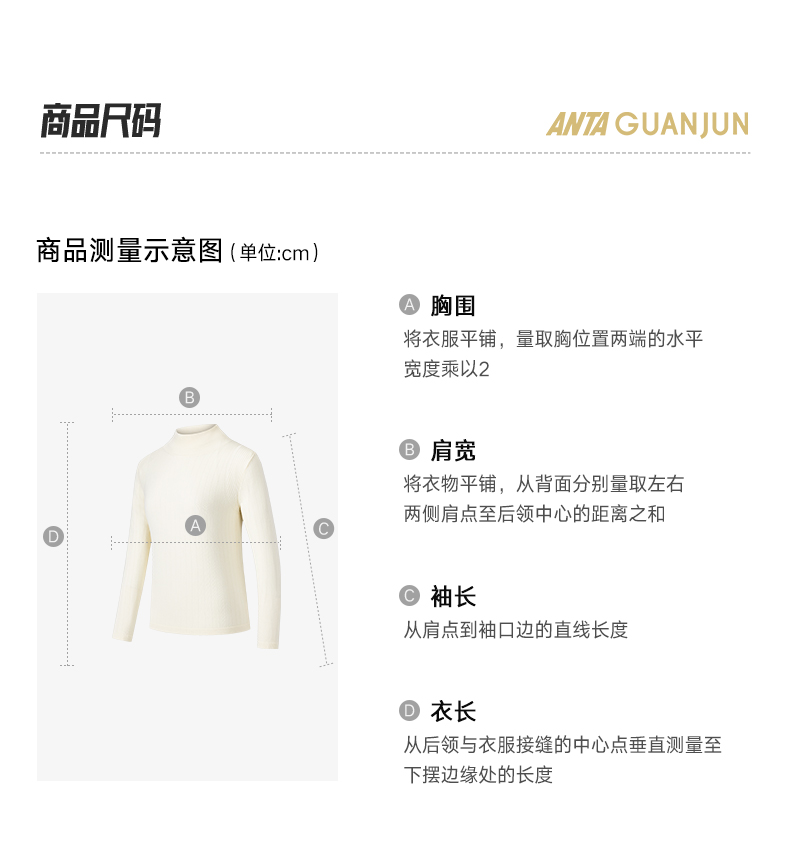 安踏冠军全天候长袖针织衫女士秋冬商务通勤小高领长T恤162540404