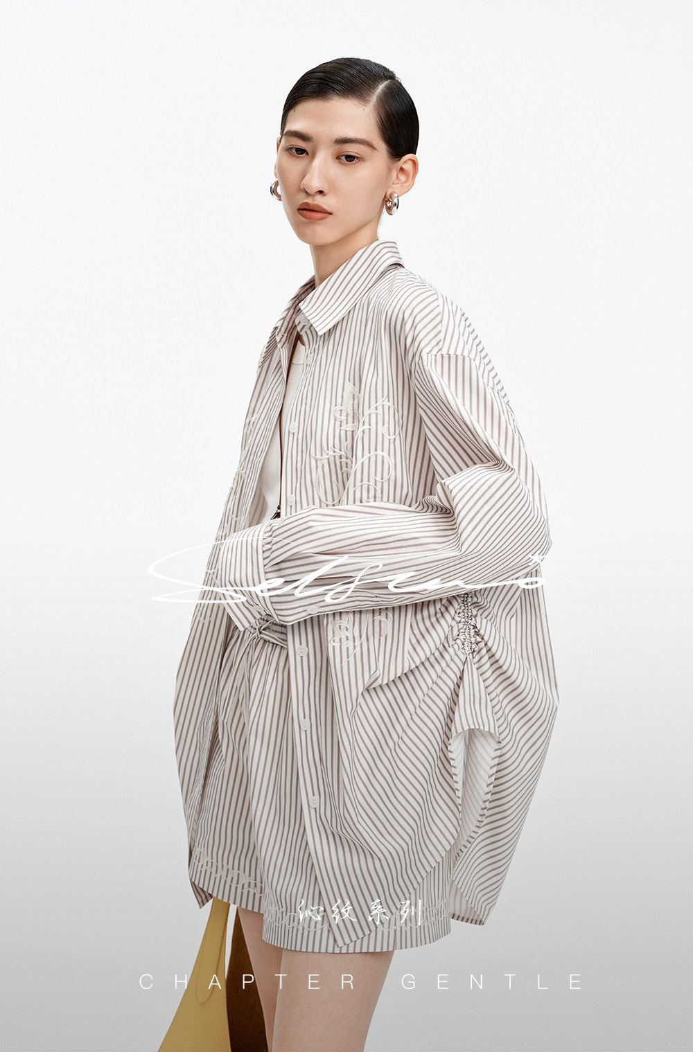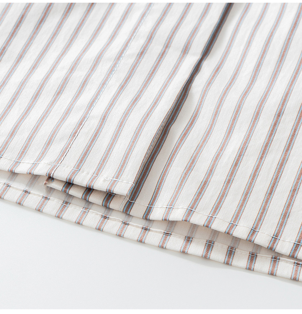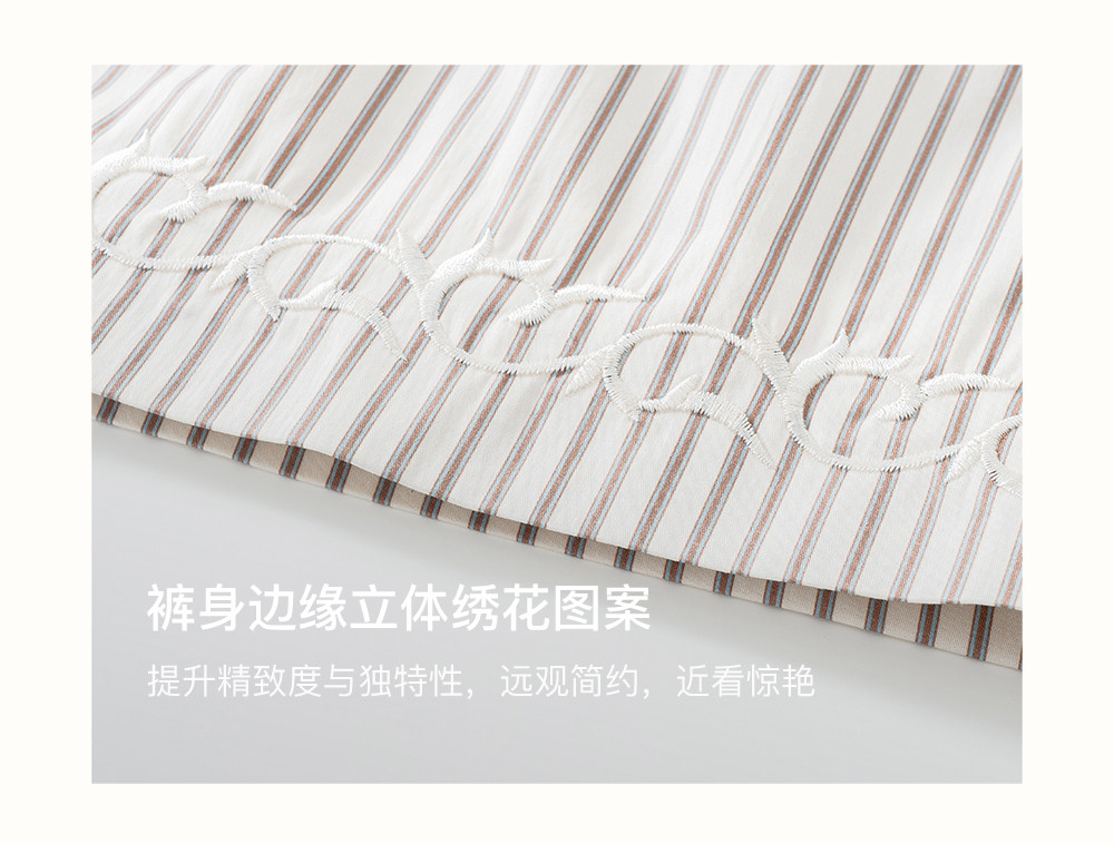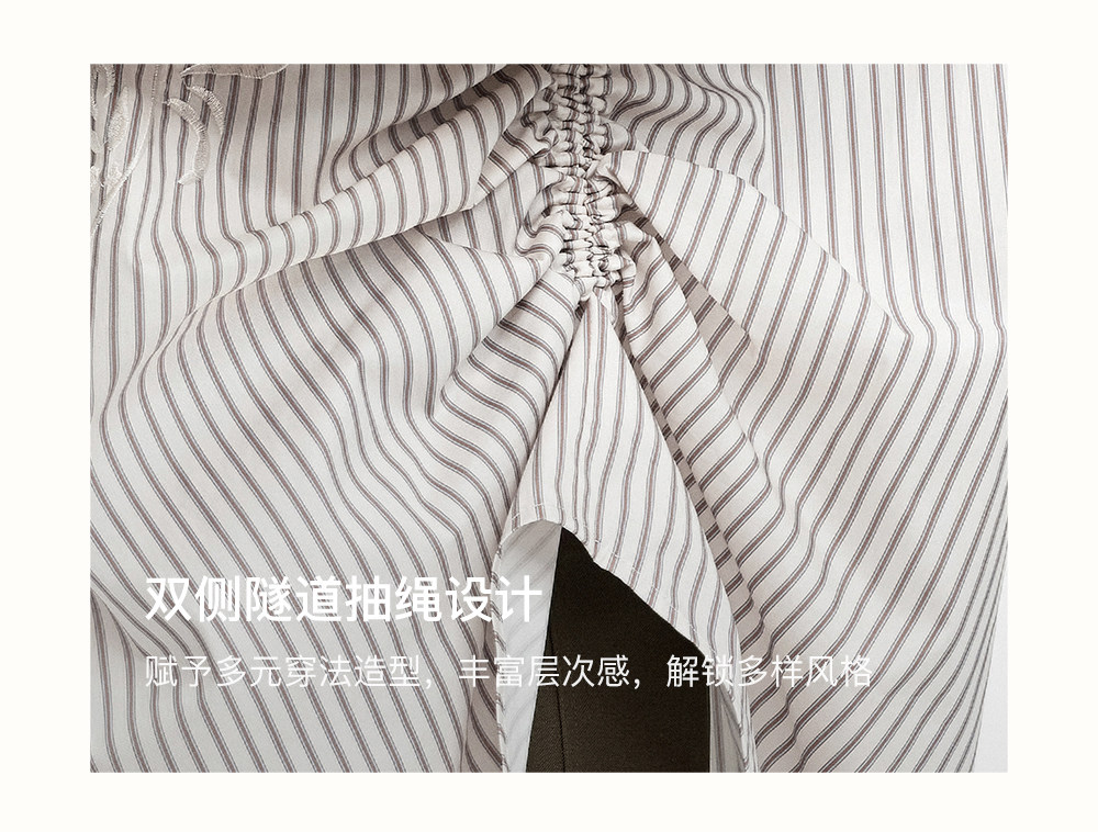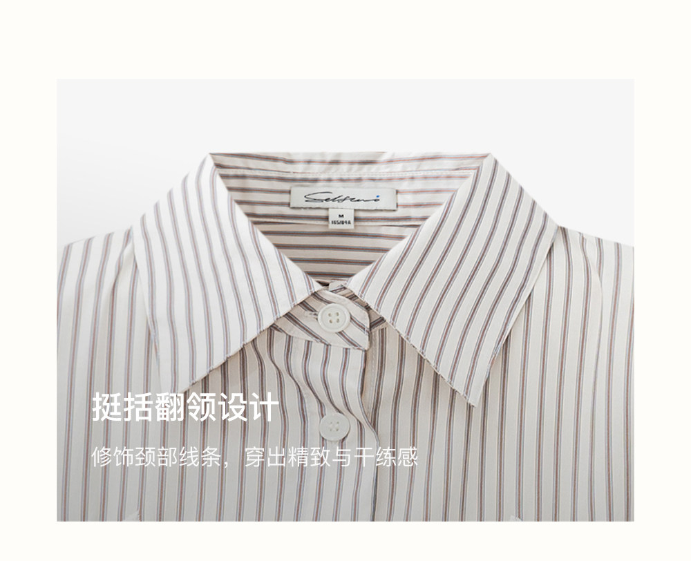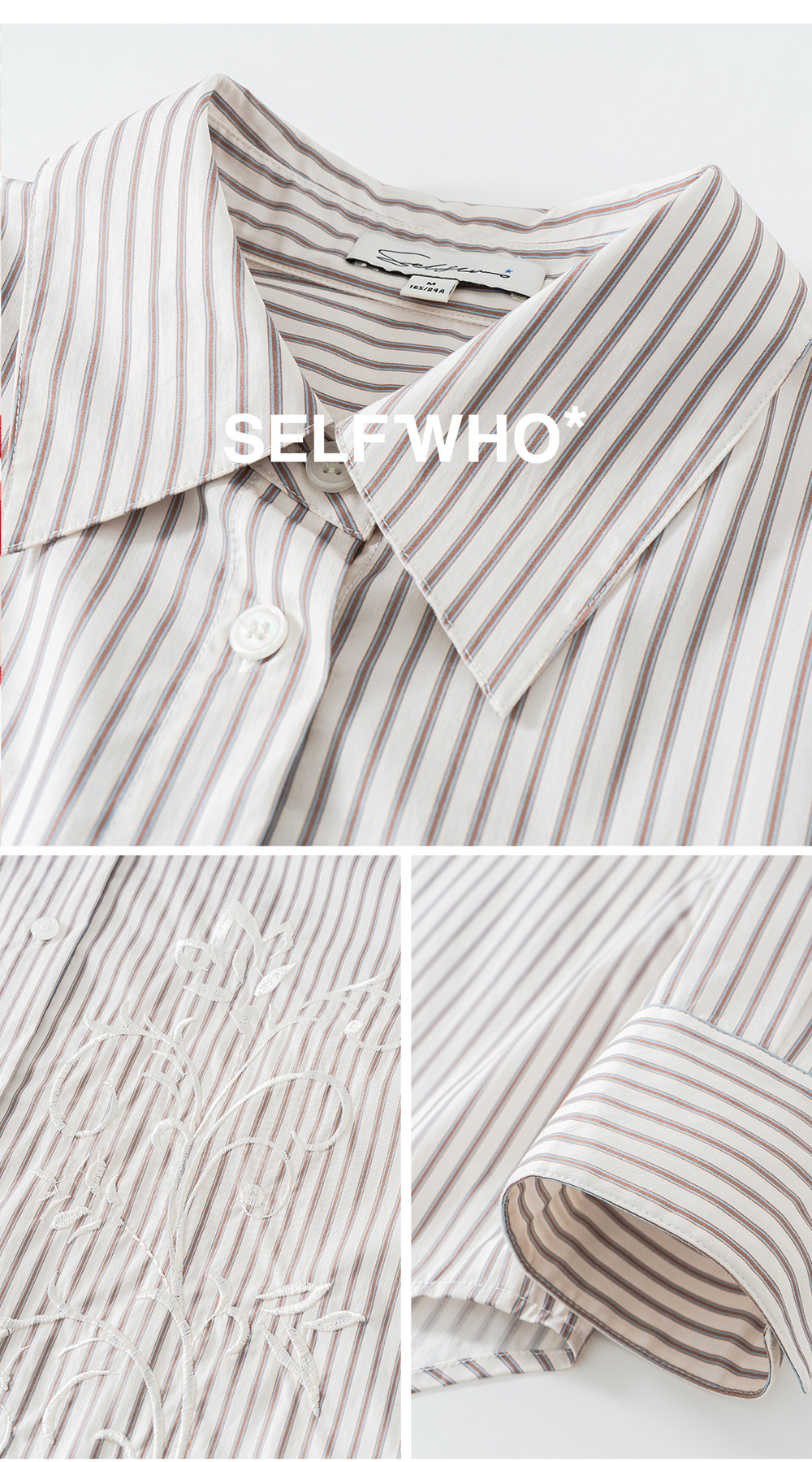 SELFWHO棉混纺撞色对称绣花条纹衬衫女2026春季新款宽松翻领上衣