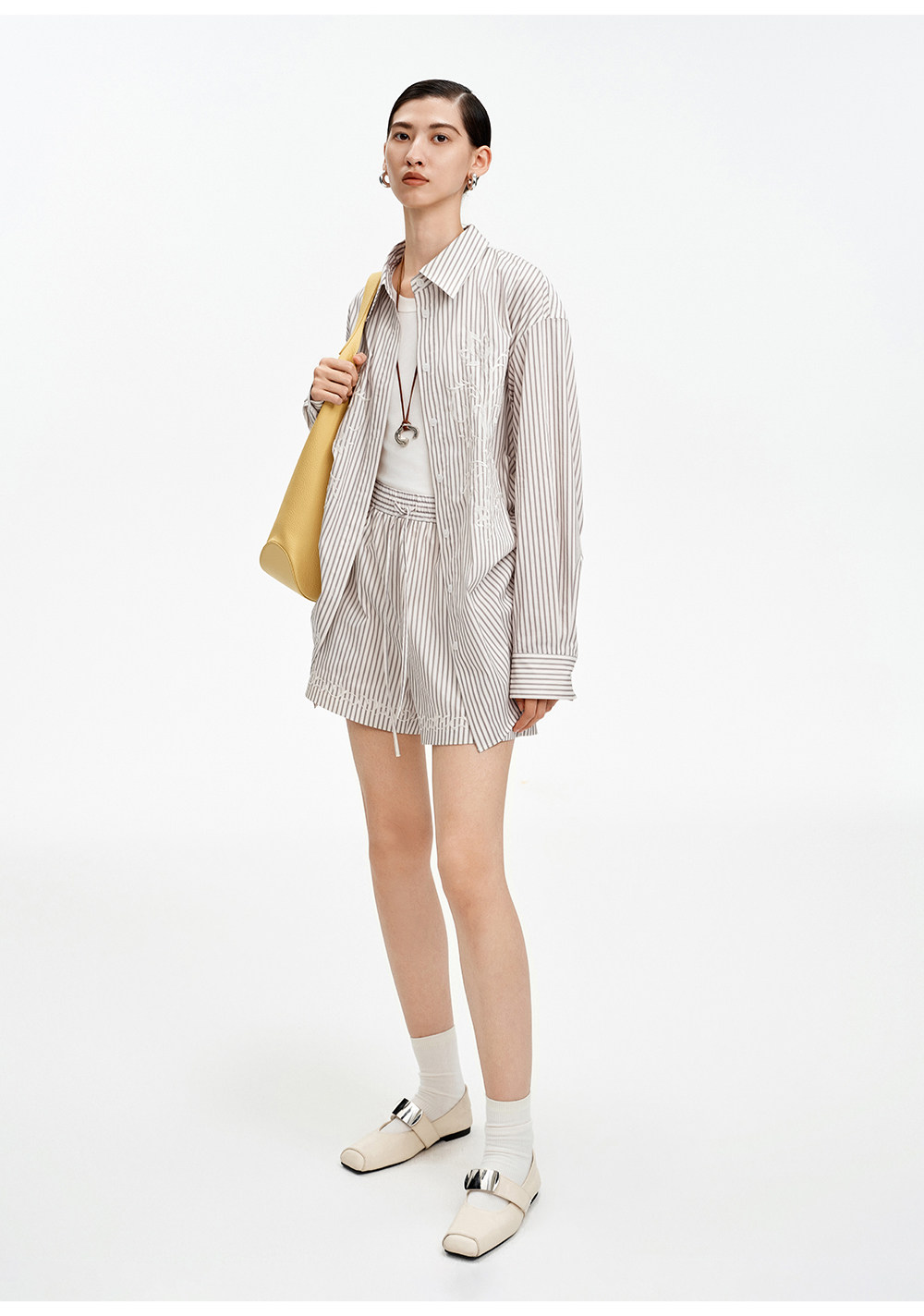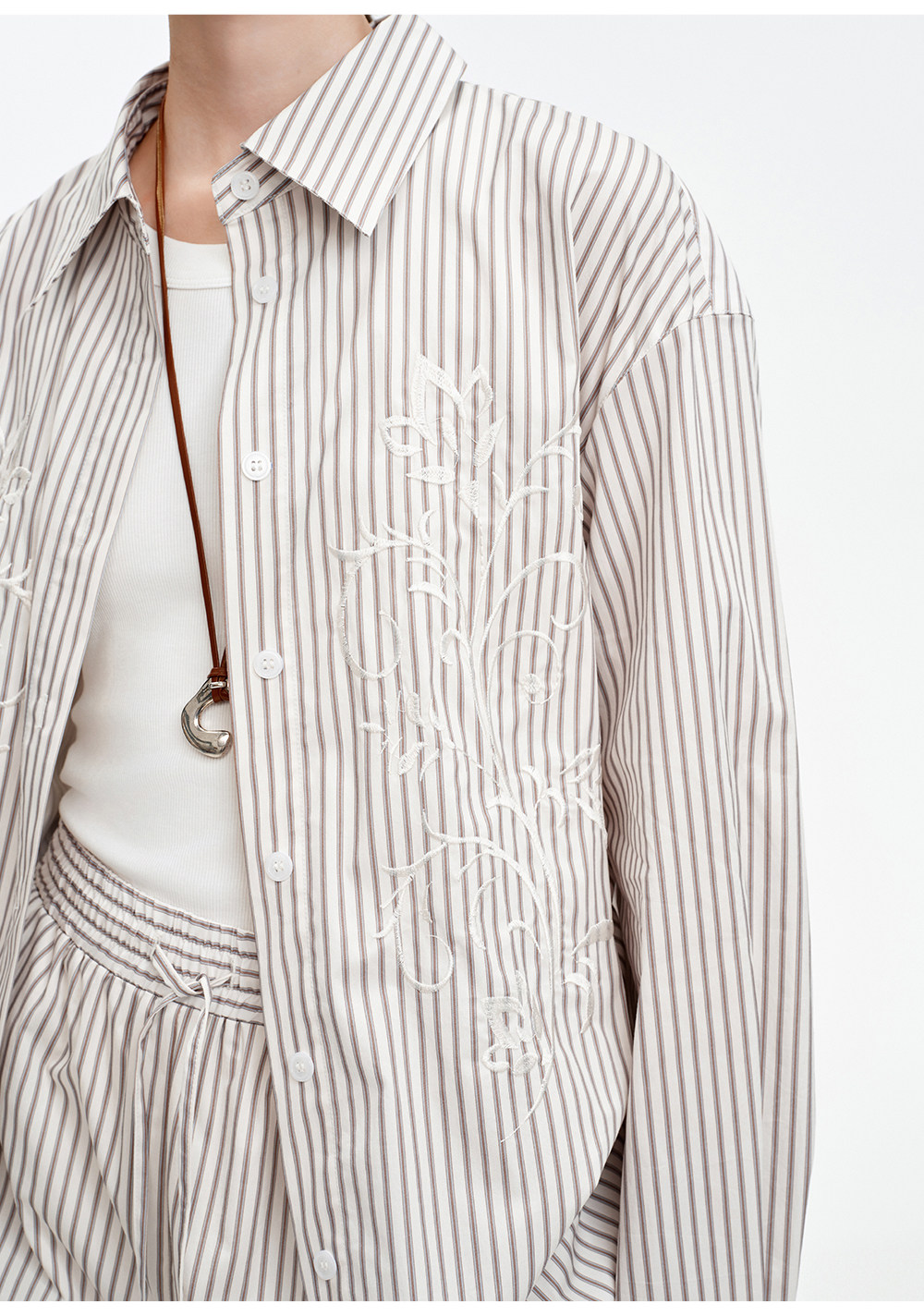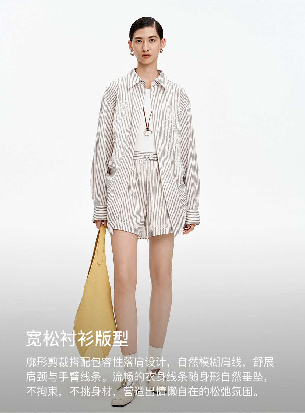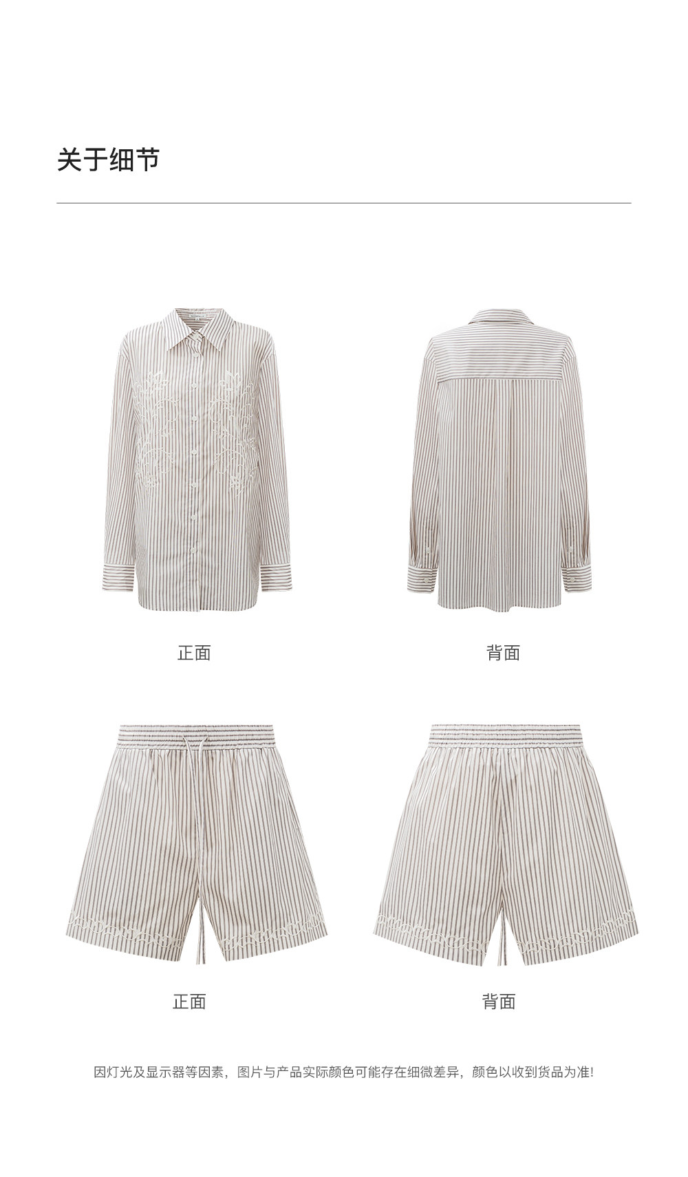 SELFWHO棉混纺撞色对称绣花条纹衬衫女2026春季新款宽松翻领上衣