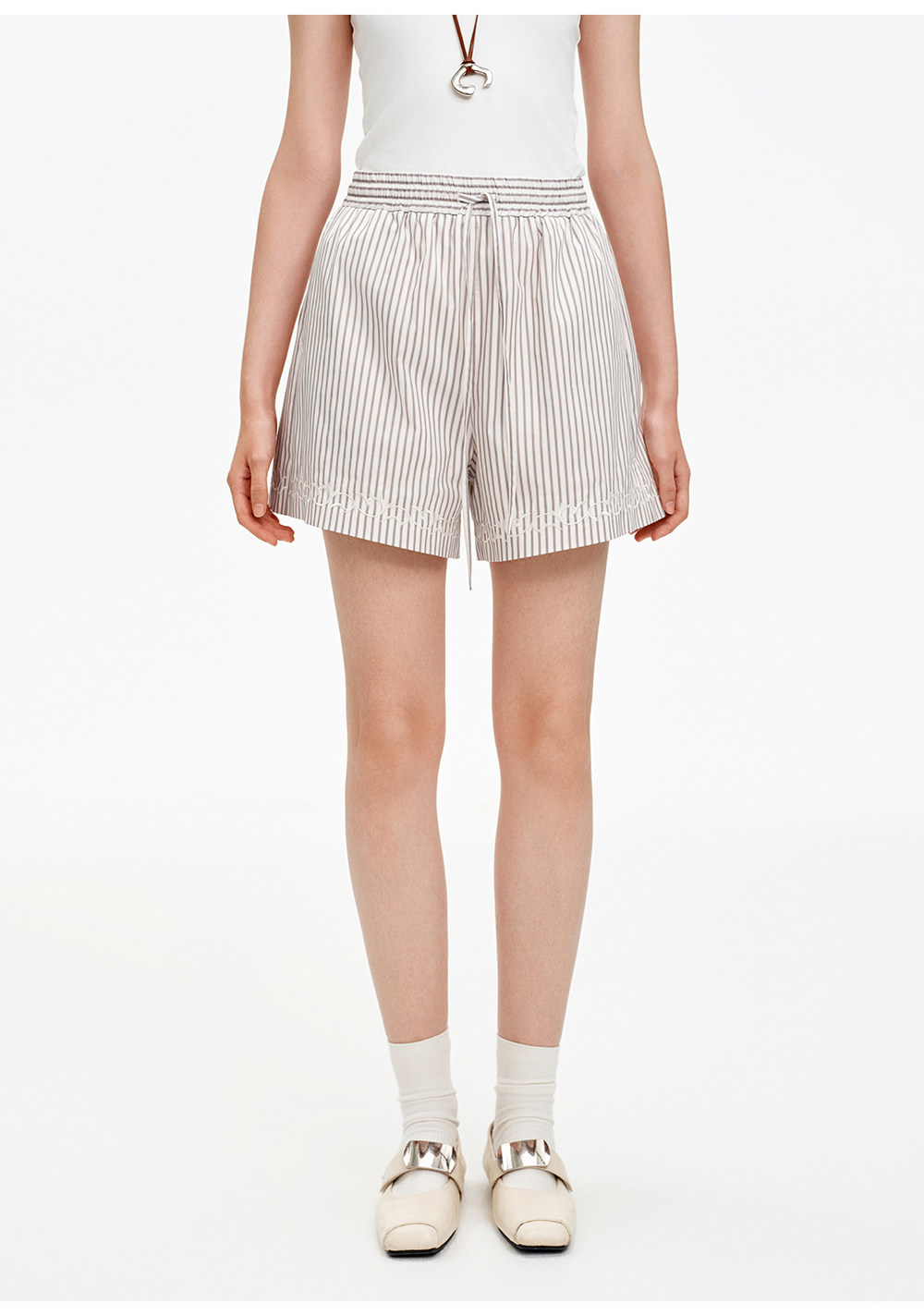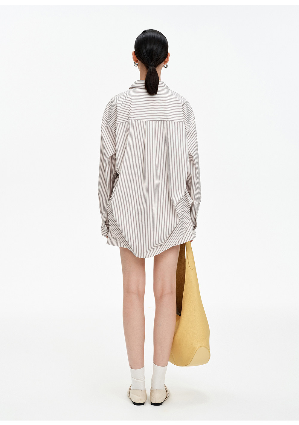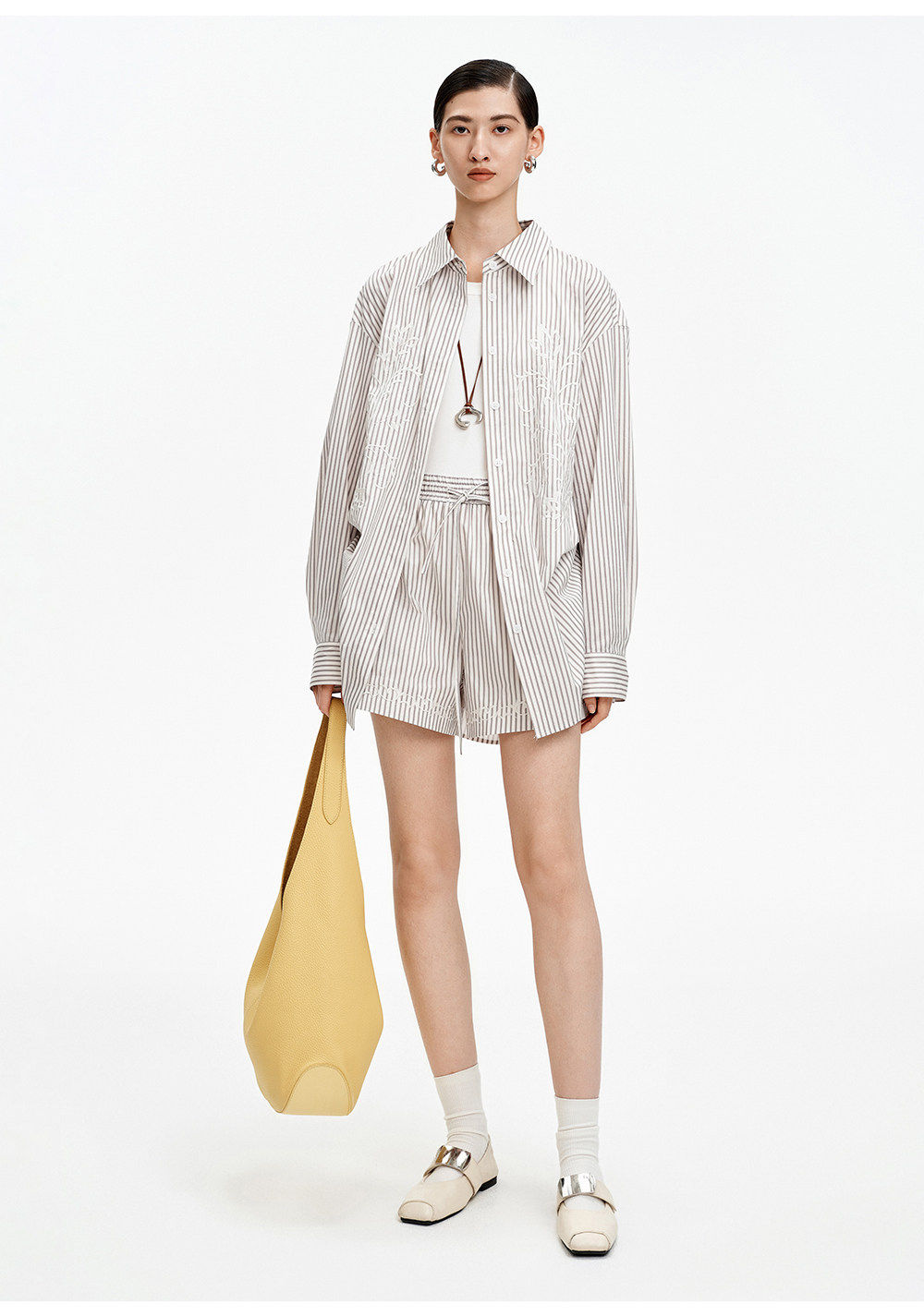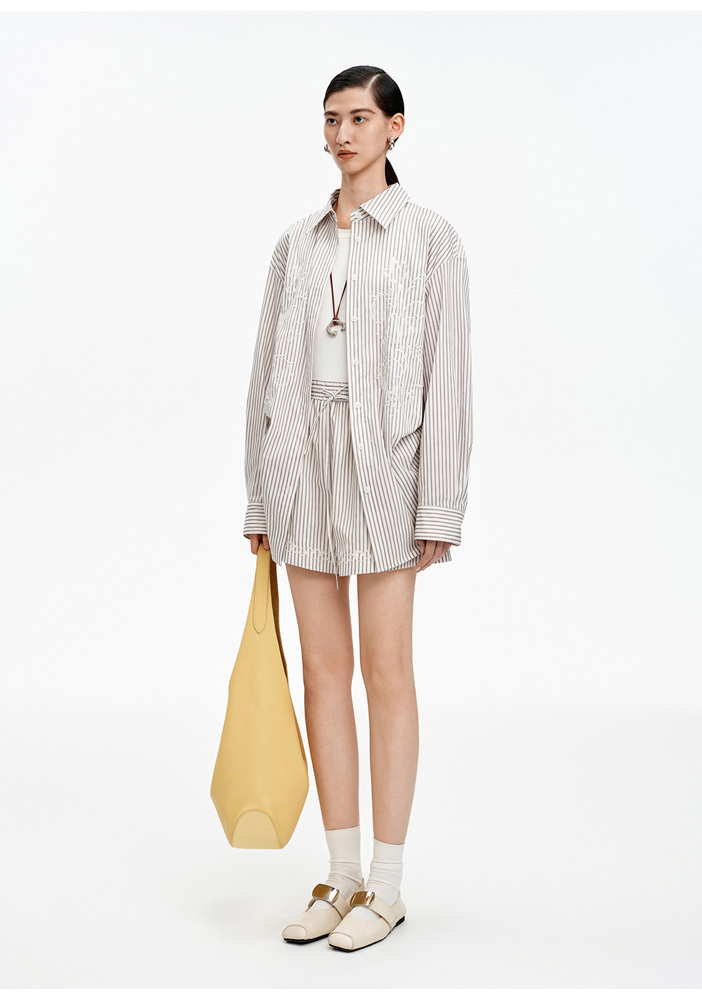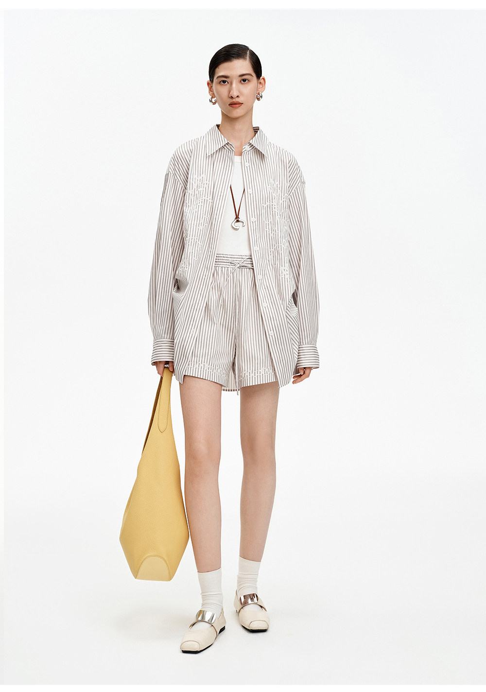 SELFWHO棉混纺撞色对称绣花条纹衬衫女2026春季新款宽松翻领上衣