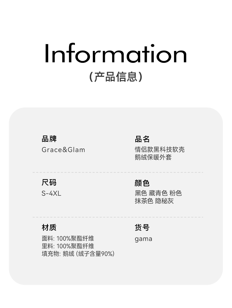 严选 | Grace&Glam情侣款黑科技软壳鹅绒保暖外套