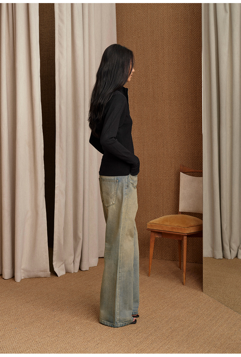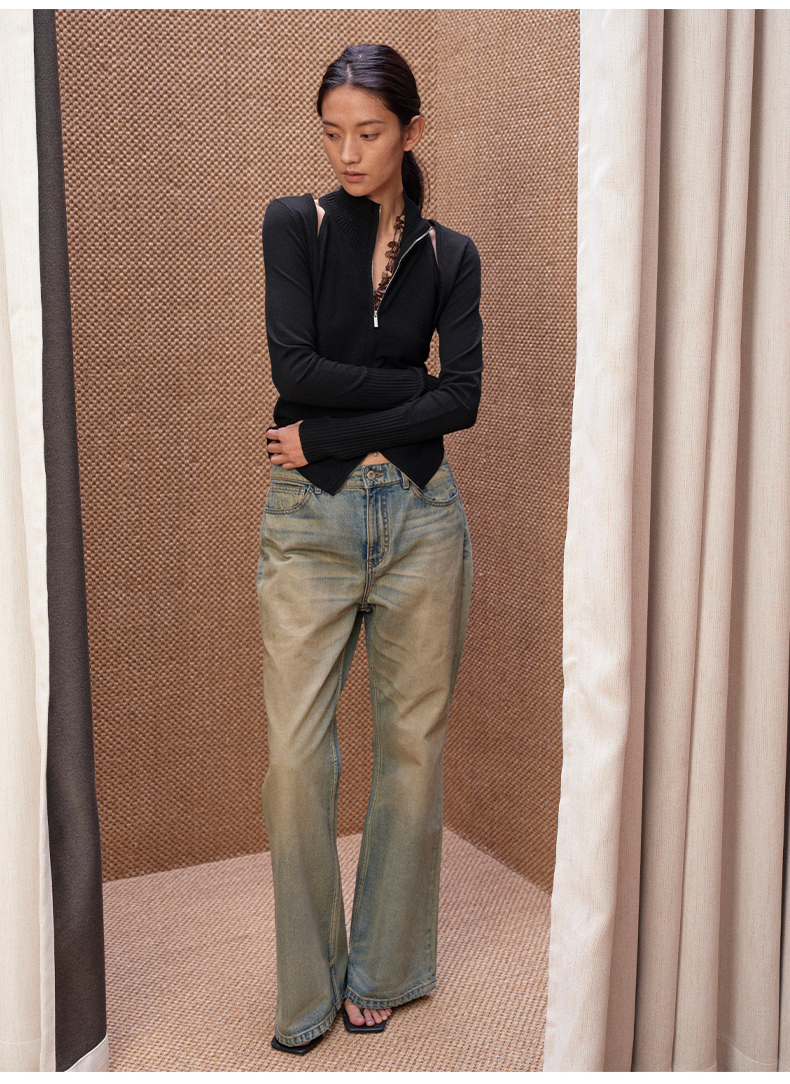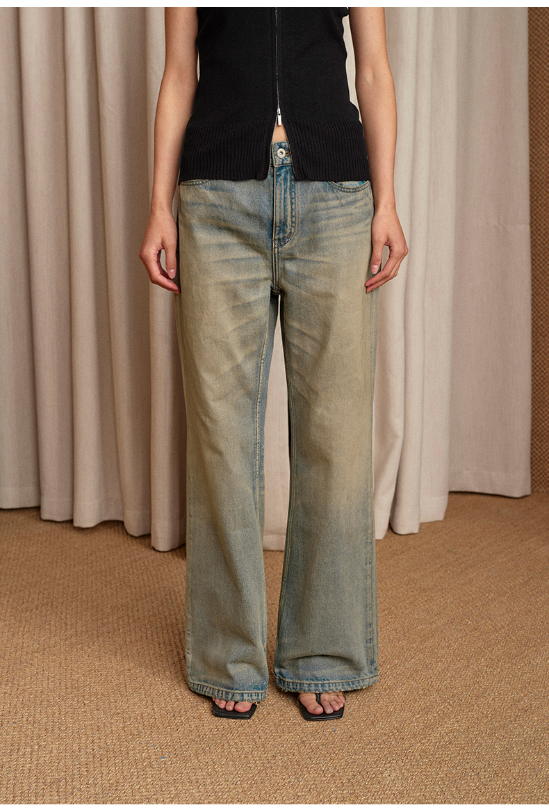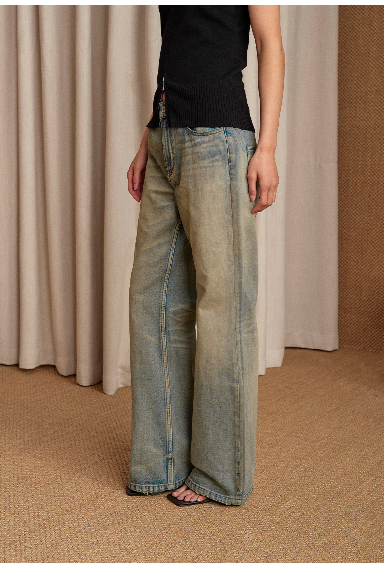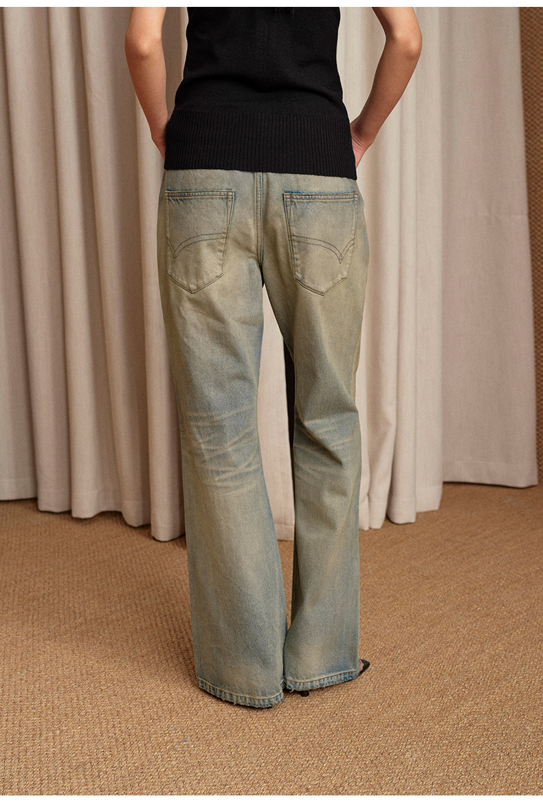 NUTH赤耳面料复古做旧矿井修身显瘦微喇牛仔裤女
