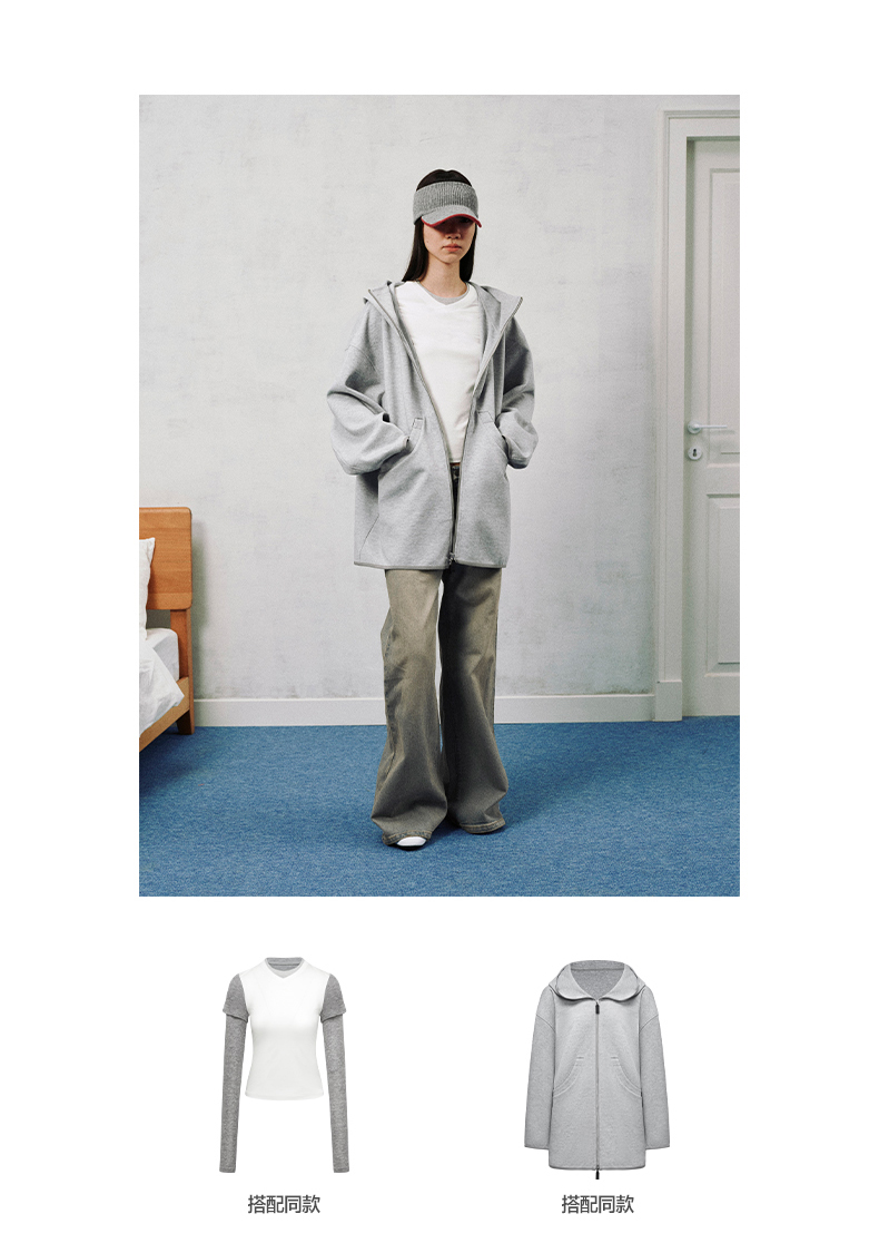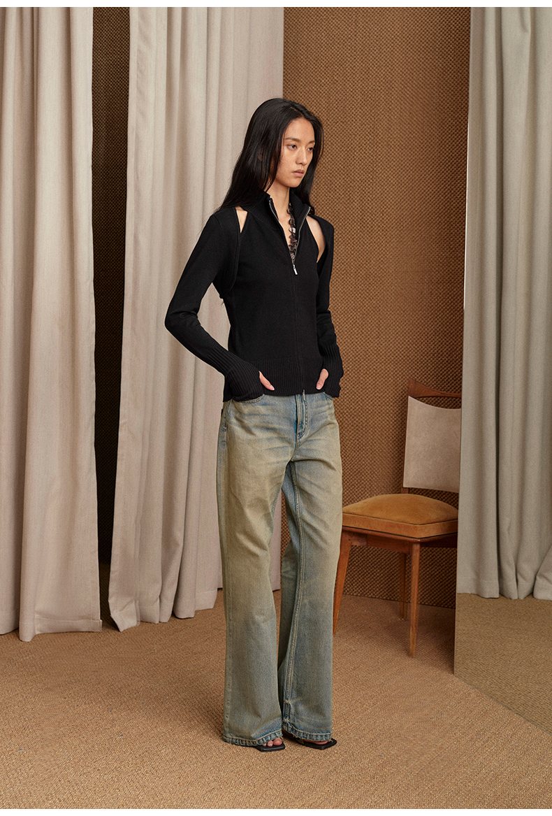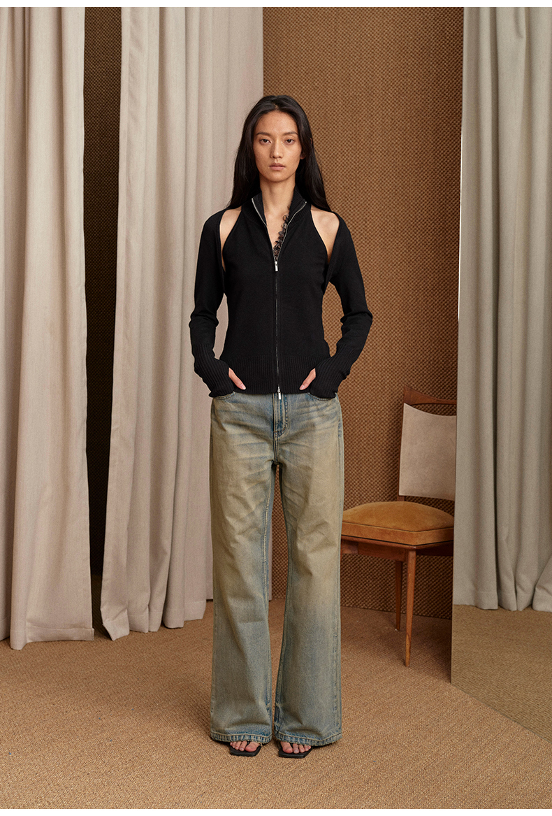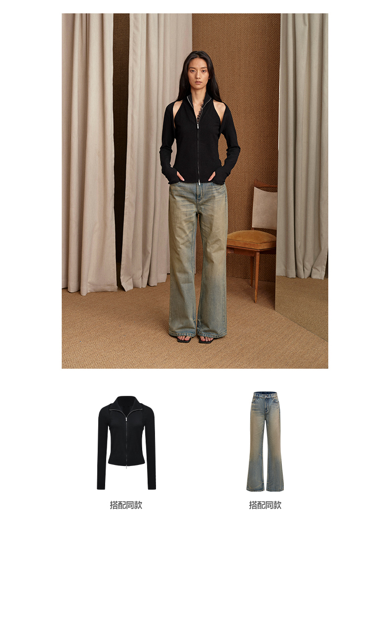 NUTH长袖针织衫女修身不对称简约百搭开衫上衣