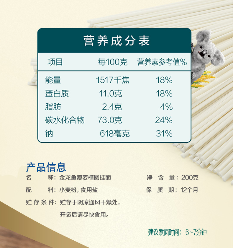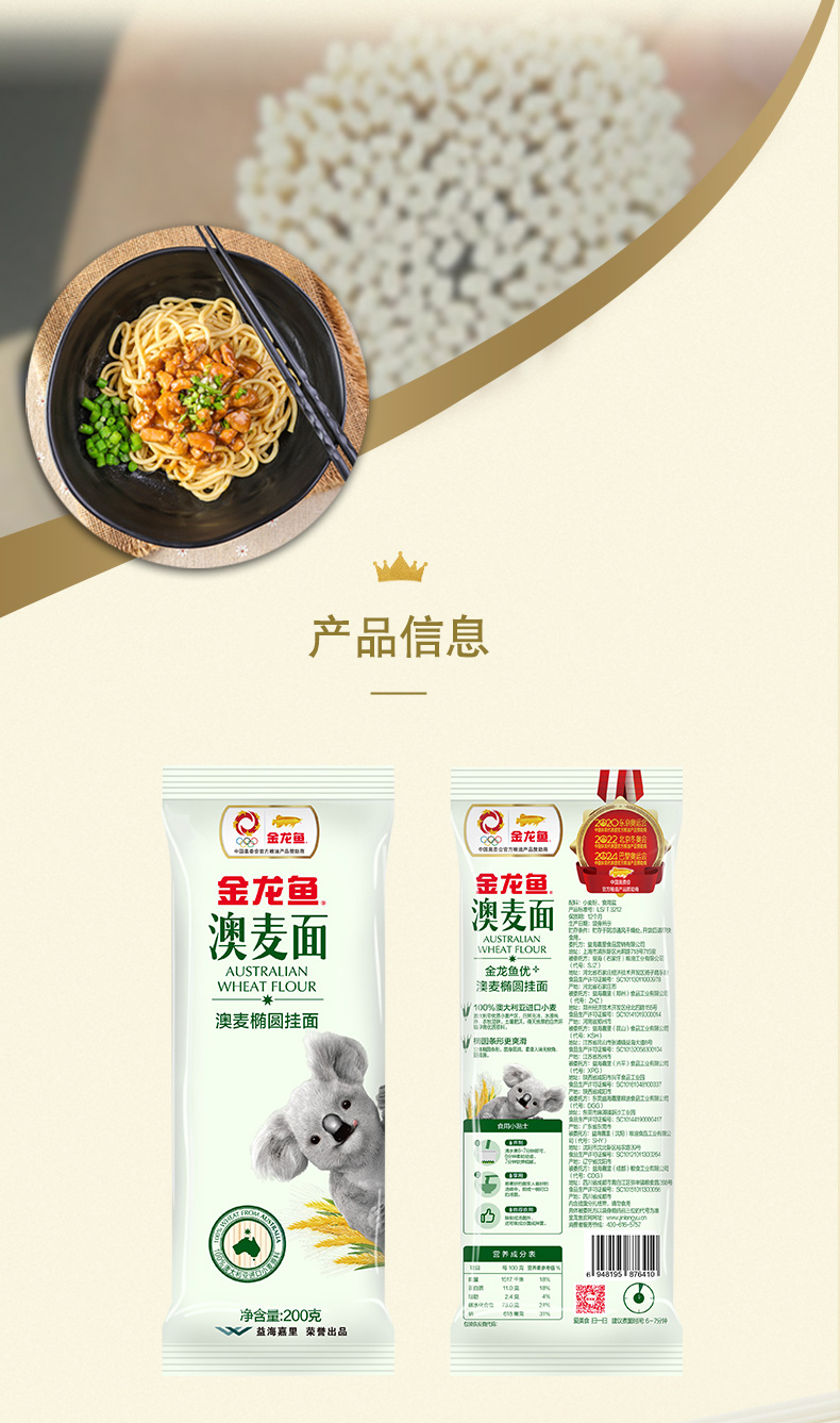 【限时立减】金龙鱼澳麦系列澳麦椭圆挂面200g*10