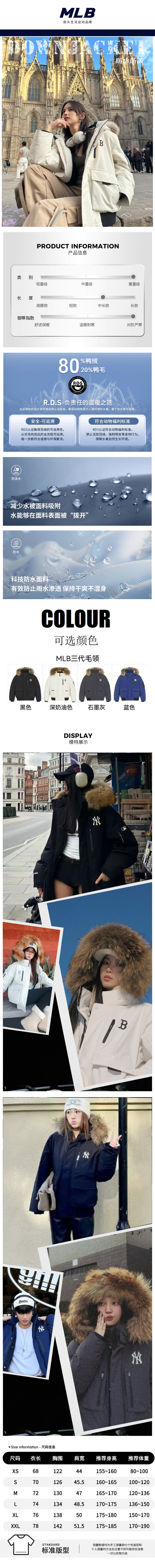 【MLB张凌赫同款】秋冬男女情侣款羽绒服 时尚百搭 抵御严寒 多款多色可选
