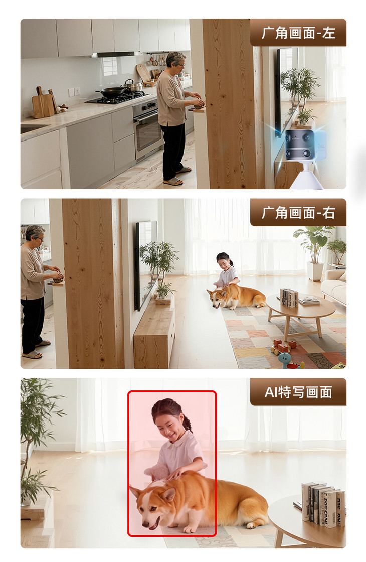【超值】360云台摄像机P500双摄版 双500万镜头 微光夜视 AI移动侦测 360°全景视野 一台顶三台