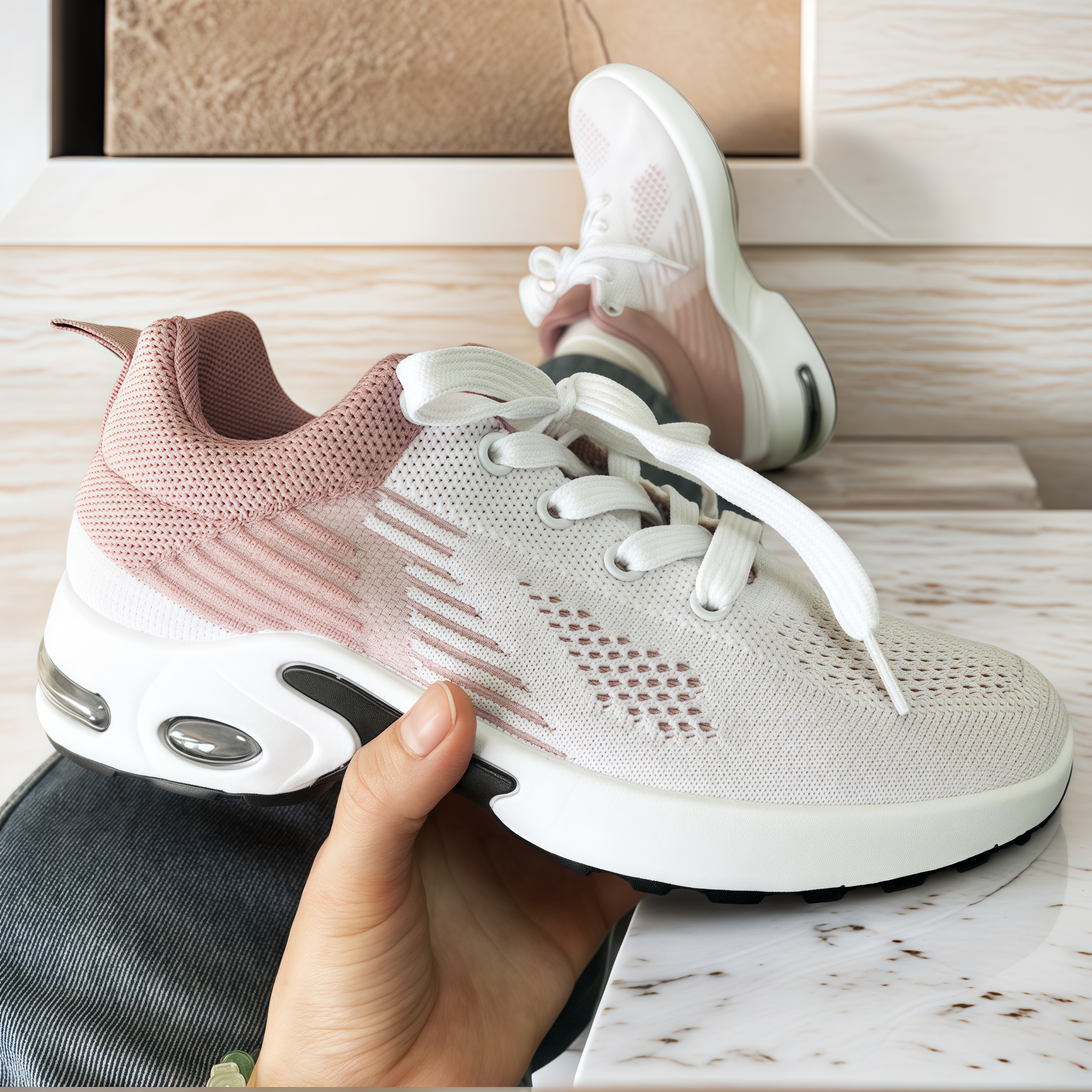 材质:鞋面飞织,鞋底:气垫+PVC