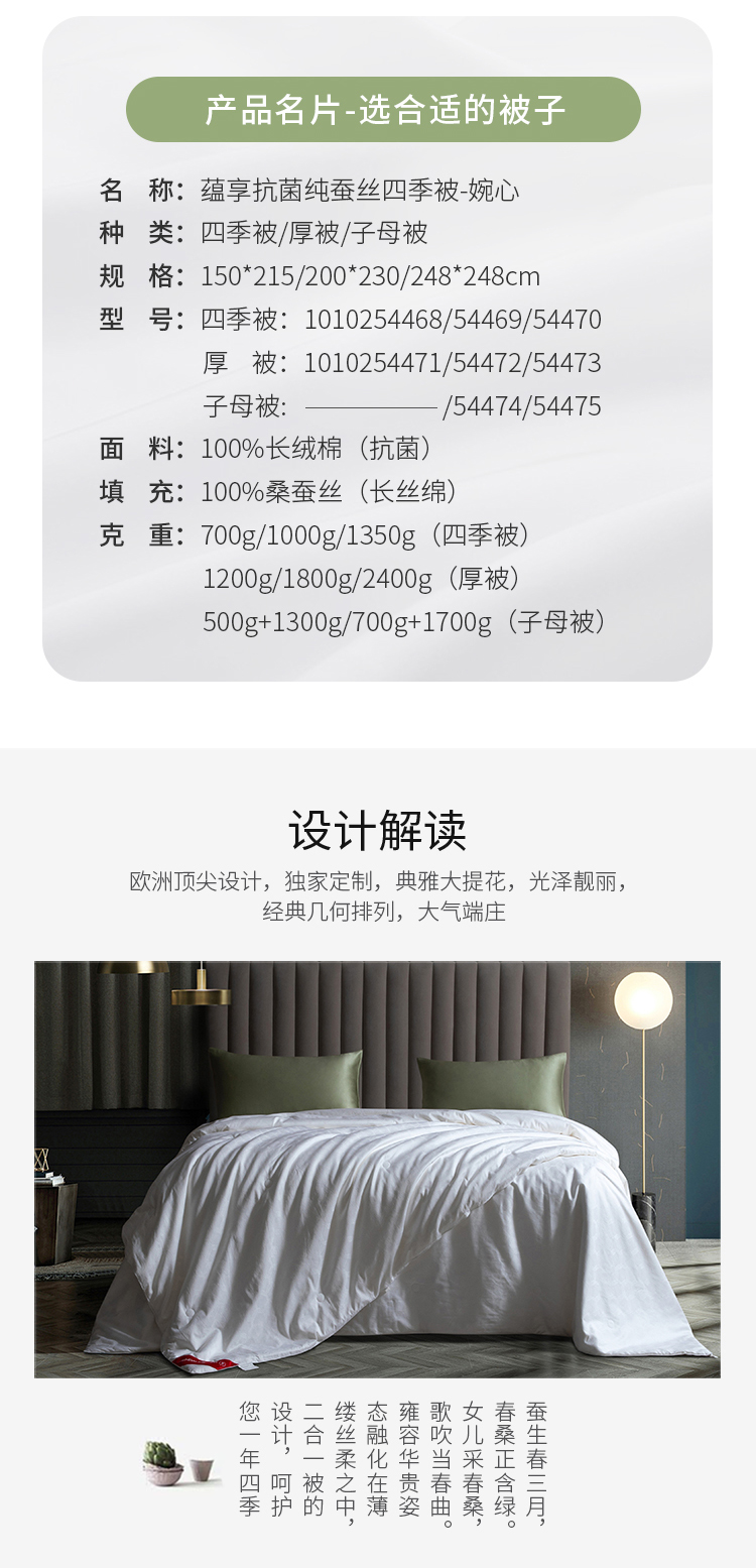 梦洁 蕴享抗菌纯蚕丝四季被:婉心
