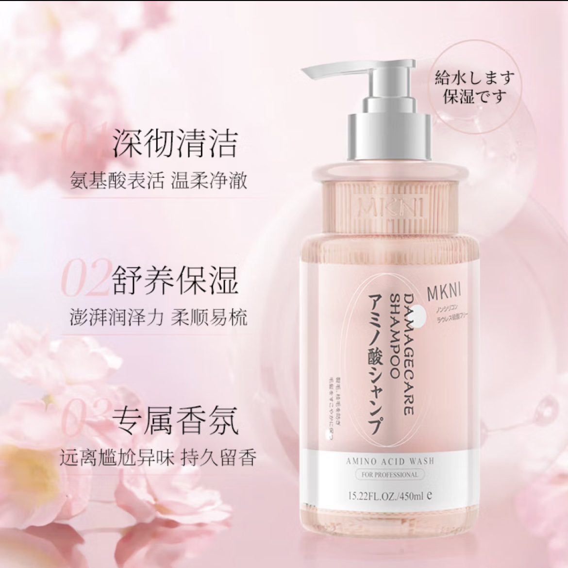 MKNI玫可奈活力保湿洗发水450ml无硅油氨基酸