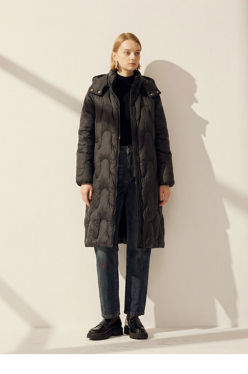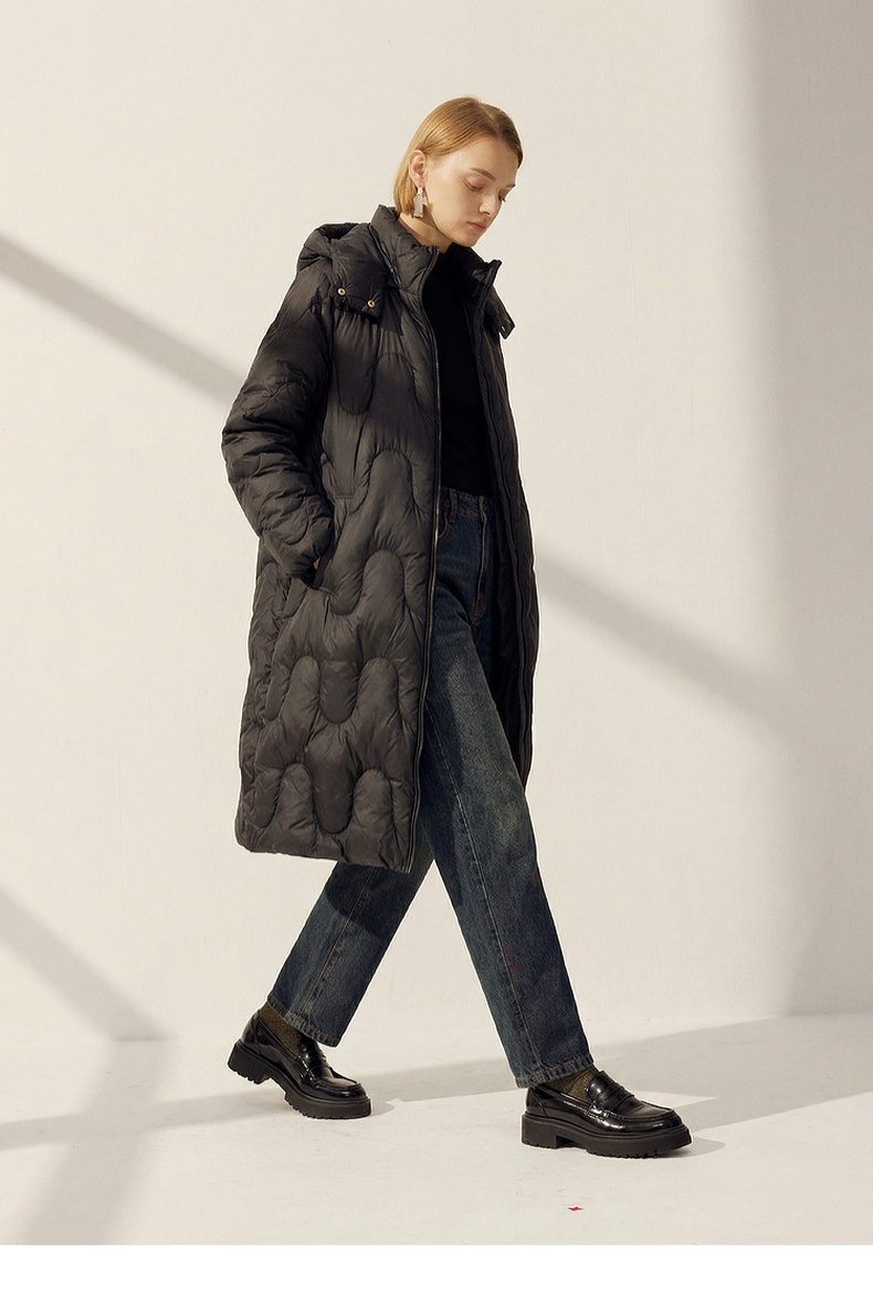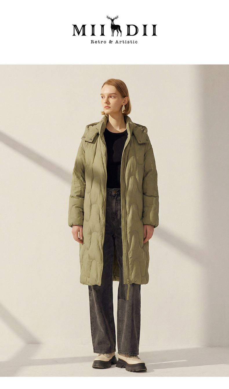 谜底中长款羽绒服女2025冬季新款简约百搭加厚鸭绒连帽257MY7865