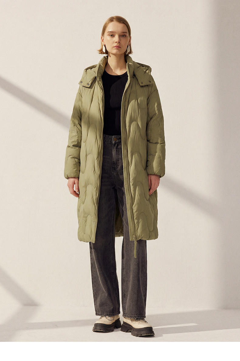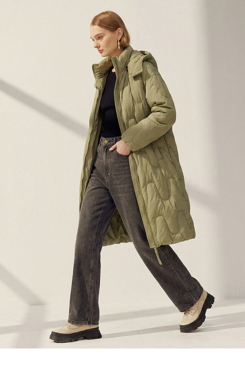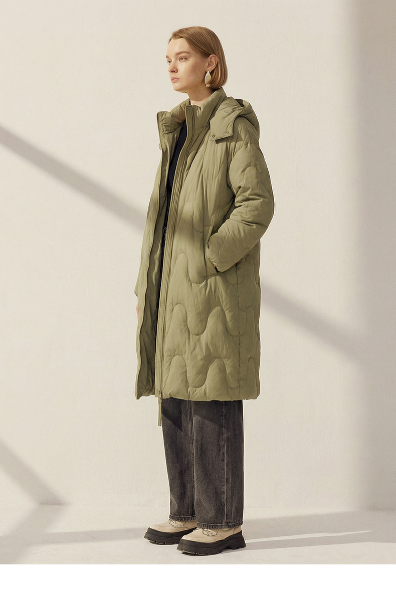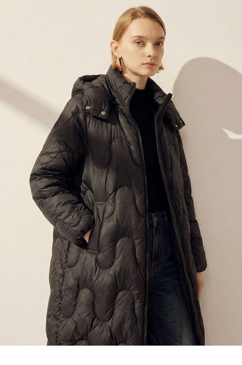 谜底中长款羽绒服女2025冬季新款简约百搭加厚鸭绒连帽257MY7865