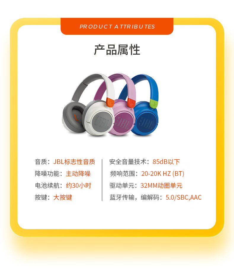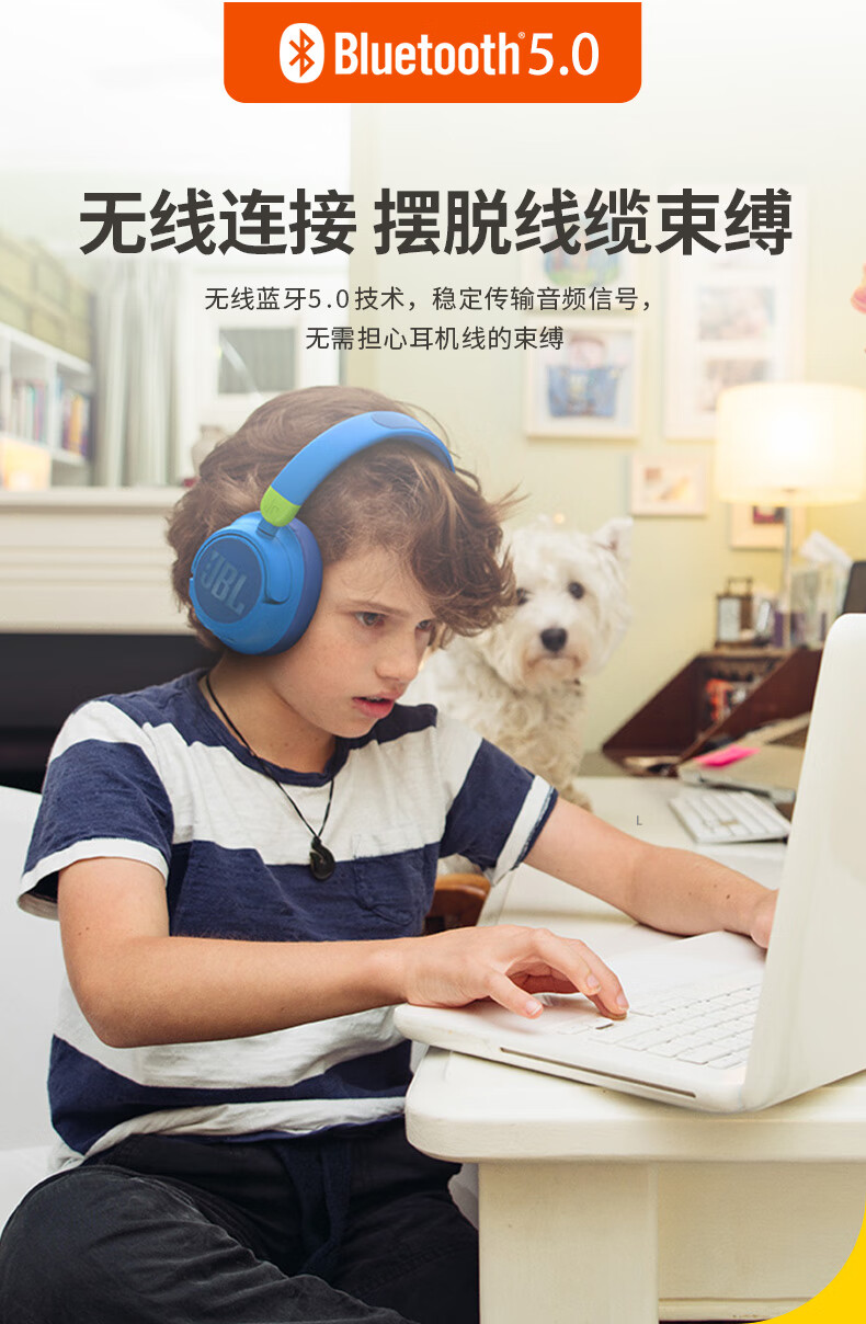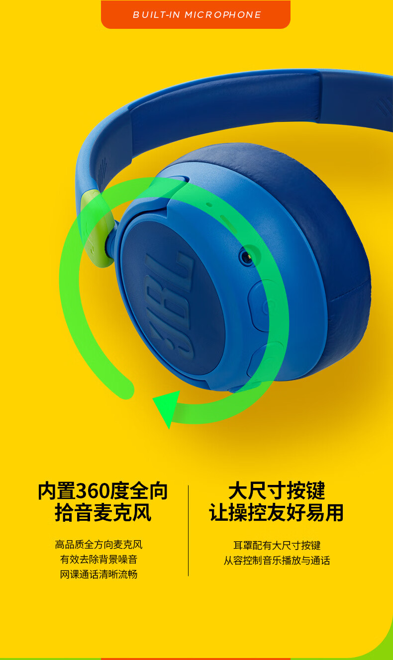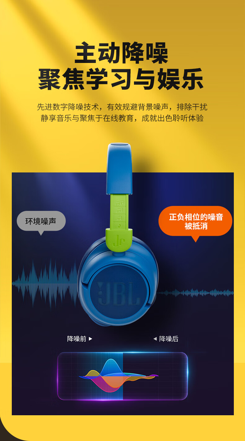 JBL JR460NC儿童主动降噪头戴式无线蓝牙耳机学生网课听力护耳