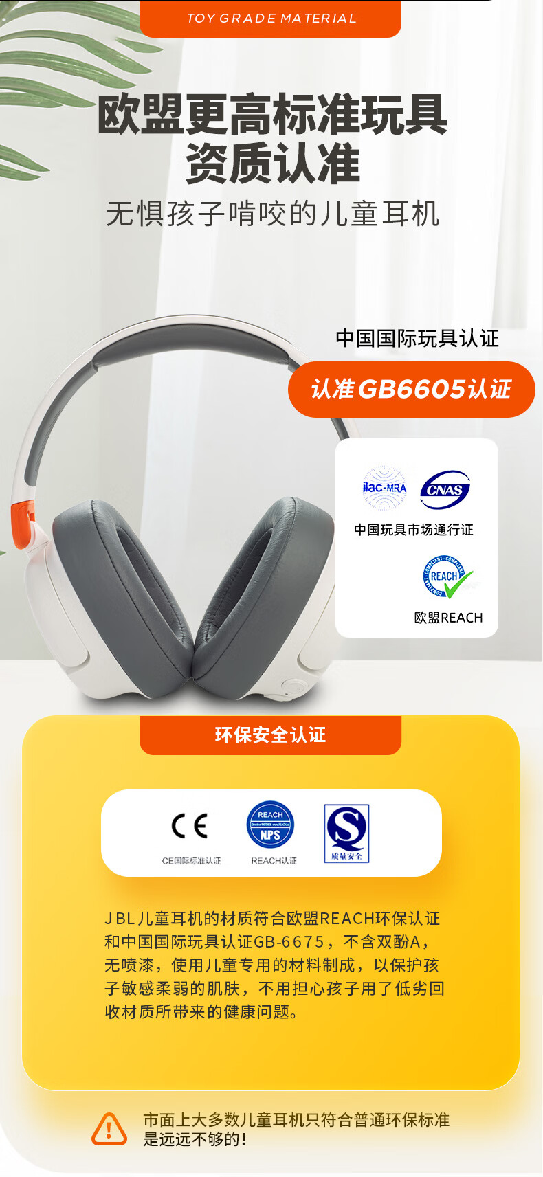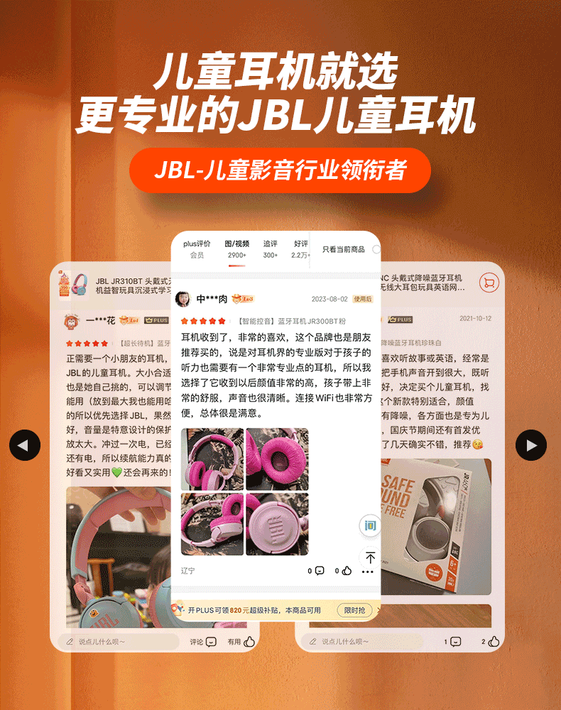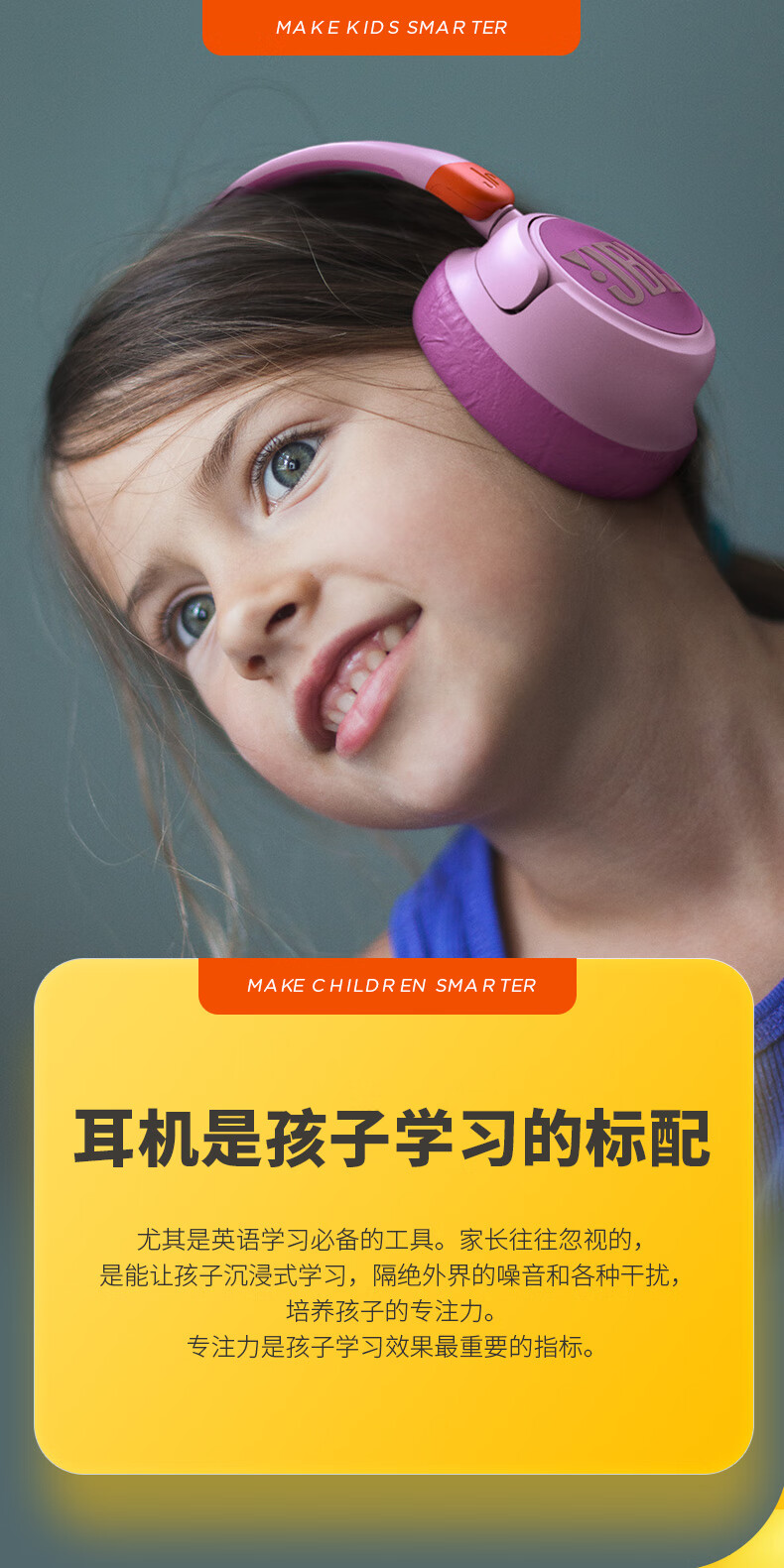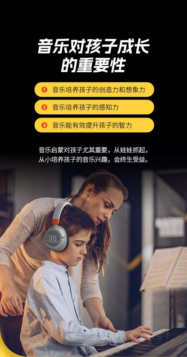 JBL JR460NC儿童主动降噪头戴式无线蓝牙耳机学生网课听力护耳