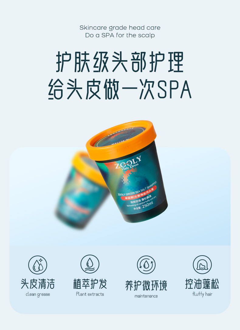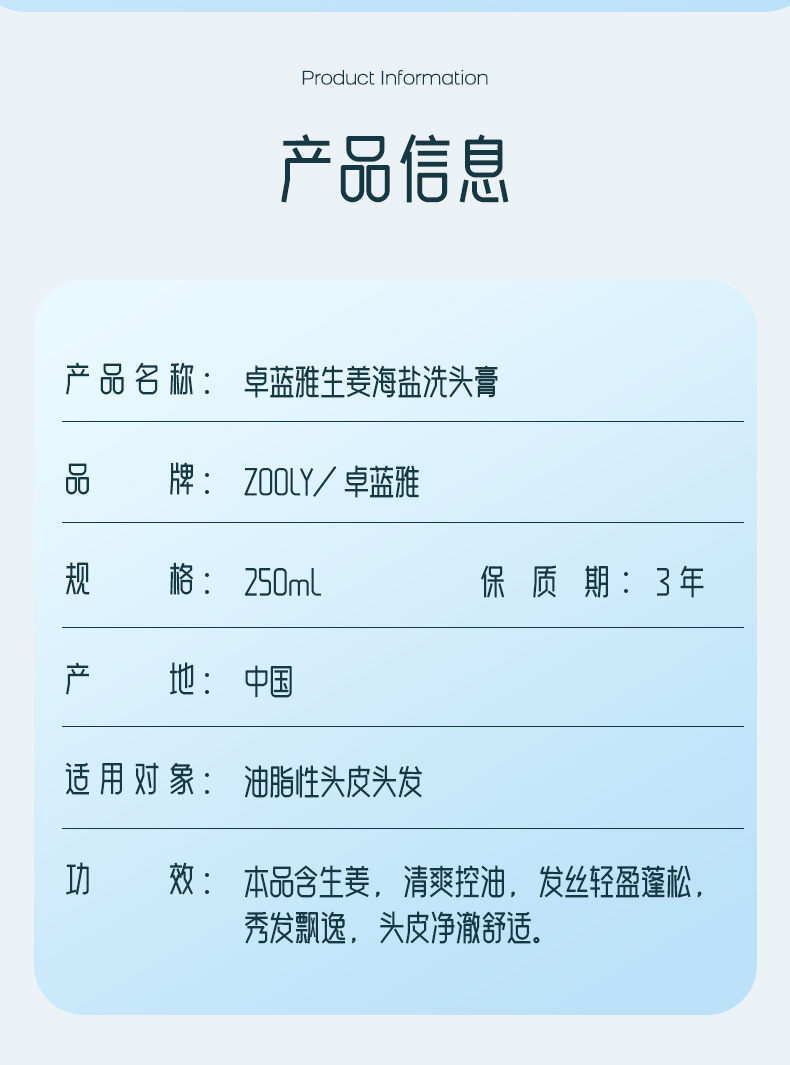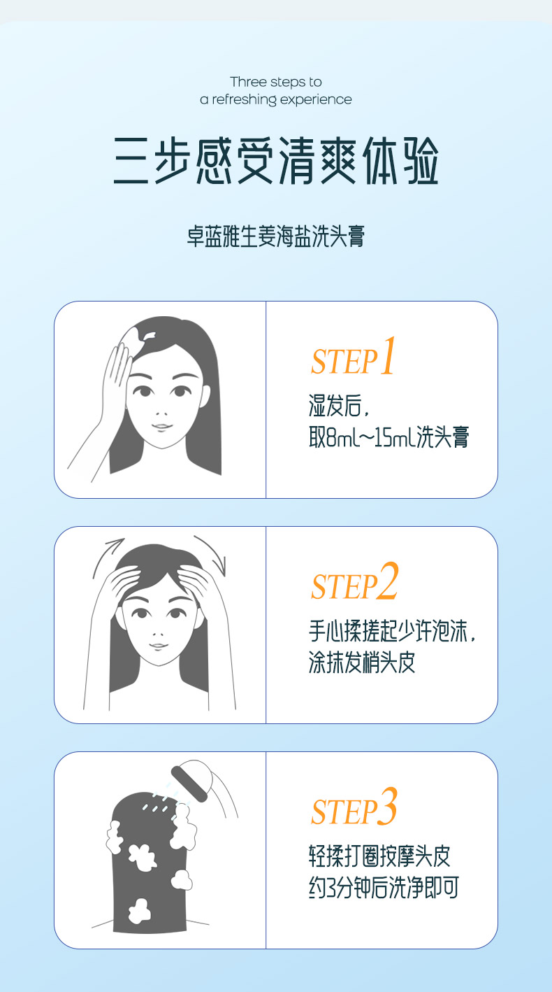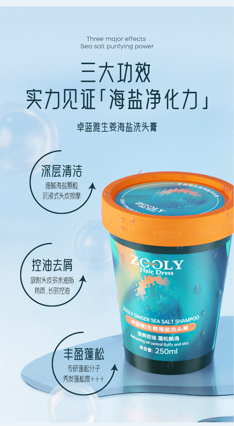 优选丨买一送一 卓蓝雅生姜海盐洗头膏 清爽控油蓬松洗发水头皮护理清洁去屑洗发露 到手250ml*2瓶(赠送沐浴露450ml+生姜海盐洗头膏10ml*4)