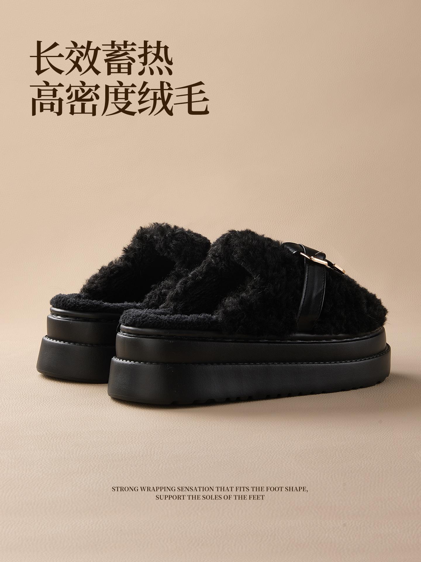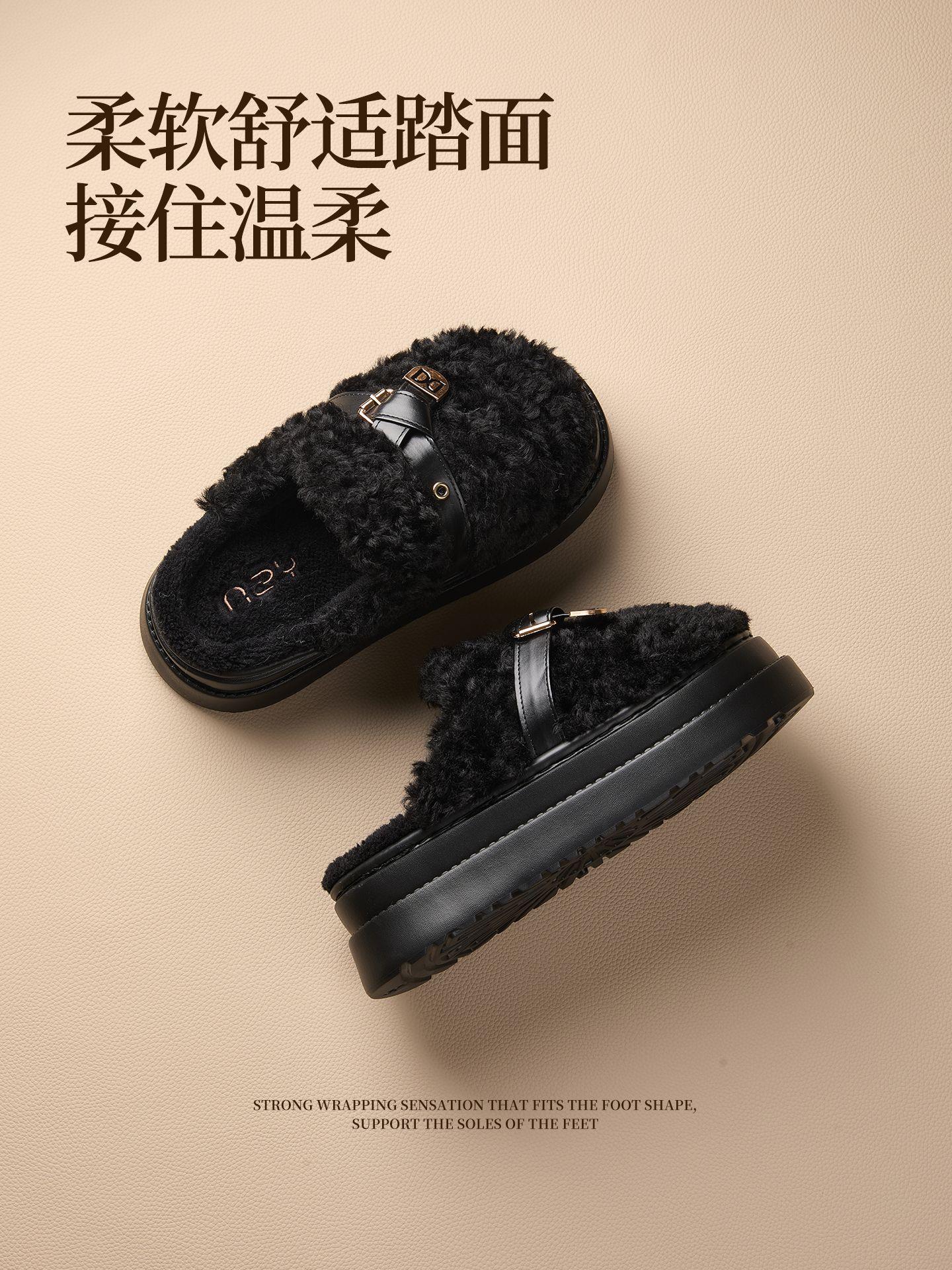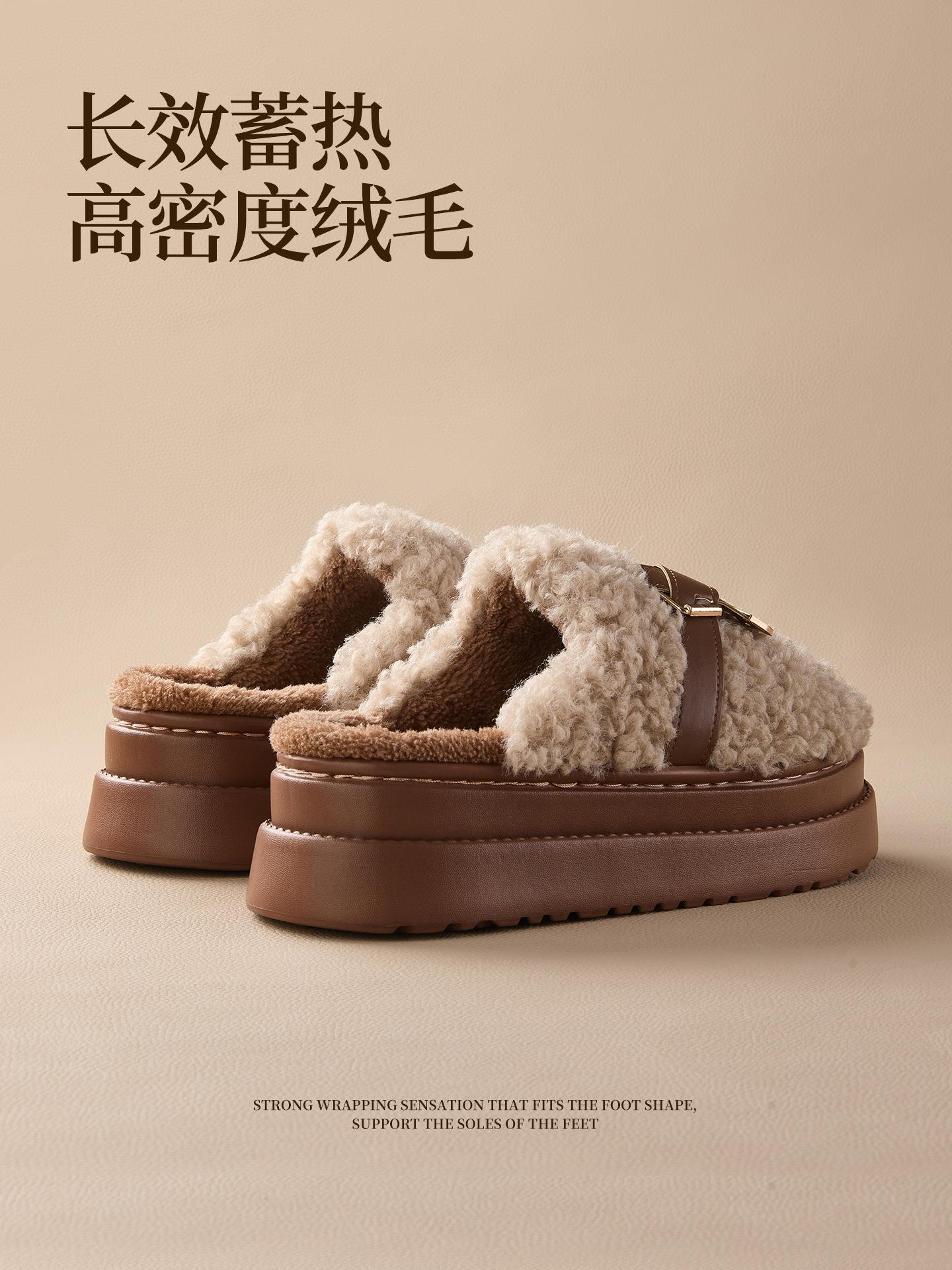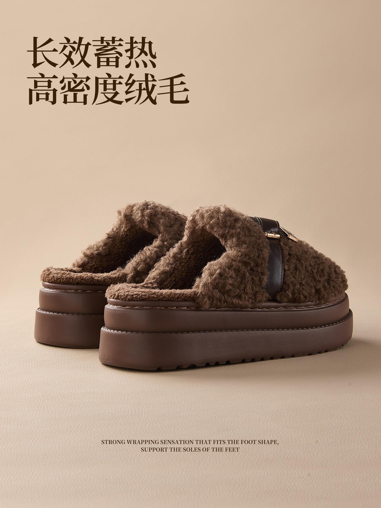 【莱斯卷棉拖鞋】女秋冬季新款厚底居家踩屎感防滑加绒保暖毛毛棉拖