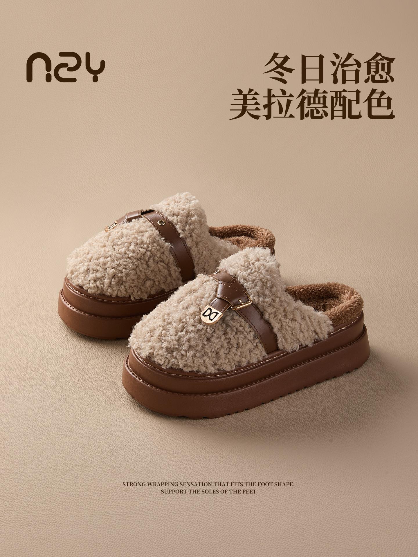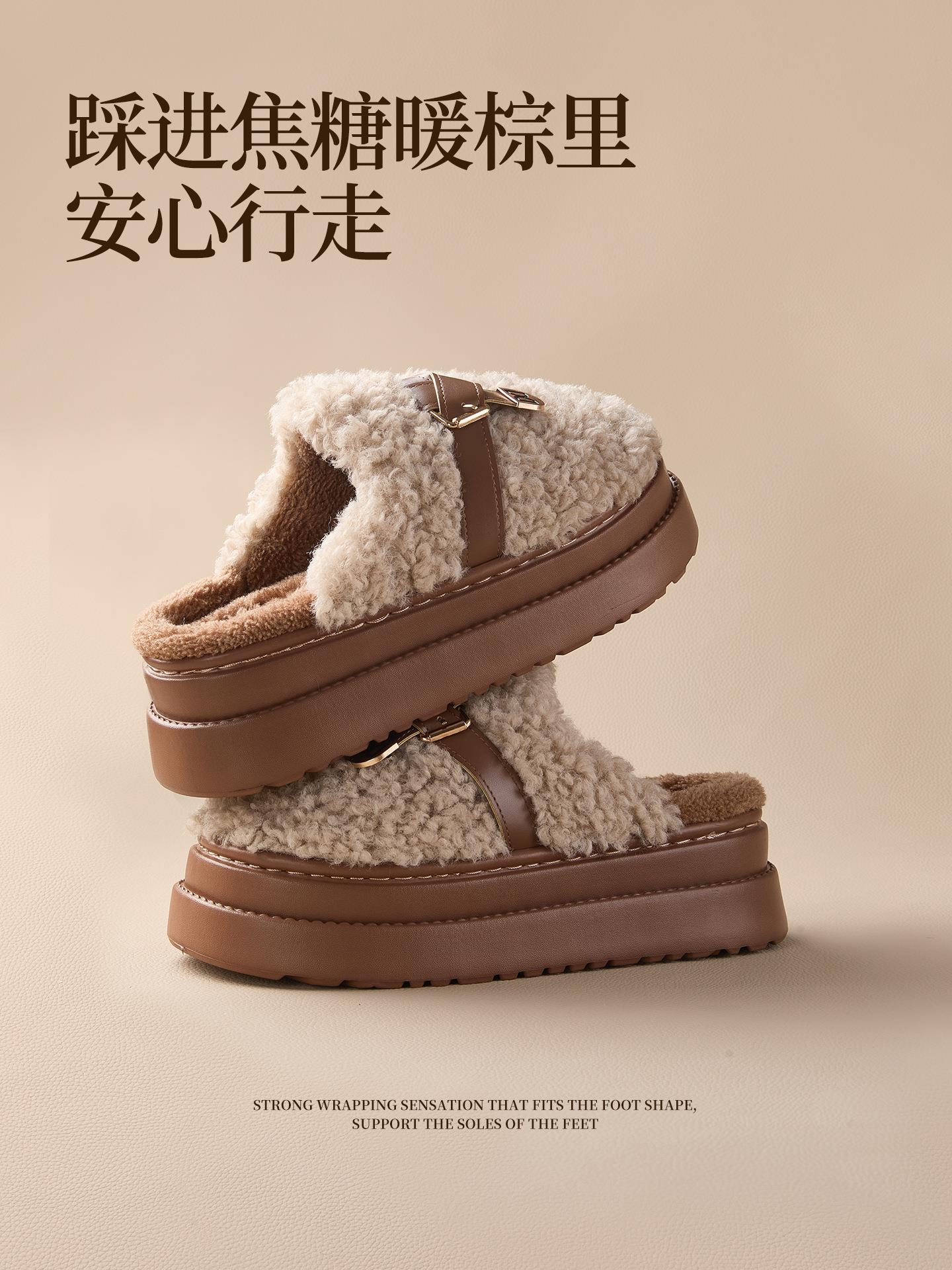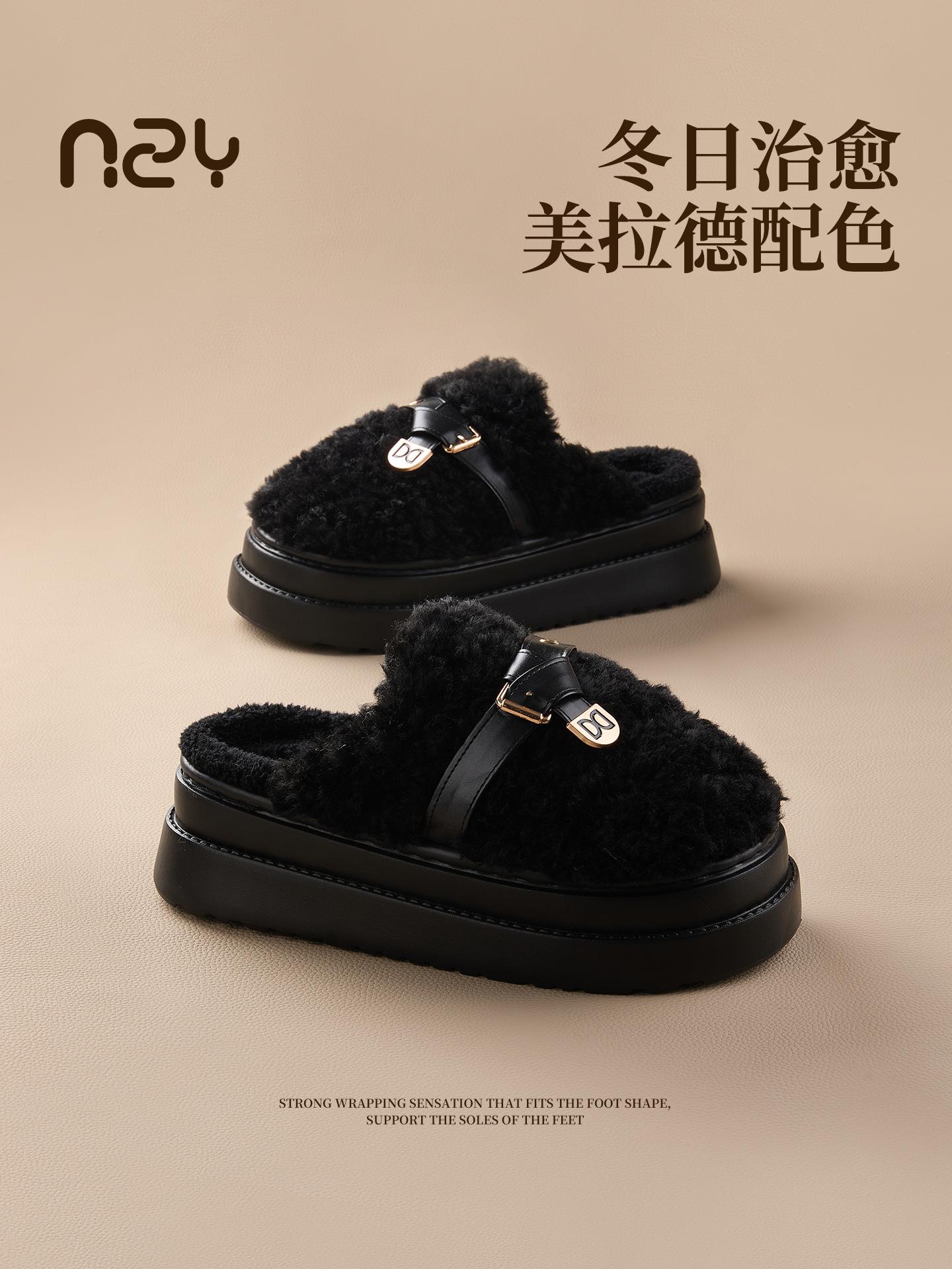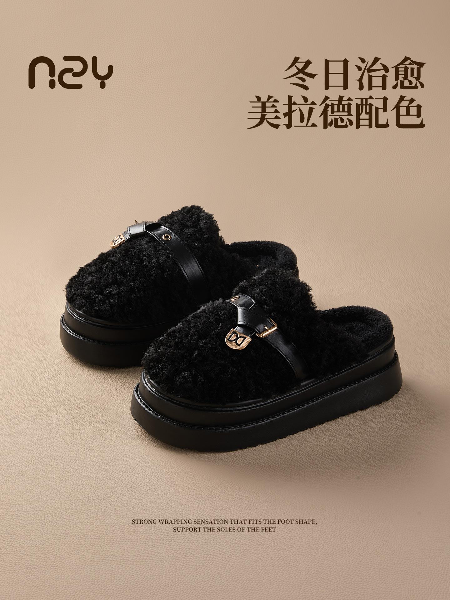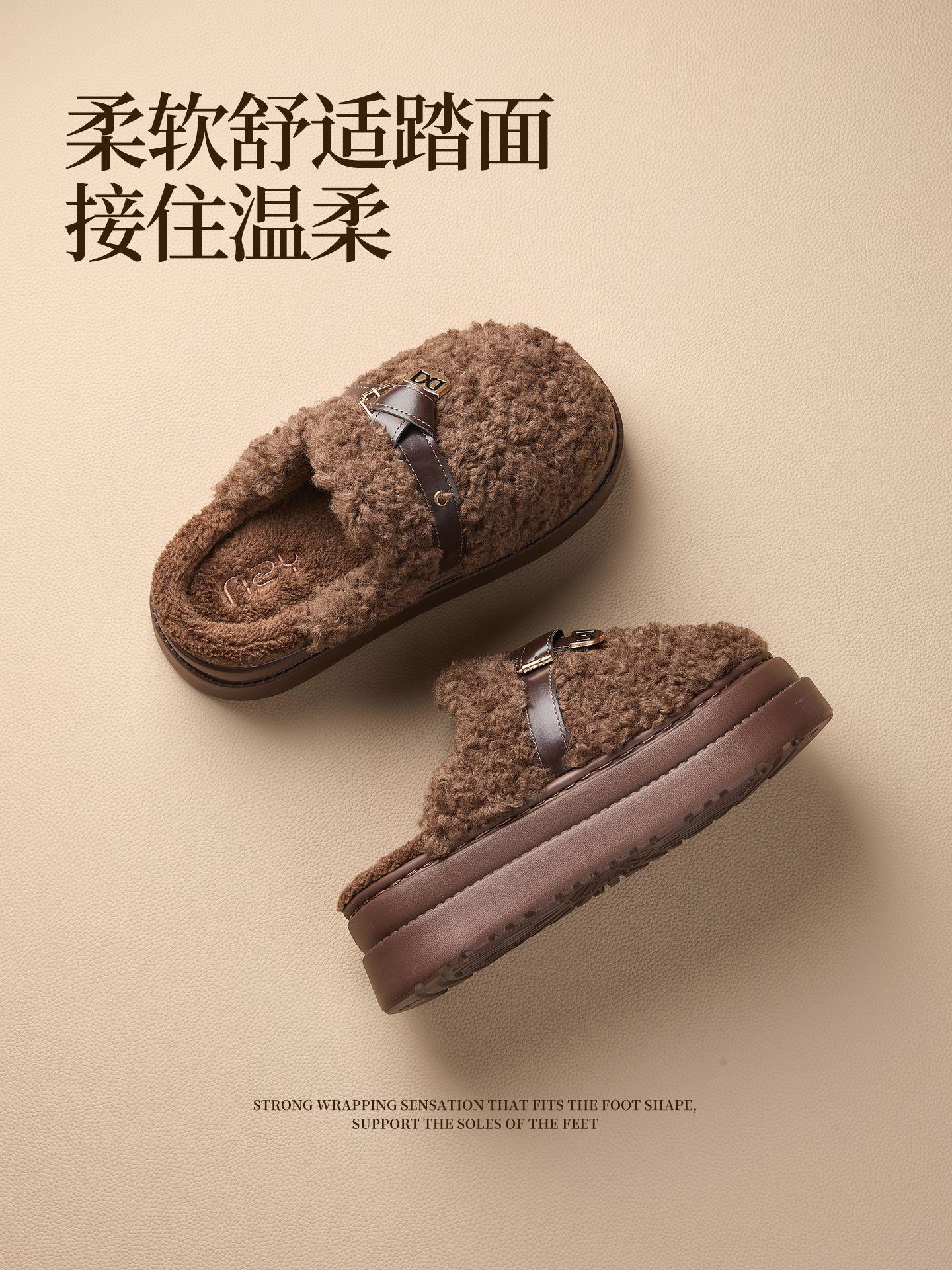 【莱斯卷棉拖鞋】女秋冬季新款厚底居家踩屎感防滑加绒保暖毛毛棉拖
