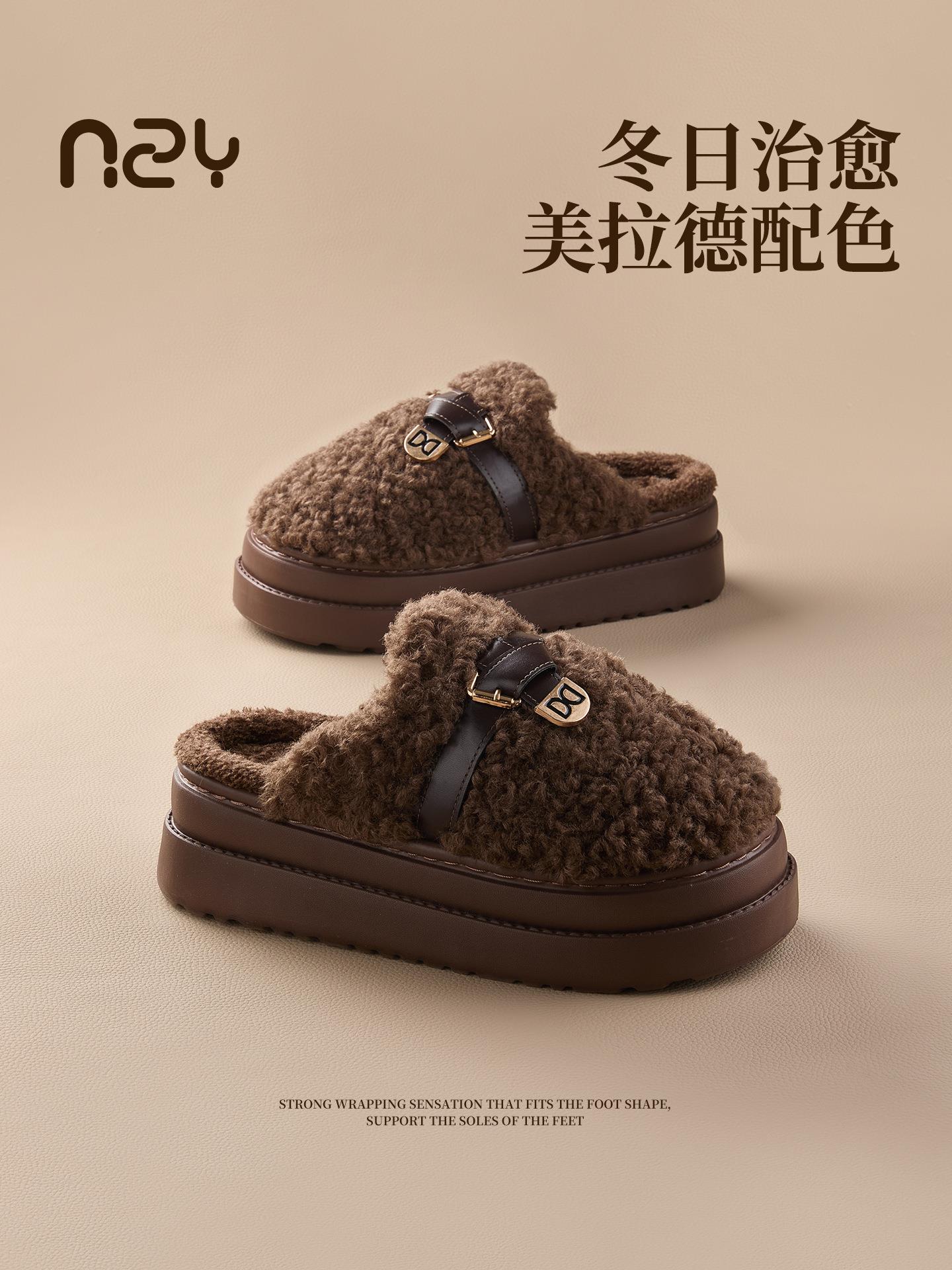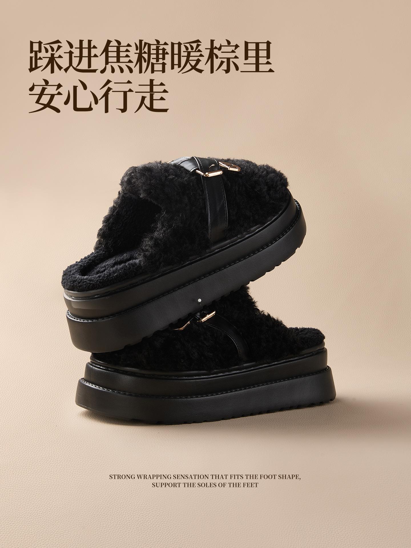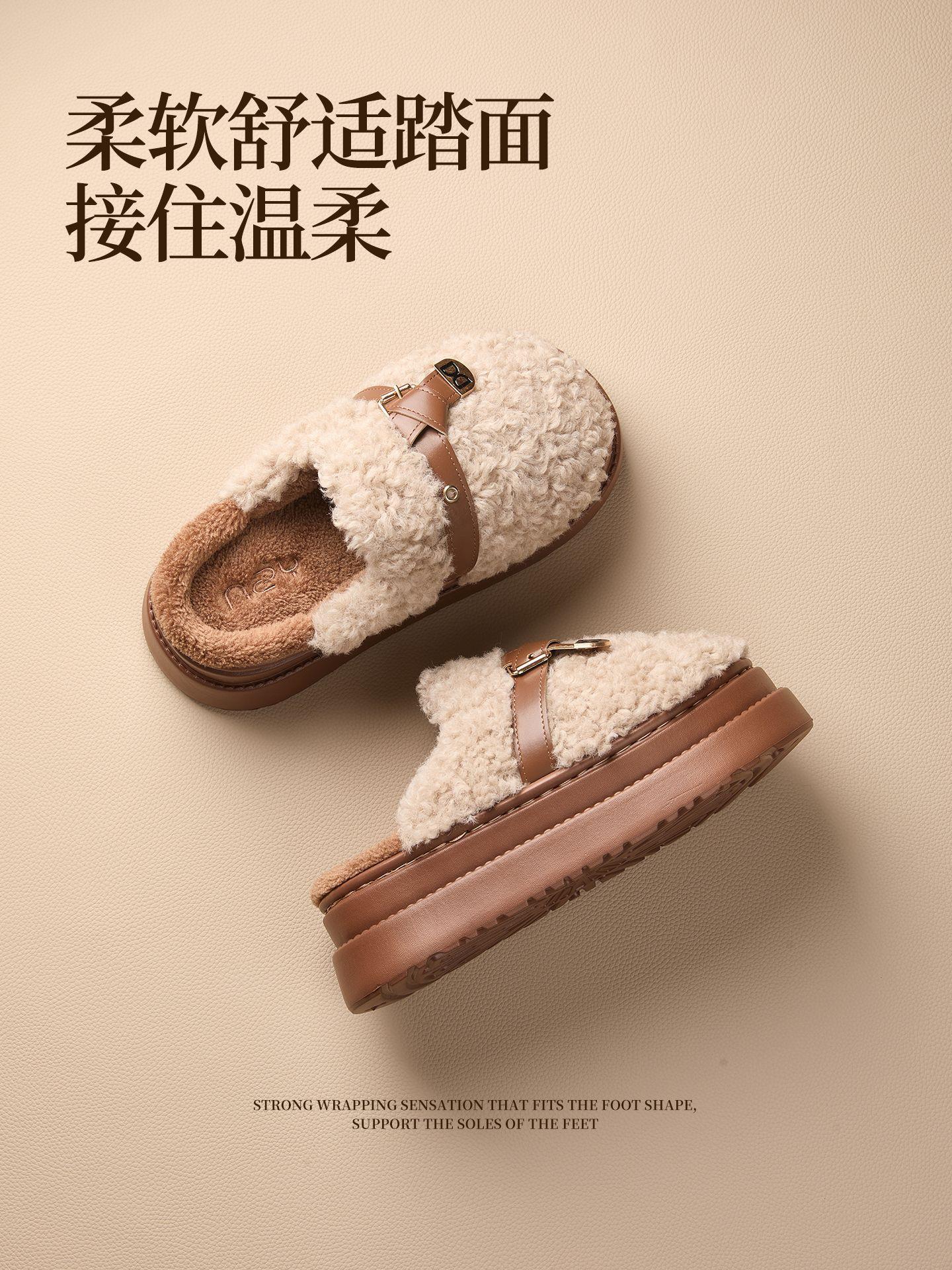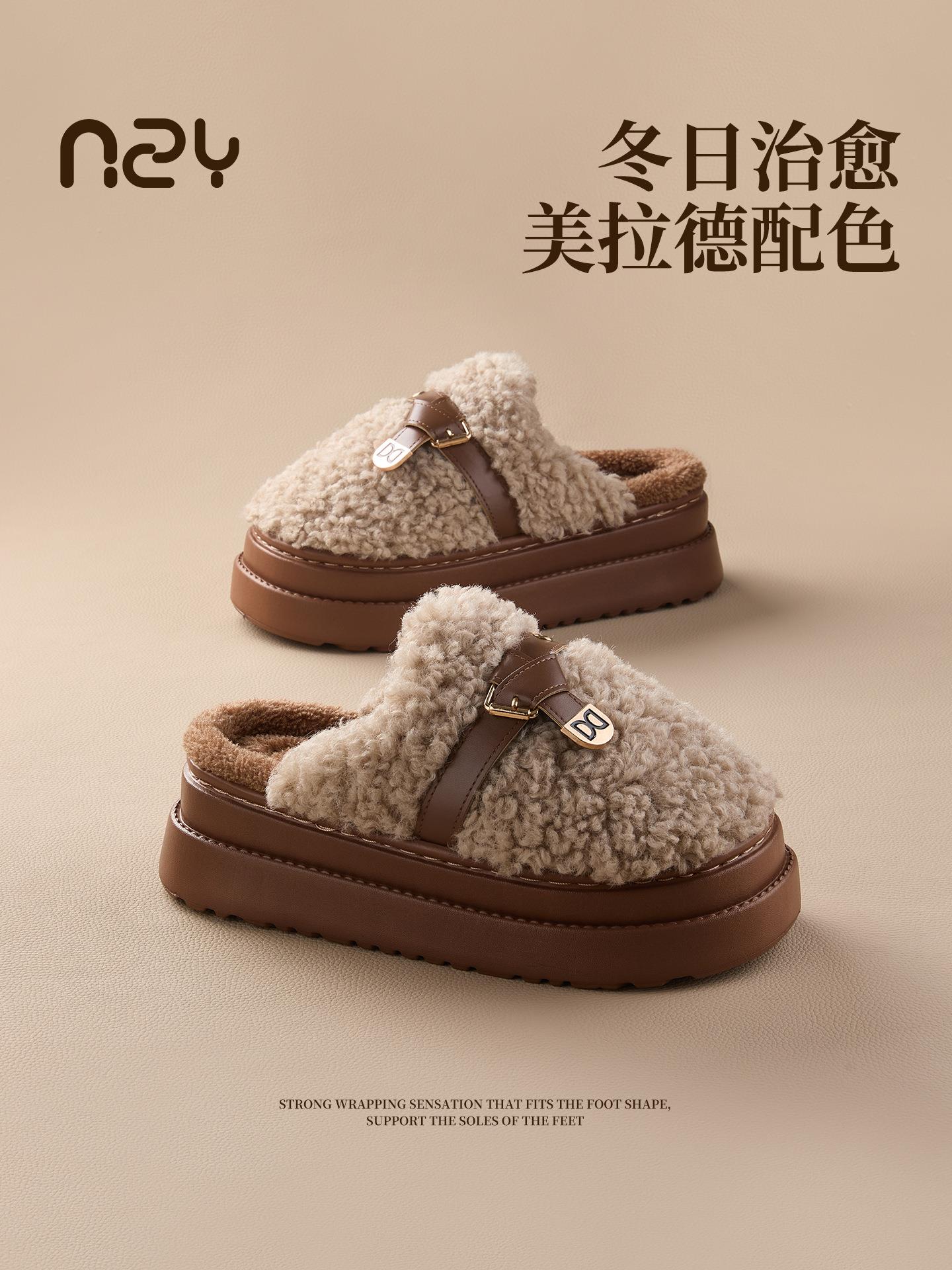 【莱斯卷棉拖鞋】女秋冬季新款厚底居家踩屎感防滑加绒保暖毛毛棉拖