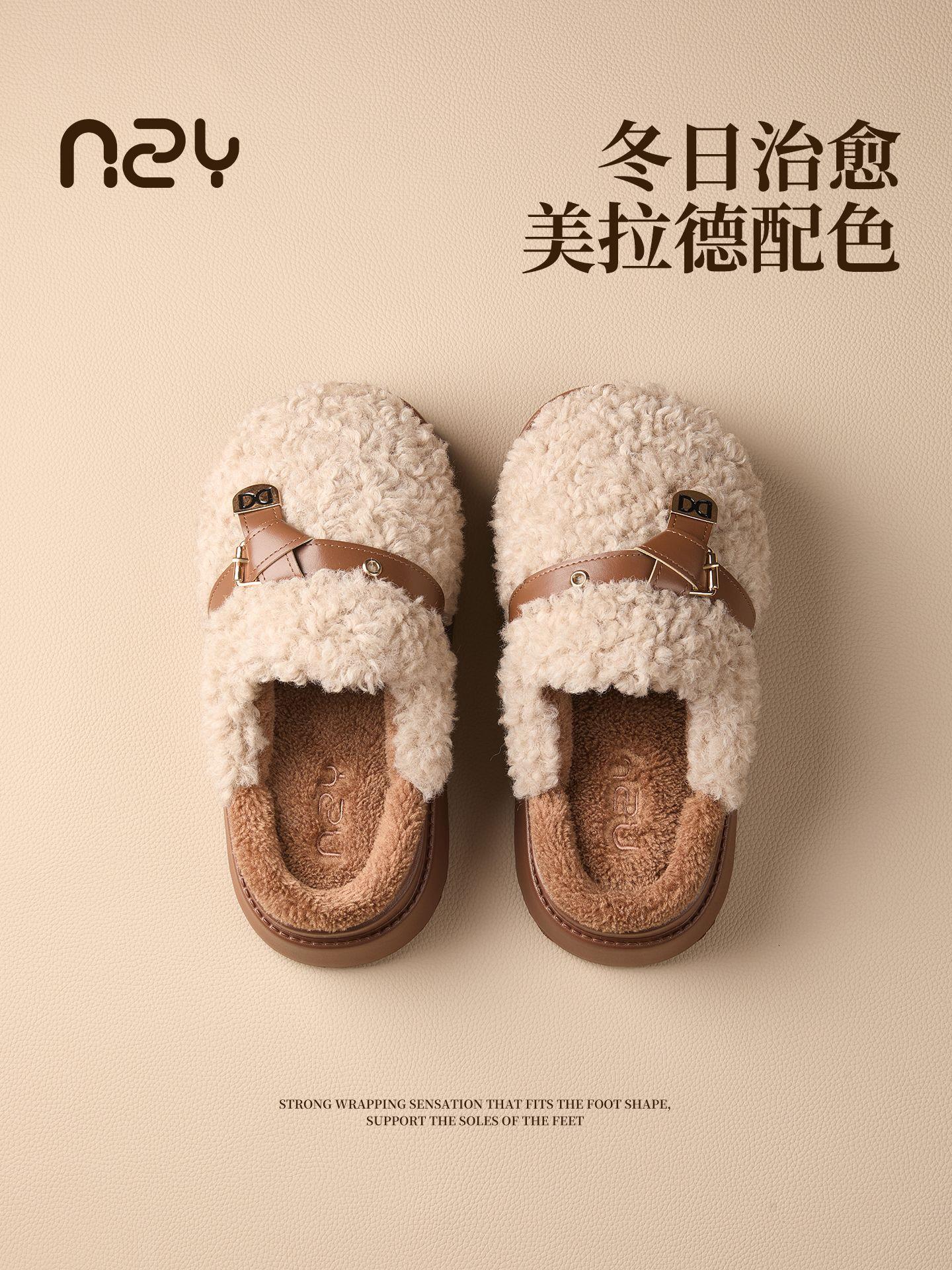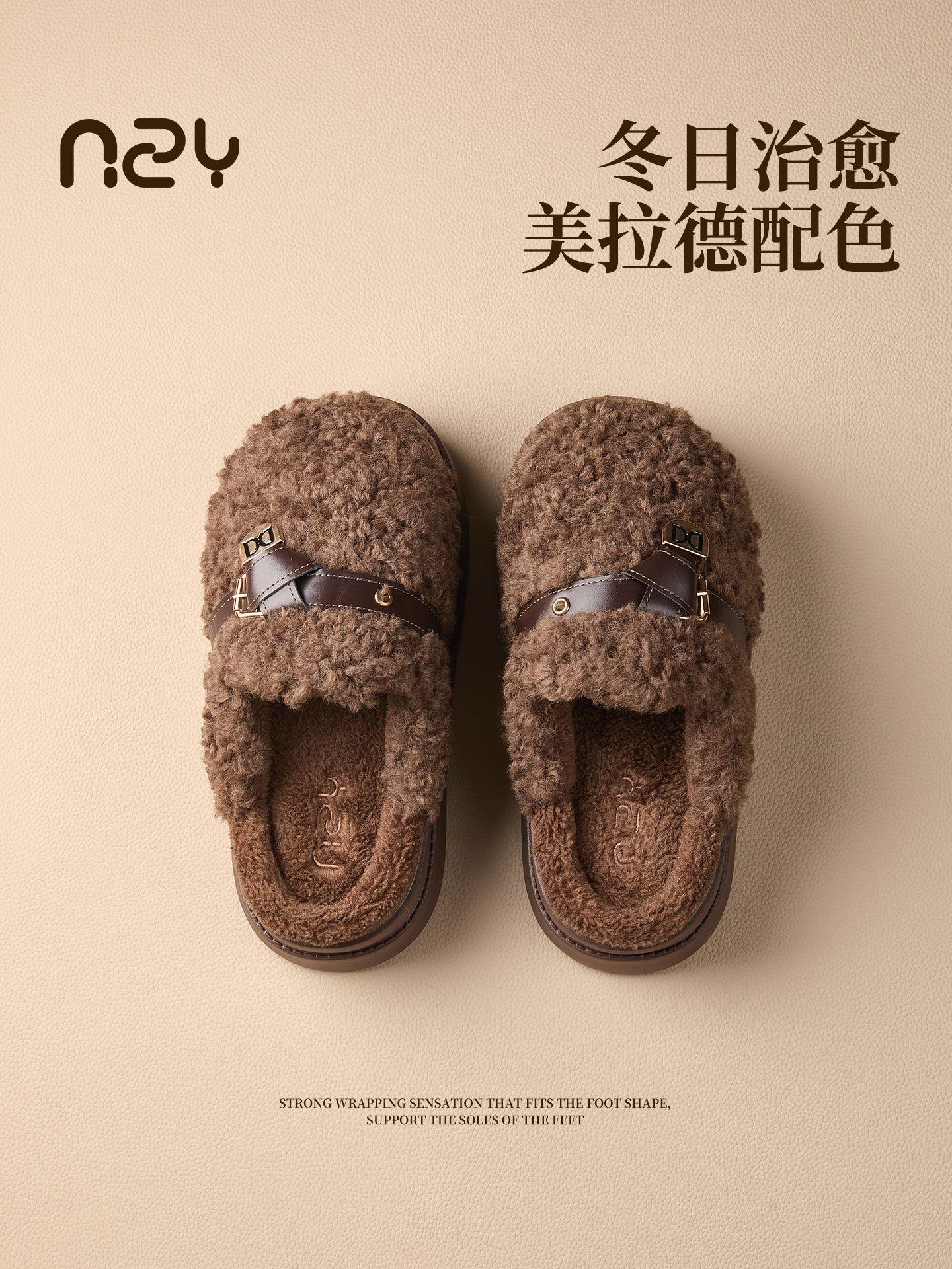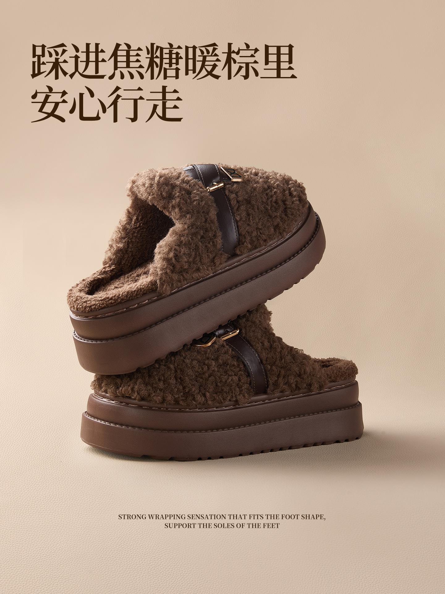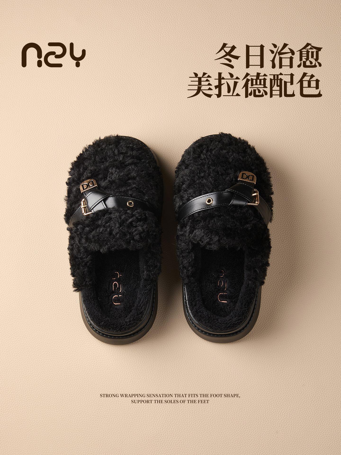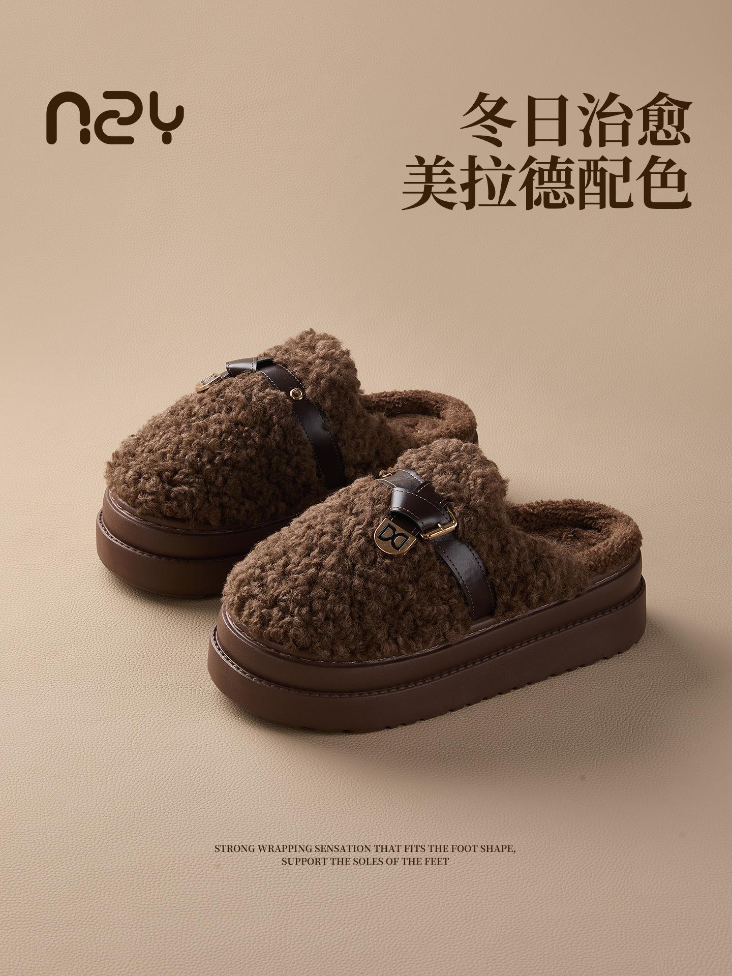 【莱斯卷棉拖鞋】女秋冬季新款厚底居家踩屎感防滑加绒保暖毛毛棉拖